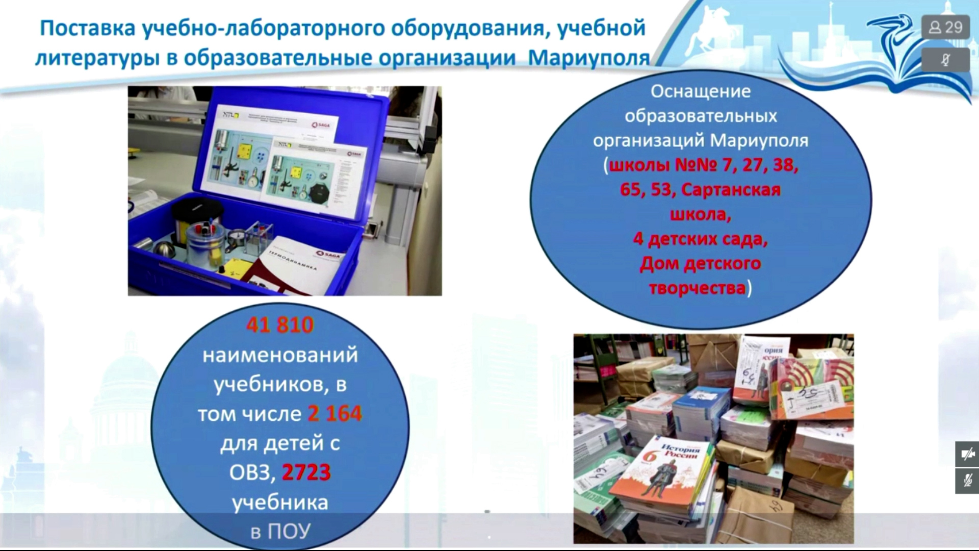 Об этом сообщил губернатор Александр Беглов в ходе совместного заседания исполнительных руководящих органов Петербурга и Мариуполя, которое он провел в режиме видеоконференции совместно с временно исполняющим полномочия главы муниципального образования городского округа Мариуполь Олегом Моргуном. В работе также принял участие председатель Законодательного Собрания Санкт‑Петербурга Александр Бельский.