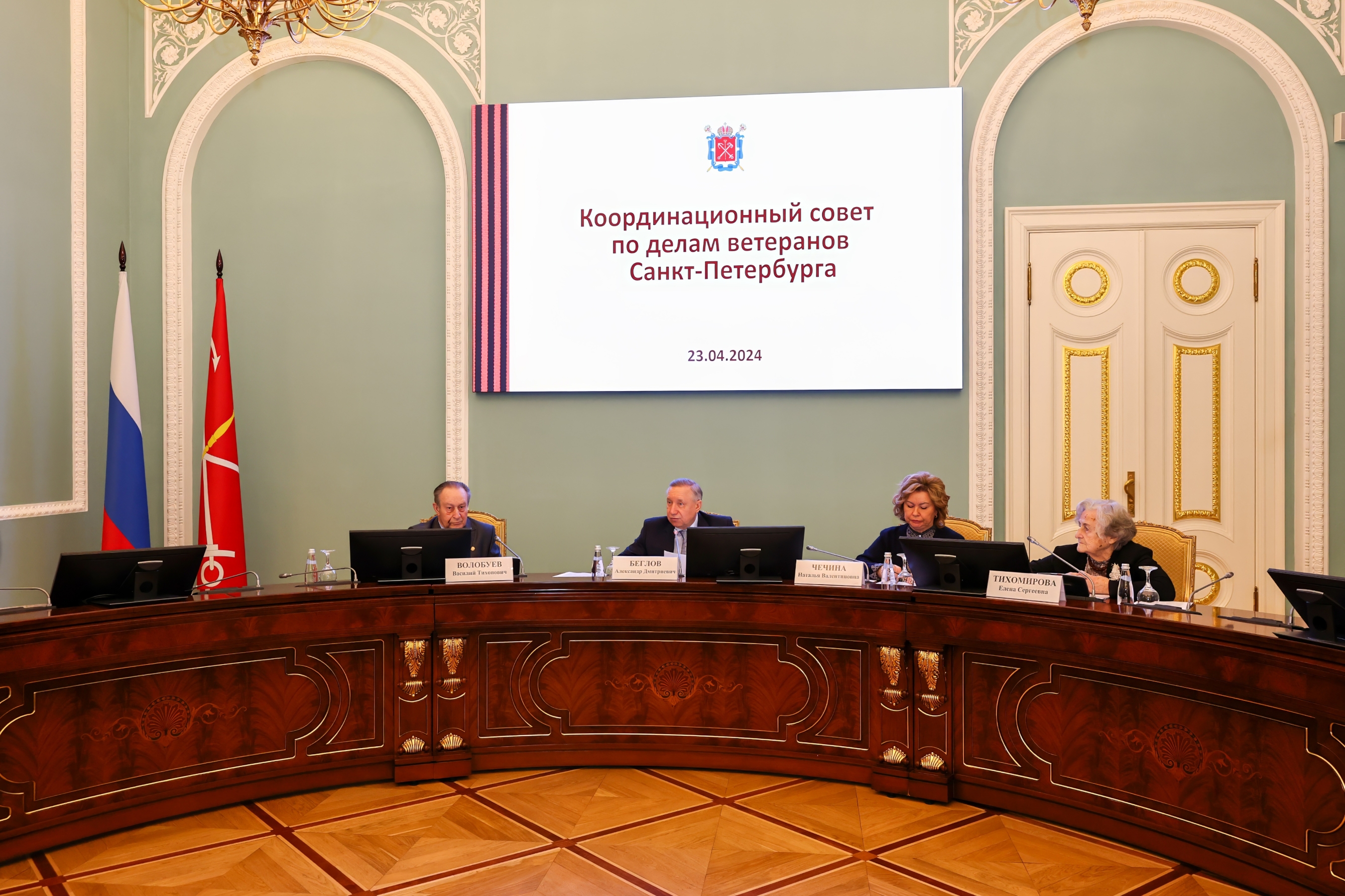 Губернатор Александр Беглов и члены городского правительства приняли участие в работе Координационного совета по делам ветеранов Санкт‑Петербурга. Совещание прошло в Лепном зале Смольного и было посвящено подготовке города к празднованию 79-й годовщины Победы советского народа в Великой Отечественной войне.