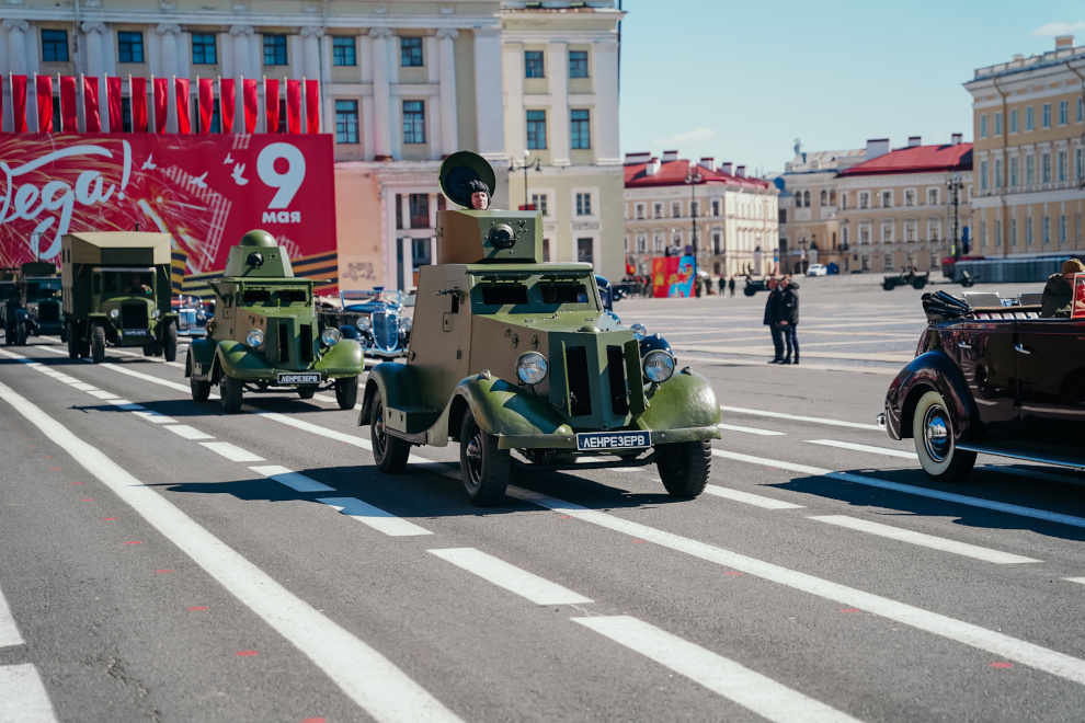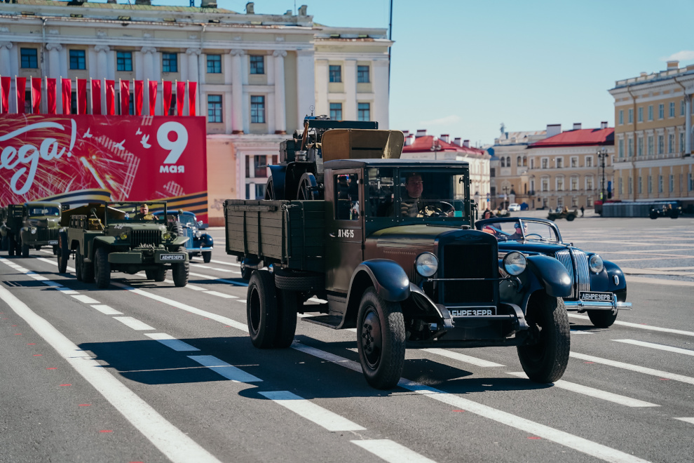 В параде автомобилей, посвященном 79-й годовщине Победы советского народа в Великой Отечественной войне участвовали более 80 исторических машин, которые традиционно предоставило патриотическое объединение «Ленрезерв». Представлены практически все модели автомобилей, которые использовались в годы войны. Некоторые образцы автомобилей уникальны - их сохранились считанные единицы. Все машины аутентичны тем, что когда-то сходили с конвейеров автозаводов СССР, стран Европы и Америки. Их восстановление проходило по заводским чертежам, которые автореставраторы разыскивали по всему миру.