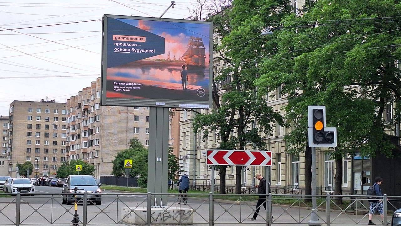 Сегодня уже более 2500 мониторов транслируют созданную с помощью ИИ социальную рекламу на улицах и в общественном транспорте Санкт‑Петербурга.