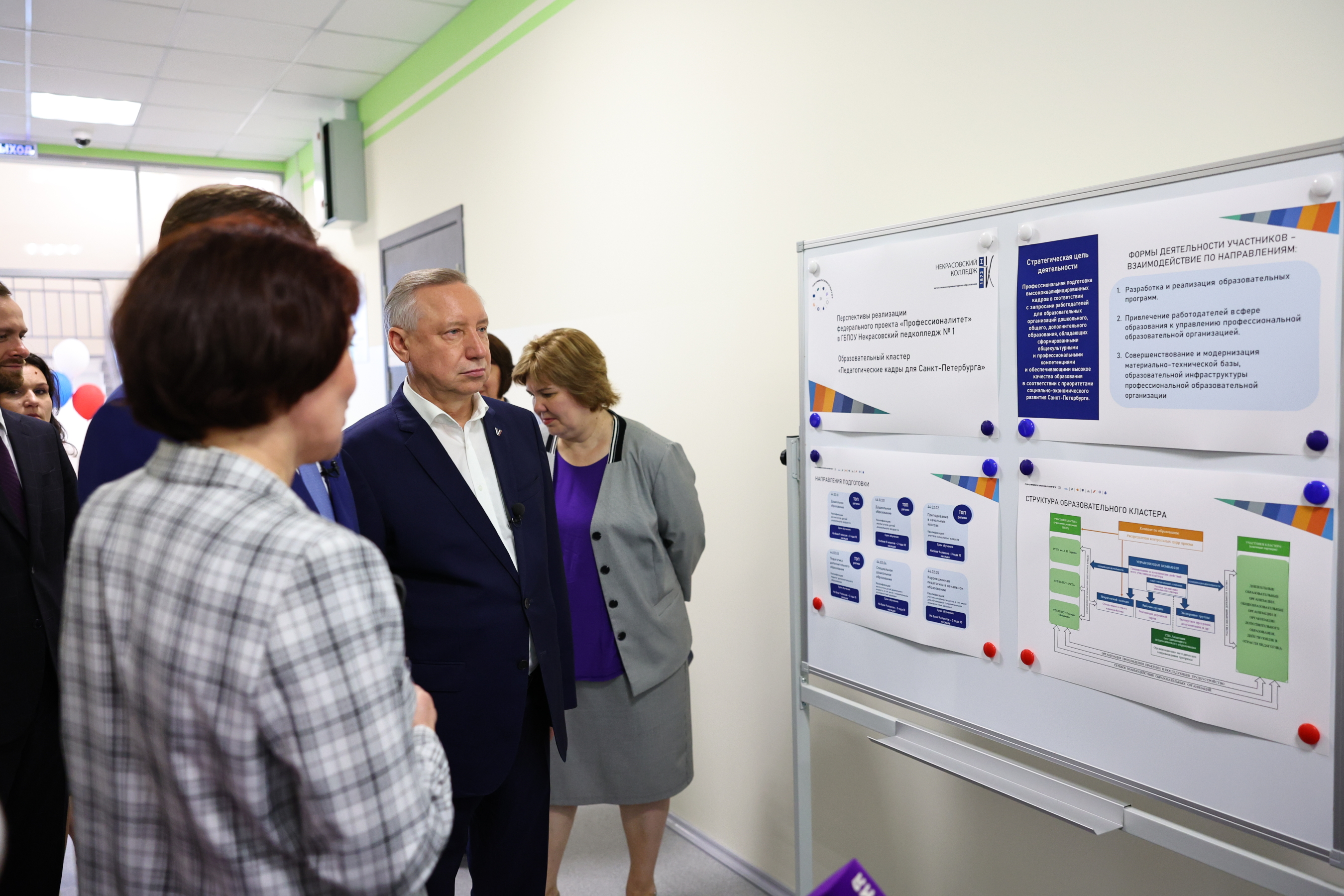 Губернатор Санкт‑Петербурга Александр Беглов и министр просвещения Российской Федерации Сергей Кравцов посетили одно из старейших образовательных учреждений Санкт‑Петербурга - Педагогический колледж № 1 им. Н.А. Некрасова Санкт‑Петербурга. Они осмотрели отремонтированный учебный корпус и вручили дипломы лучшим выпускникам колледжа.