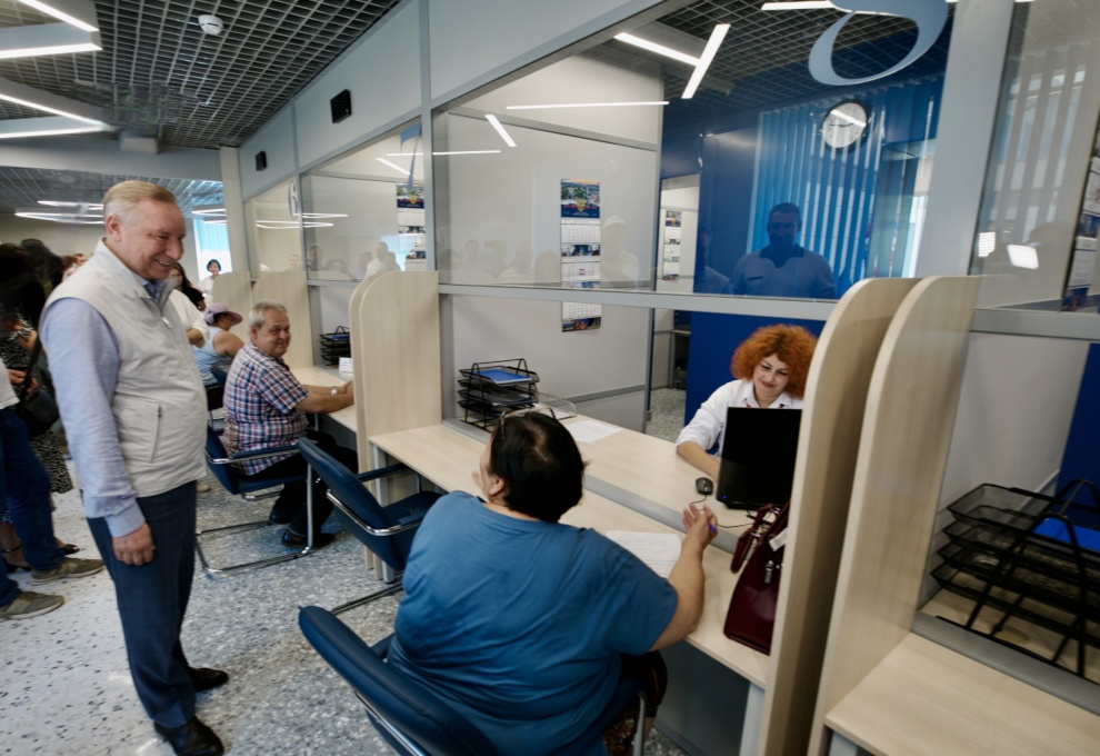 На встречах с жителями Мариуполя очень много пенсионеров приходило с просьбой открыть Пенсионный фонд, рассказал Александр Беглов: «Мы взялись за это здание, оно было в полуразрушенном состоянии, а сегодня в обновленный Пенсионный фонд пришли первые посетители, которые остались очень довольны. То же качество, что и в Санкт‑Петербурге. Сделаны удобства не только для посетителей, но и персонала. Мы оборудовали небольшую кухню и комнату отдыха», - отметил губернатор.
