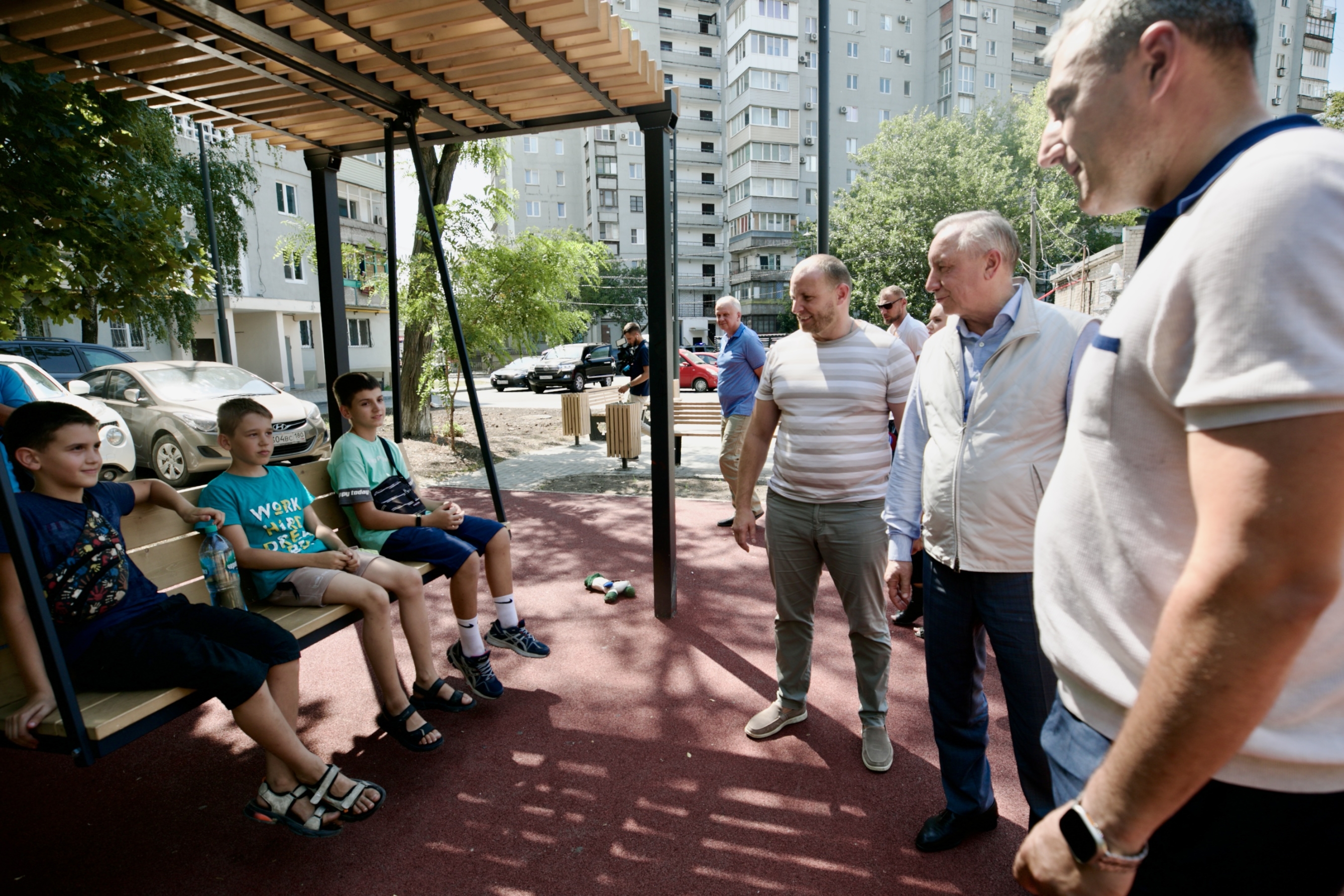 Строители из Петербурга создали в Мариуполе и новое общественное пространство: благоустроили целый городской квартал - с детскими площадками и фонтаном. Важно отметить, что Петербург подарил побратиму уже 8 новых фонтанных комплексов.