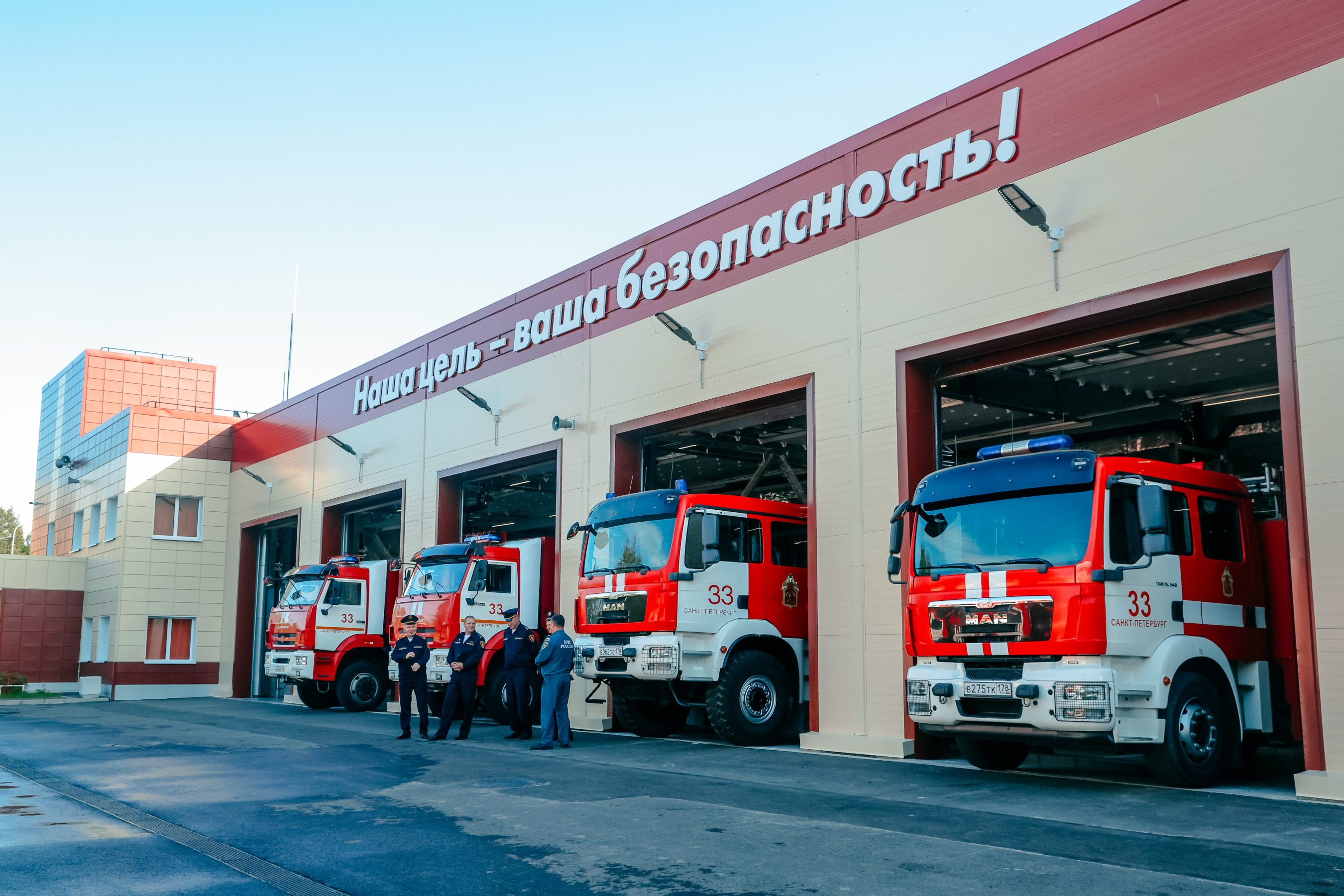 Раньше пожарно-спасательная часть №33 располагалась в здании - памятнике архитектуры 1867 года постройки, что не позволяло создать нужные условия для работы. Поэтому в прошлом году началось строительство нового пожарного депо. Здание построено с учетом всех особенностей работы пожарных-спасателей и оборудовано необходимой техникой, в том числе - уникальным компрессором высокого давления. В России такое оборудование производится только в Петербурге. Компрессор полностью автоматический и позволяет заправлять до четырёх противопожарных баллонов одновременно и за короткое время.