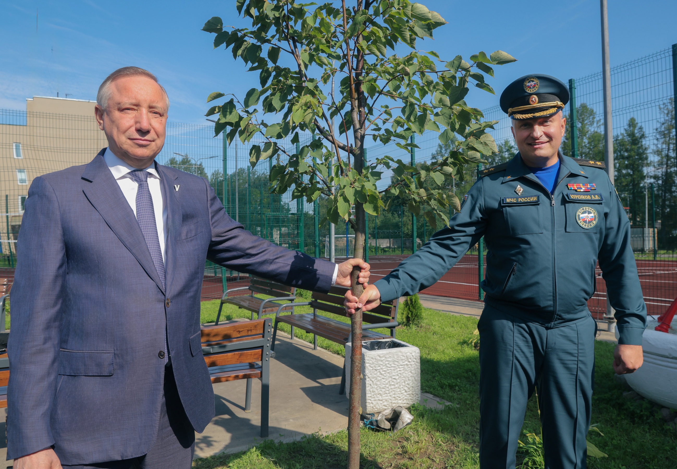 Министр поблагодарил губернатора и городское правительство за активное участие в вопросах обеспечения пожарной безопасности города. Александр Беглов и Александр Куренков осмотрели помещения части и приняли участие в высадке деревьев на прилегающей территории.
