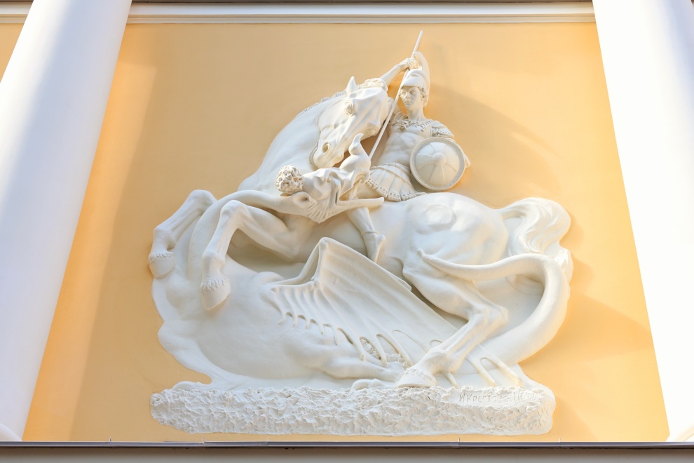 Самым известным выпускником исторического училища, которое в разные годы называлось Школой гвардейских подпрапорщиков, Николаевским училищем гвардейских юнкеров и Николаевским кавалерийским училищем, был Михаил Юрьевич Лермонтов. Памятник поэту возле здания открыли в 1916 году.