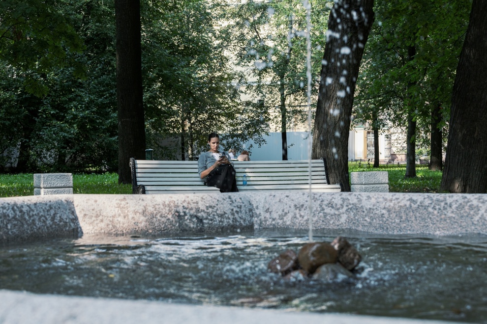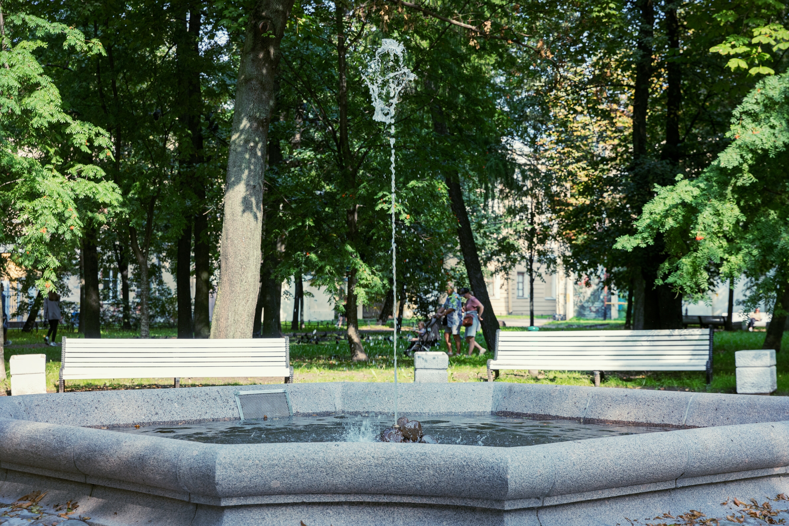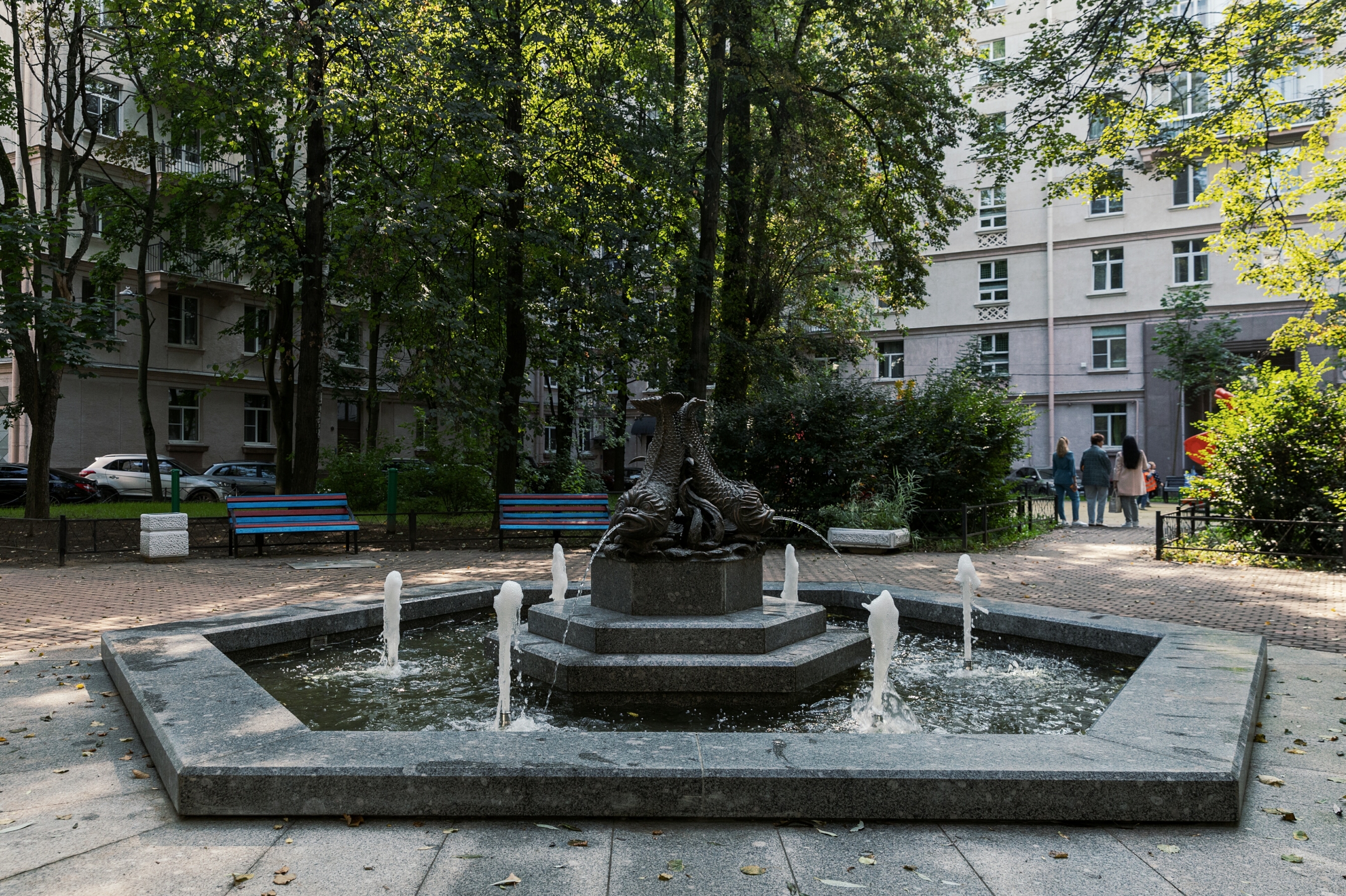 Сооружению в сквере имени Соловьева-Седого на Невском проспекте - 65 лет. Фонтан дополняет ландшафтную композицию зеленой зоны.