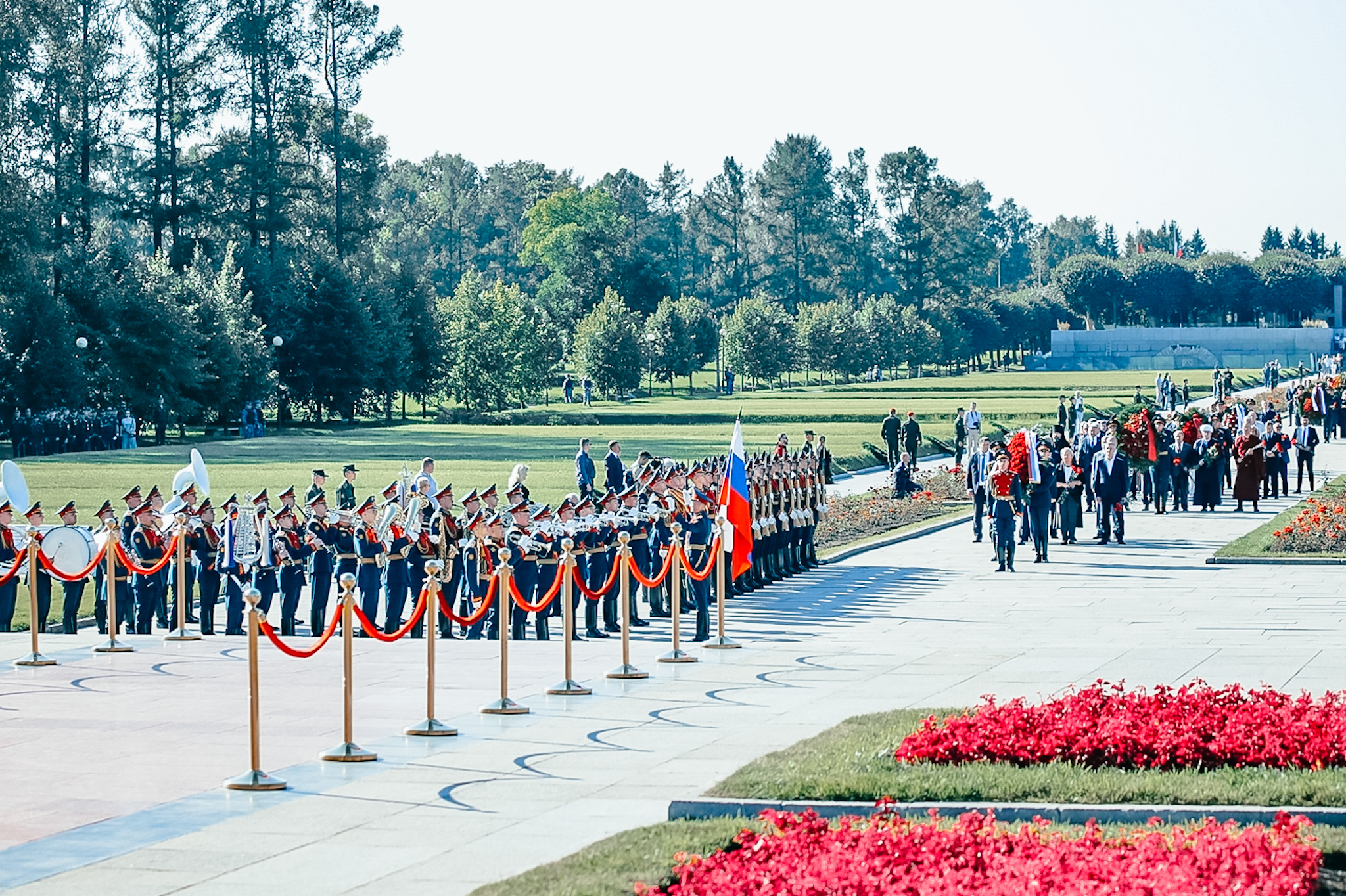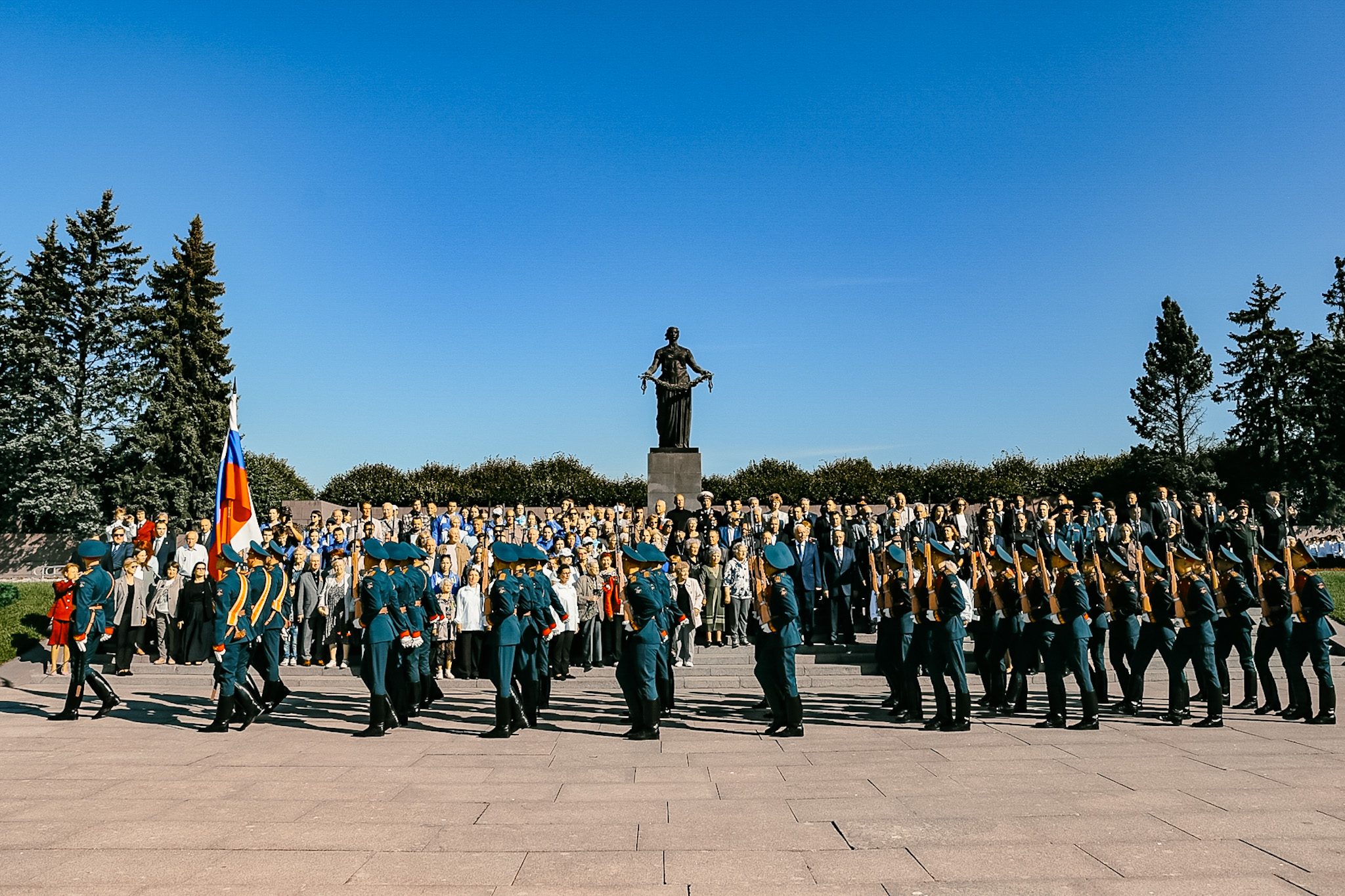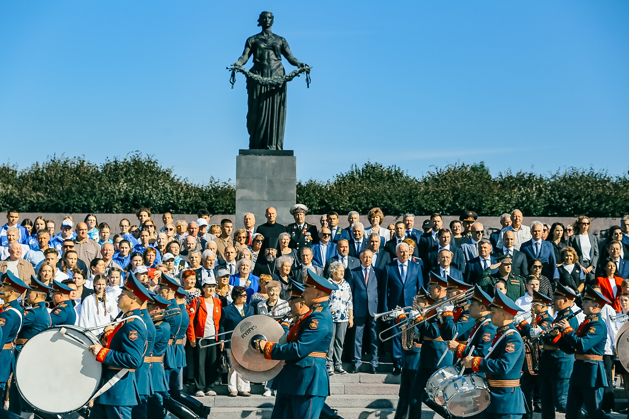 Цветы и венки возложили представители Конституционного суда Российской Федерации, члены правительства и депутаты Законодательного Собрания Ленинградской области, депутаты Государственной Думы РФ, делегация Общественной платы Санкт‑Петербурга, представители Главного командования Военно-Морского Флота и командования Ленинградского военного округа, командования Северо-Западным округом войск национальной гвардии Российской Федерации, делегация Межпарламентской ассамблеи государств – участников СНГ, делегации общественных организаций ветеранов, блокадников, несовершеннолетних узников фашистских лагерей, тружеников тыла, детей войны, представители Фонда «Защитники Отечества» и ветераны Специальной военной операции, члены молодёжных организаций, студенты, школьники, жители города.