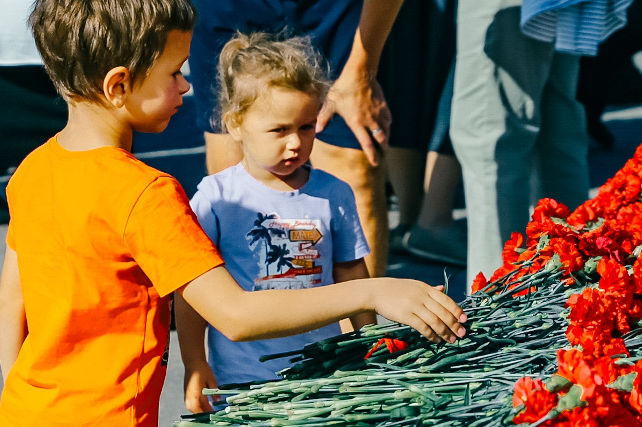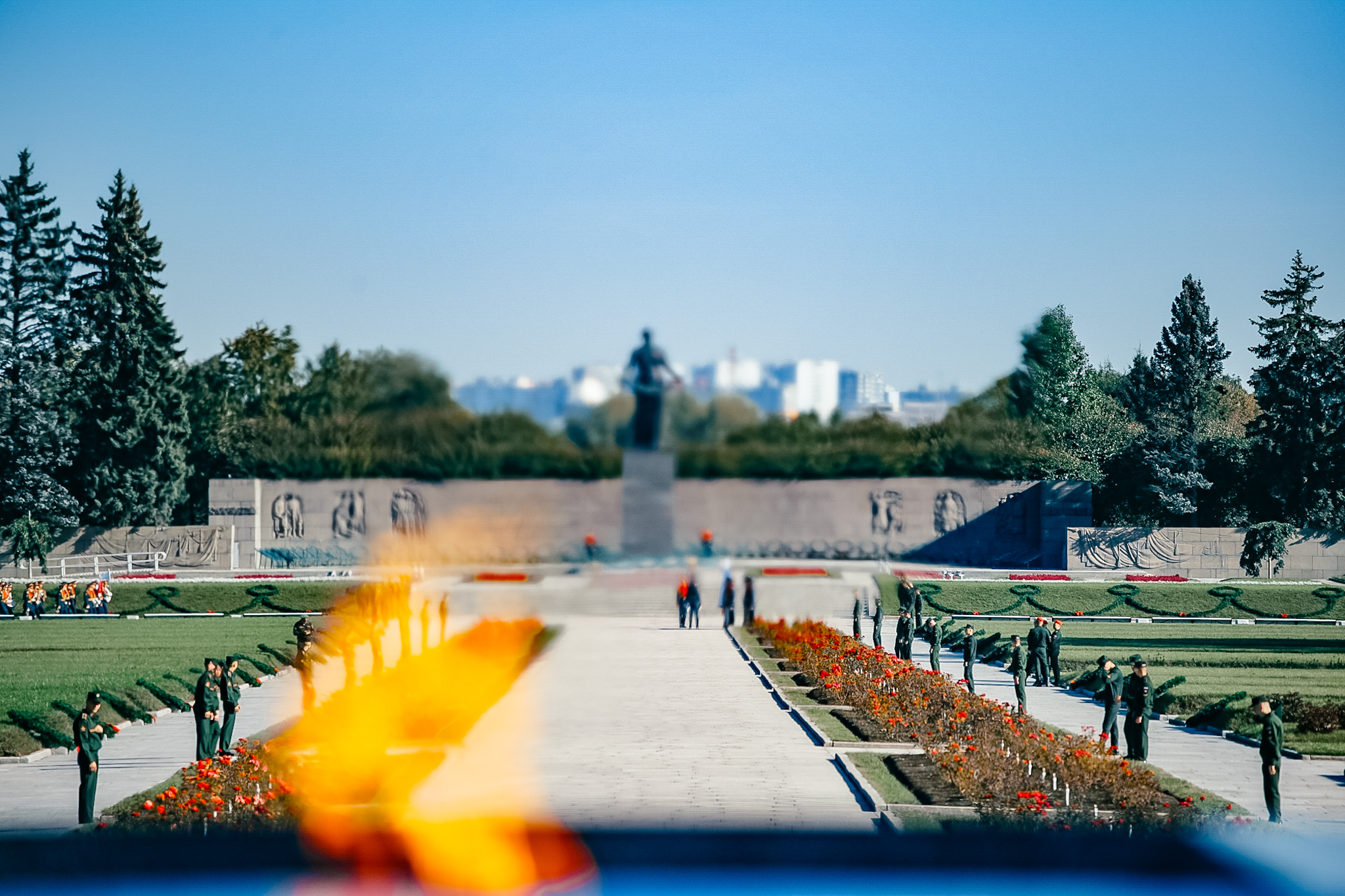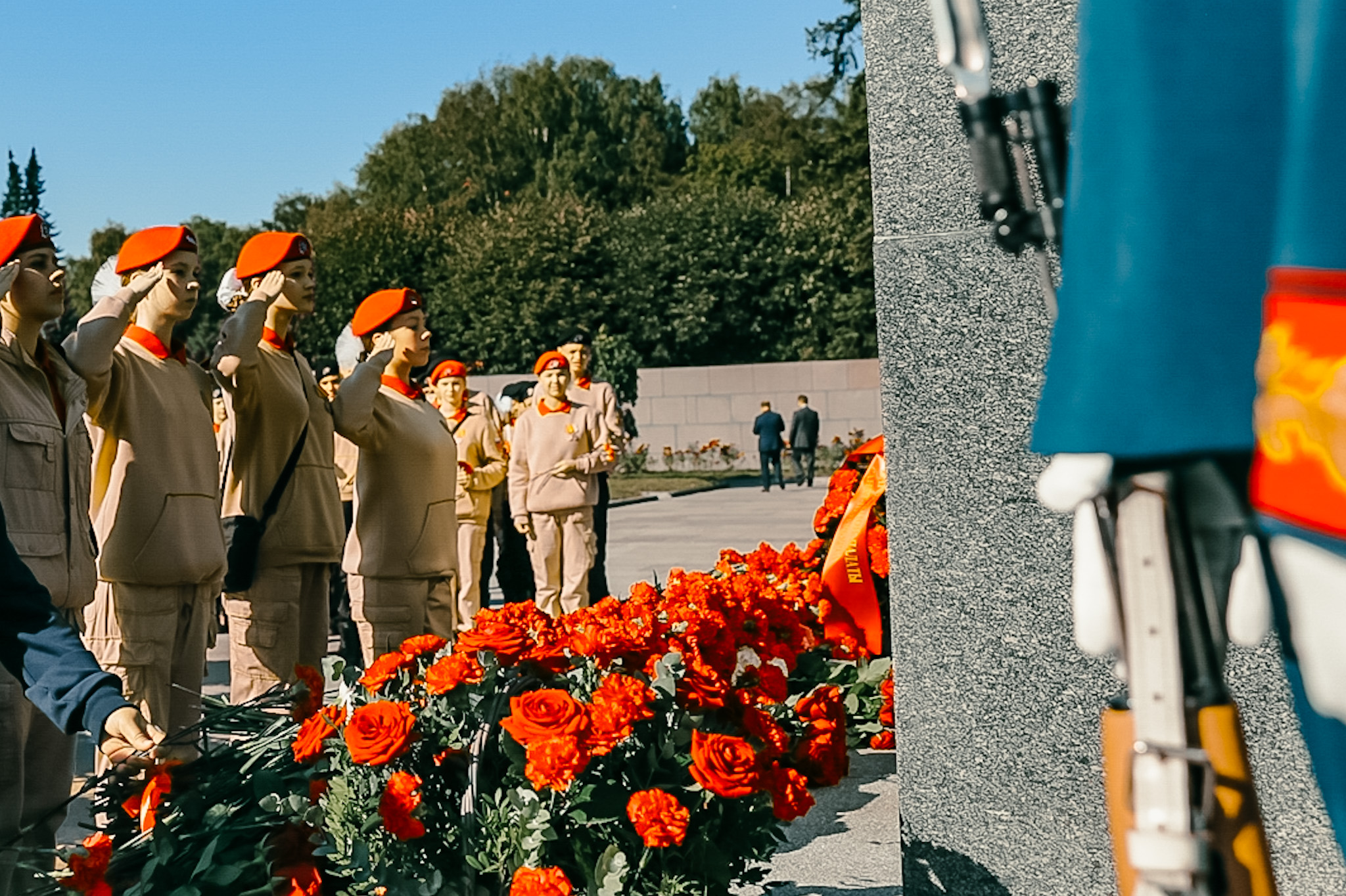 Цветы и венки возложили представители Конституционного суда Российской Федерации, члены правительства и депутаты Законодательного Собрания Ленинградской области, депутаты Государственной Думы РФ, делегация Общественной платы Санкт‑Петербурга, представители Главного командования Военно-Морского Флота и командования Ленинградского военного округа, командования Северо-Западным округом войск национальной гвардии Российской Федерации, делегация Межпарламентской ассамблеи государств – участников СНГ, делегации общественных организаций ветеранов, блокадников, несовершеннолетних узников фашистских лагерей, тружеников тыла, детей войны, представители Фонда «Защитники Отечества» и ветераны Специальной военной операции, члены молодёжных организаций, студенты, школьники, жители города.
