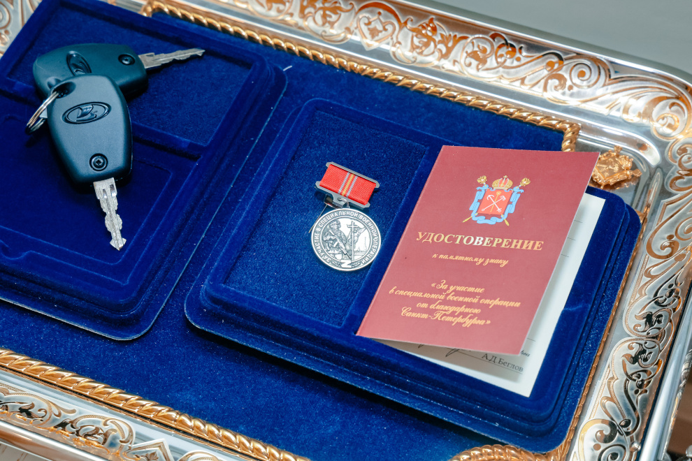 В ходе встречи губернатор вручил ветеранам почетные знаки «За участие в СВО от благодарного Петербурга» и ключи от адаптированных автомобилей «Лада».
