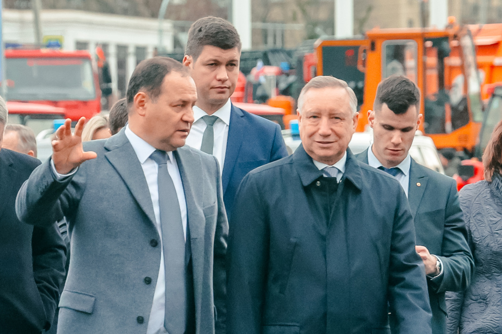 Представленные образцы техники различного назначения осмотрели губернатор Александр Беглов и премьер-министр Республики Беларусь Роман Головченко.