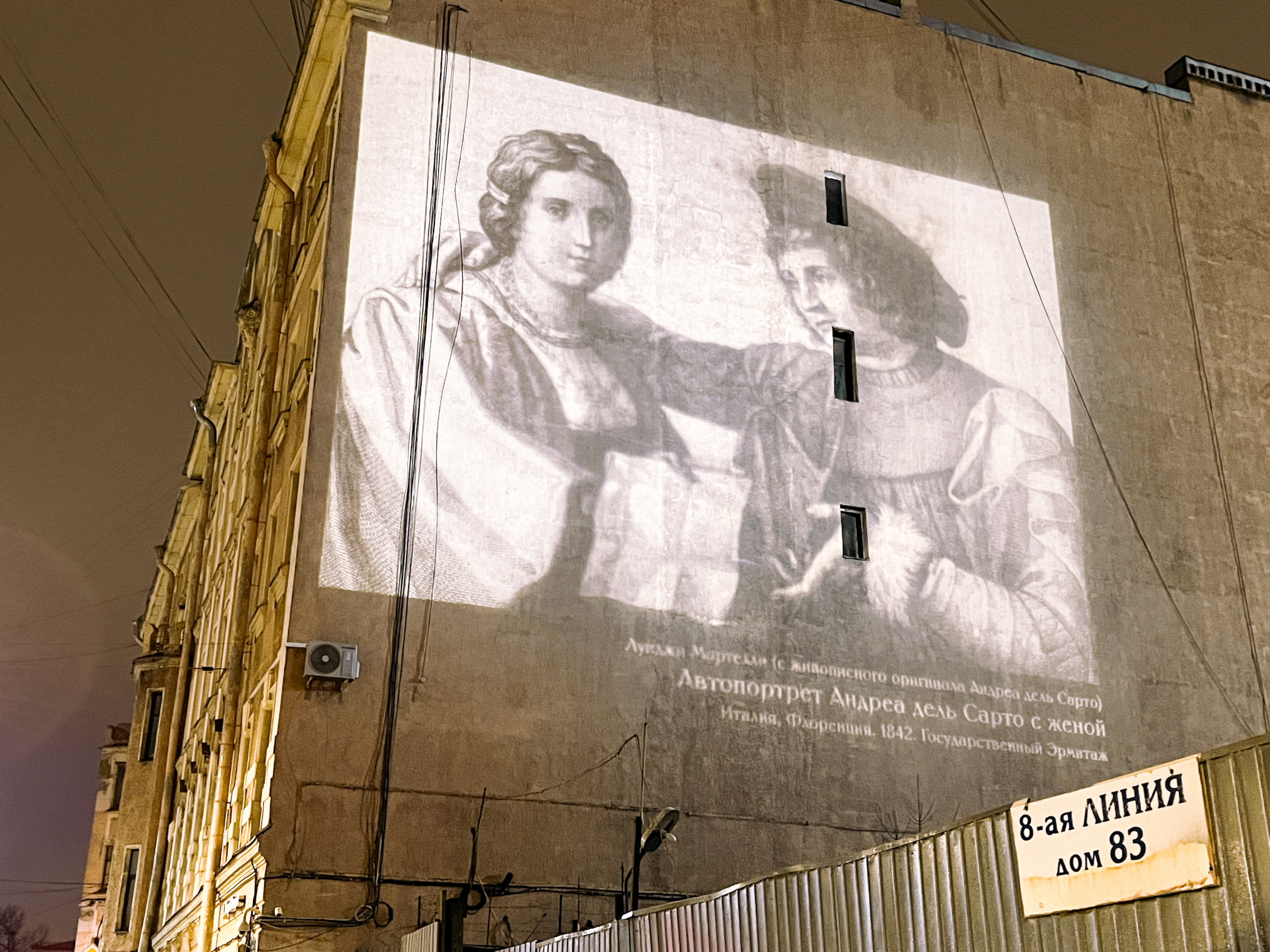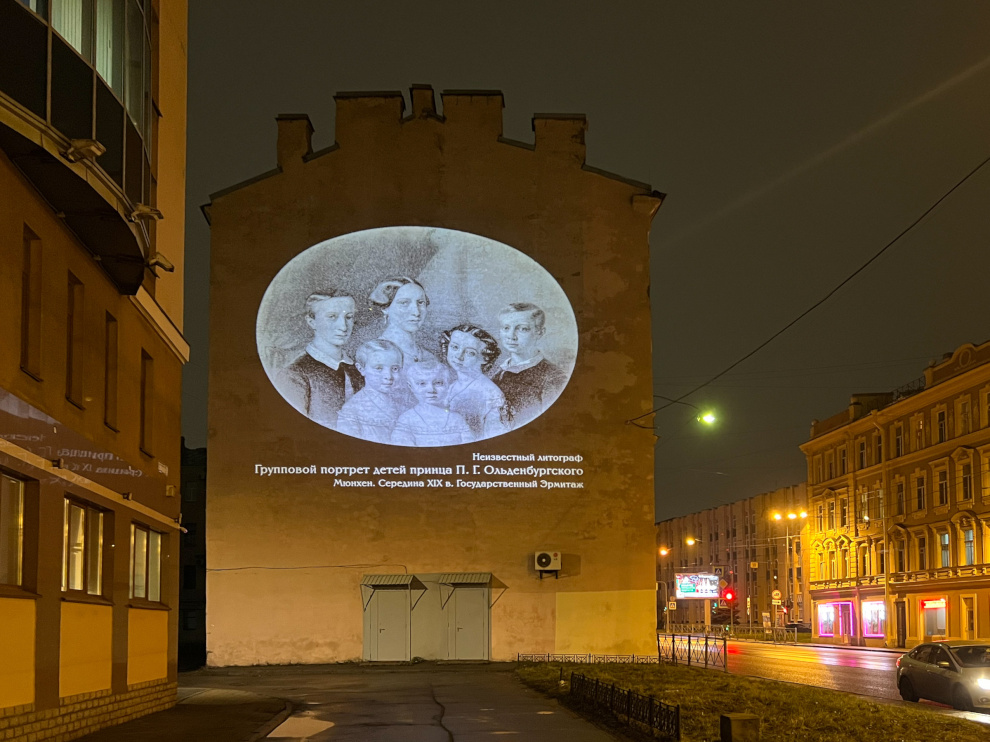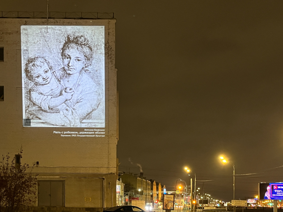 В завершение Года Семьи Государственный Эрмитаж совместно с Комитетом по энергетике и инженерному обеспечению и Комитетом по градостроительству и архитектуре подготовил жителям и гостям Санкт‑Петербурга подарок - на брандмауэрах пяти зданий города появились масштабные световые проекции картин из эрмитажной коллекции.