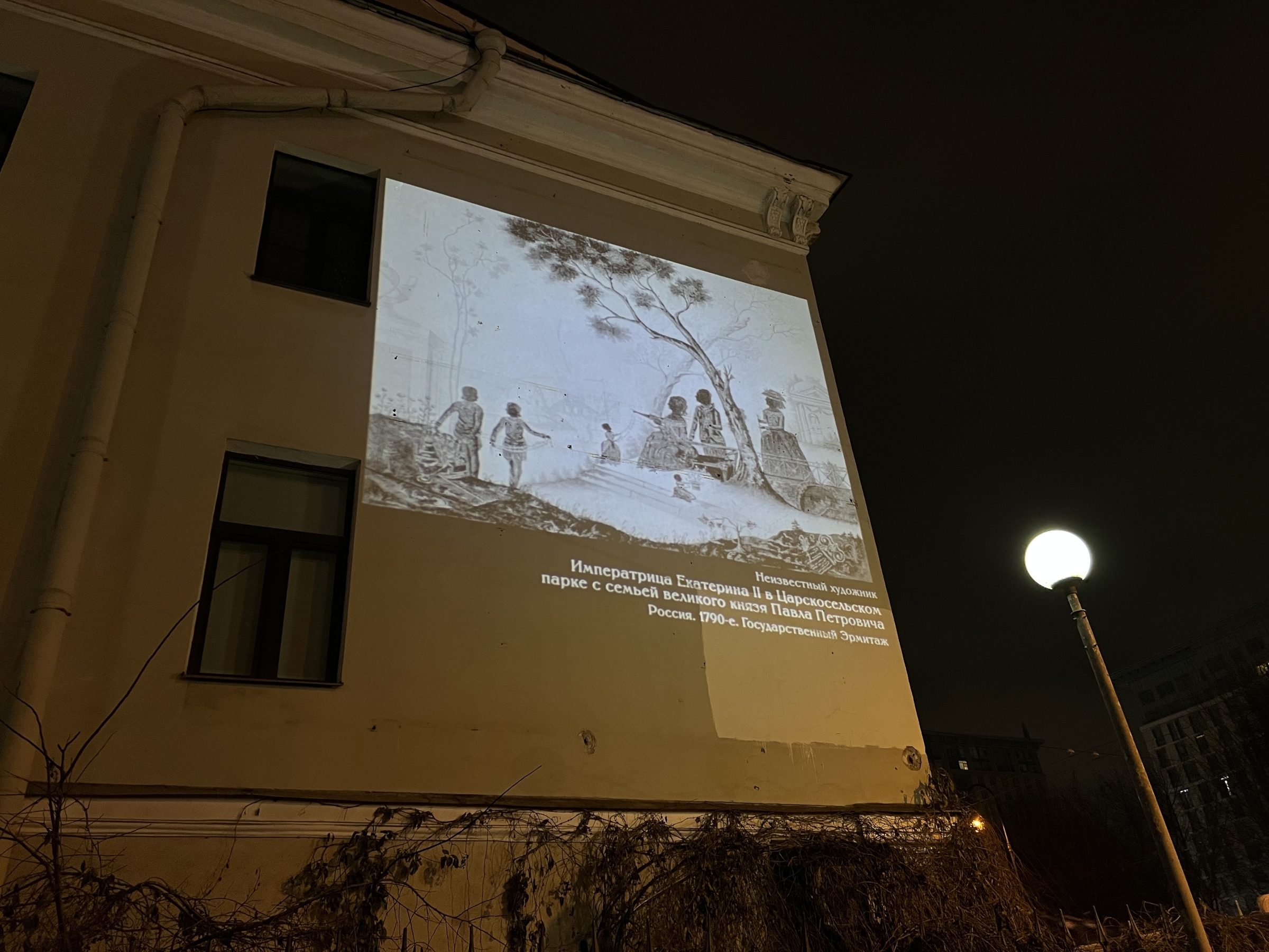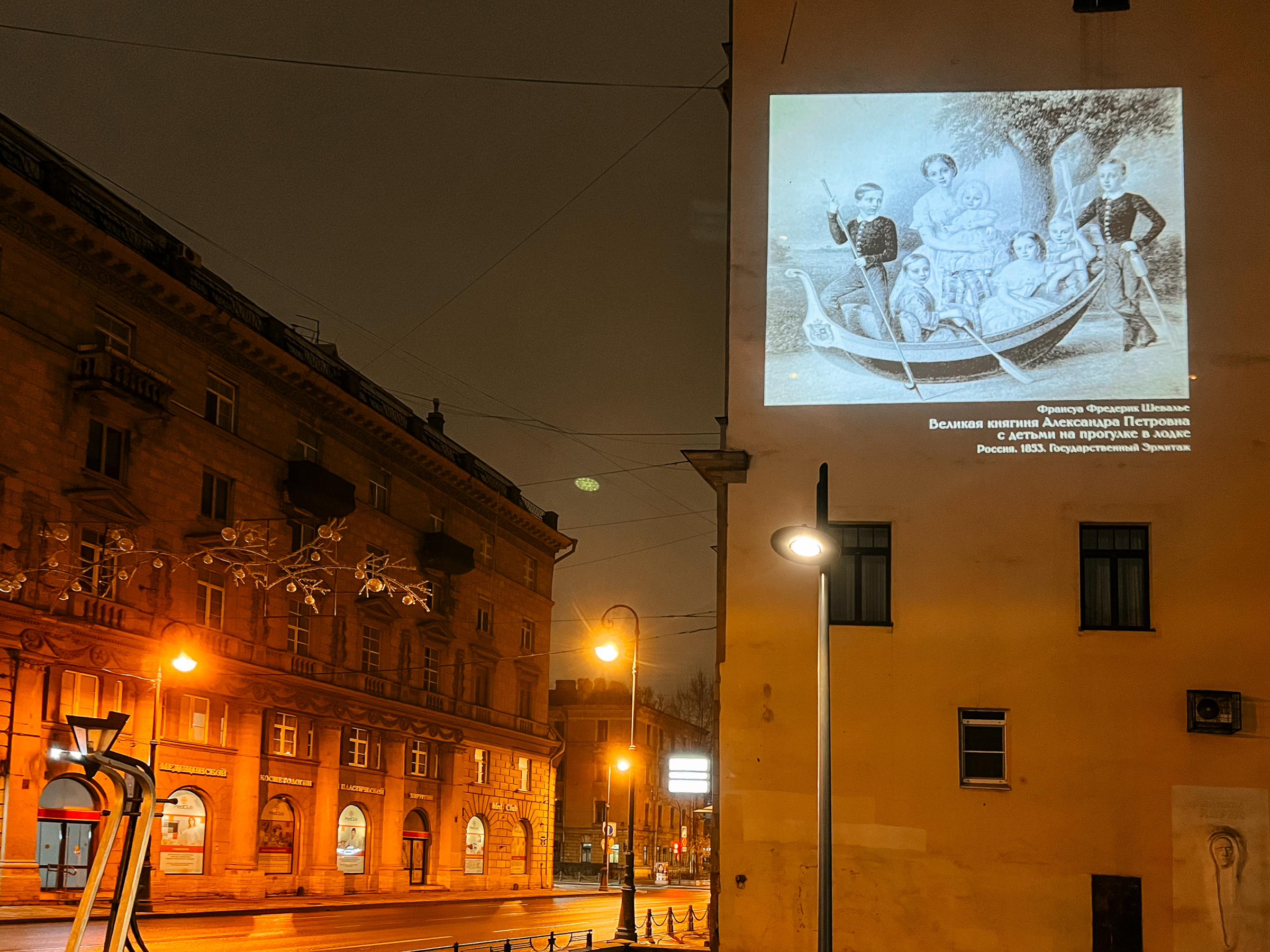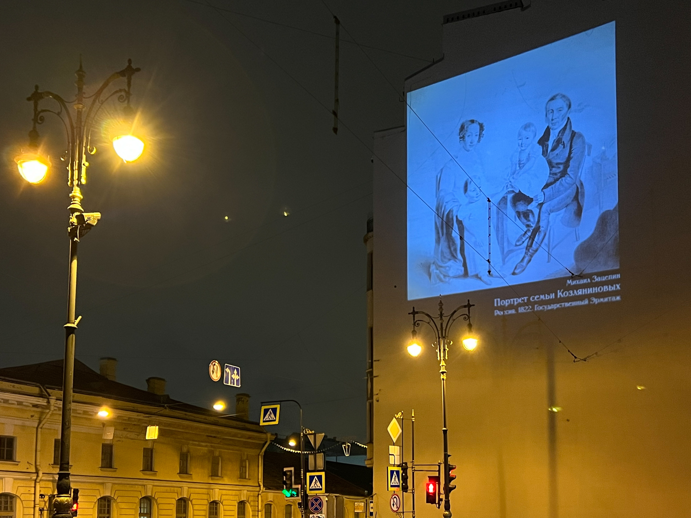 В завершение Года Семьи Государственный Эрмитаж совместно с Комитетом по энергетике и инженерному обеспечению и Комитетом по градостроительству и архитектуре подготовил жителям и гостям Санкт‑Петербурга подарок - на брандмауэрах пяти зданий города появились масштабные световые проекции картин из эрмитажной коллекции.