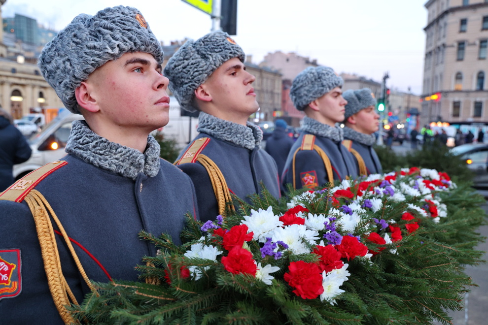 С торжественной церемонии возложения цветов к обелиску «Городу-Герою Ленинграду» на площади Восстания начался сегодня в Петербурге День Героев Отечества. Участие в ней приняли губернатор Александр Беглов, председатель Законодательного Собрания Санкт‑Петербурга Александр Бельский, полномочный представитель Президента Российской Федерации в СЗФО Александр Гуцан, председатель Совета Героев Советского Союза, Героев Российской Федерации и полных кавалеров ордена Славы Санкт‑Петербурга и Ленинградской области» Геннадий Фоменко.