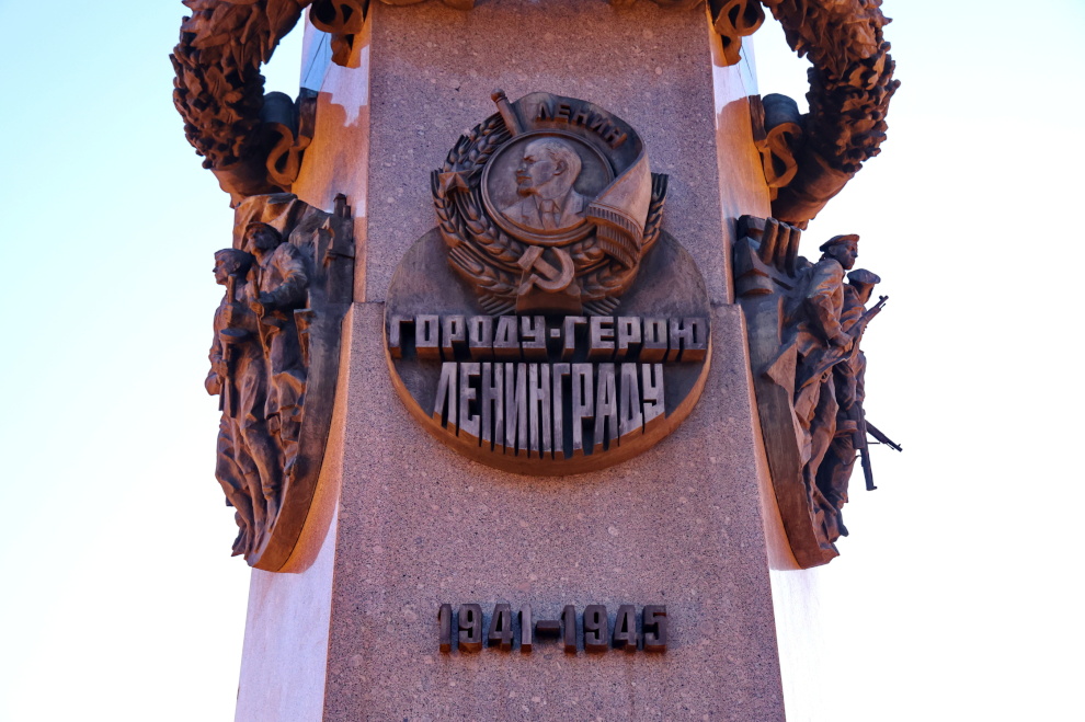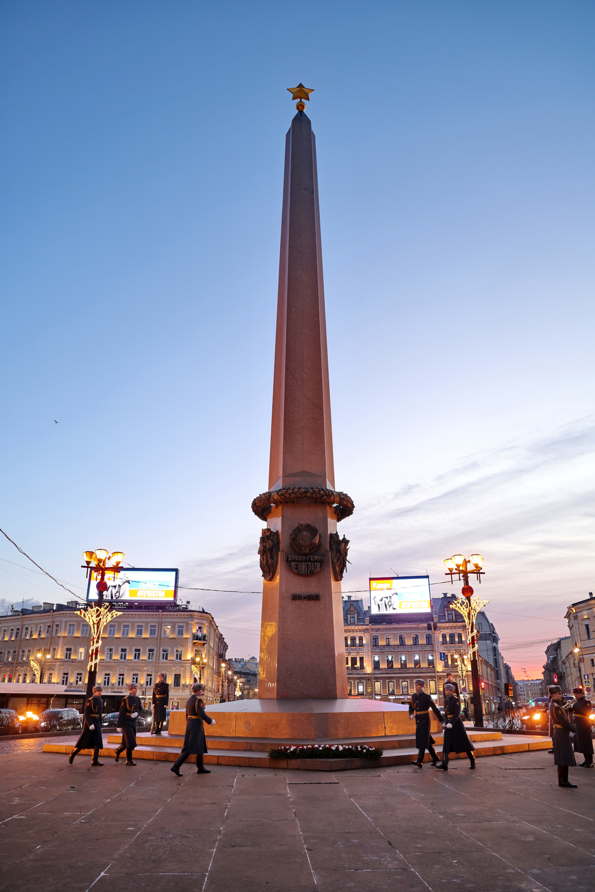 Обелиск «Городу-Герою Ленинграду» на площади Восстания установлен в канун 40-летия Победы в Великой Отечественной войне в 1985 году. Он был создан архитекторами Владимиром Лукьяновым и Александром Алымовым. Бронзовые горельефы выполнены скульпторами Альбертом Чаркиным, Валентином Свешниковым, Борисом Петровым и Александром Виноградовым. Монумент увенчан «Золотой Звездой Героя».