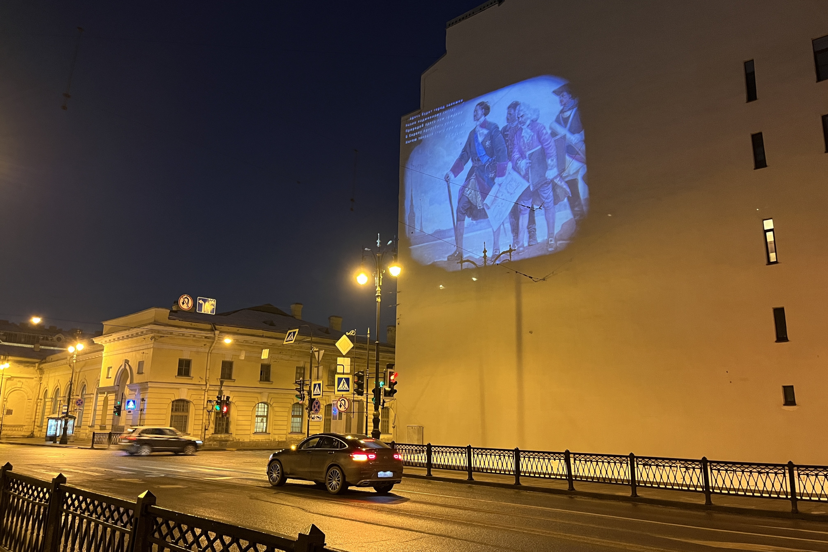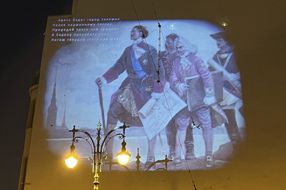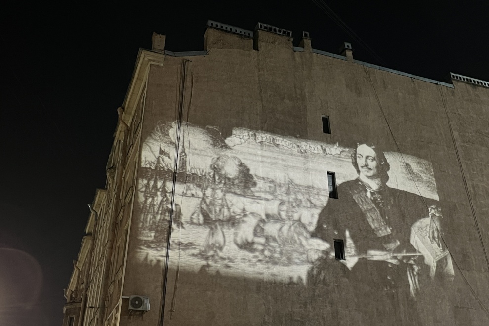 По инициативе Комитета по энергетике и инженерному обеспечению, Комитета по градостроительству и архитектуре и предприятия «Ленсвет» на стенах городских зданий сегодня вечером появятся световые проекции с образами Петра Первого.