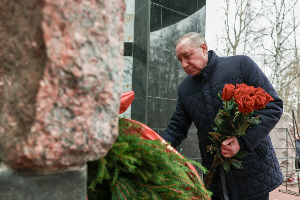 Цветы к мемориалу «Ради жизни на земле» возложили губернатор Санкт‑Петербурга Александр Беглов, начальник Главного управления МЧС России по Санкт‑Петербургу Алексей Аникин, родные и близкие погибших, сотрудники пожарно-спасательных служб города, представители силовых ведомств и общественных организаций.