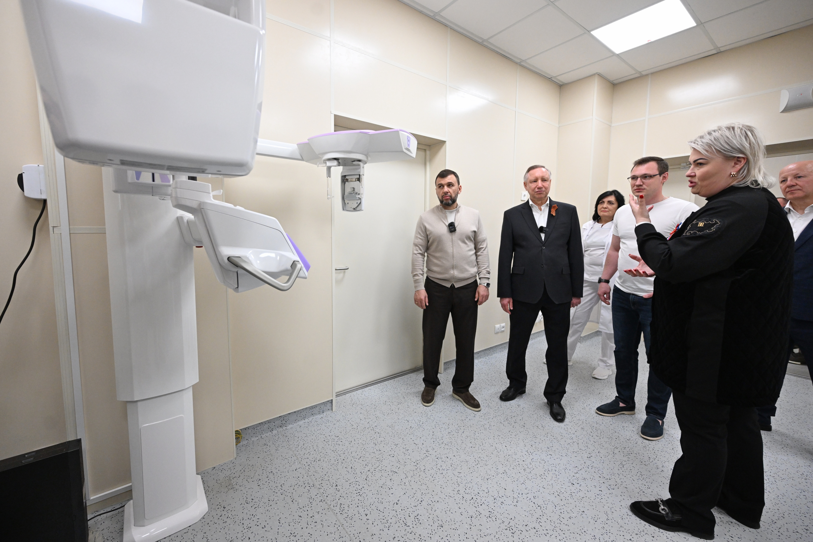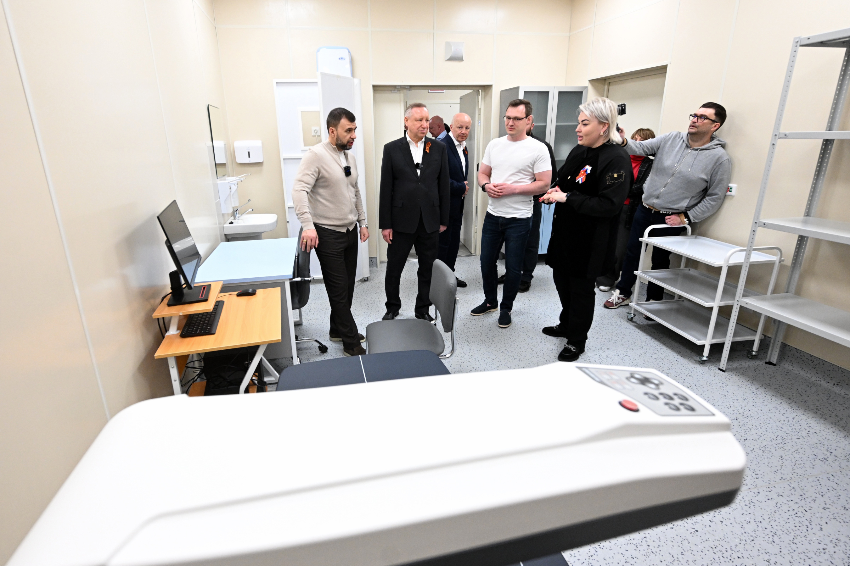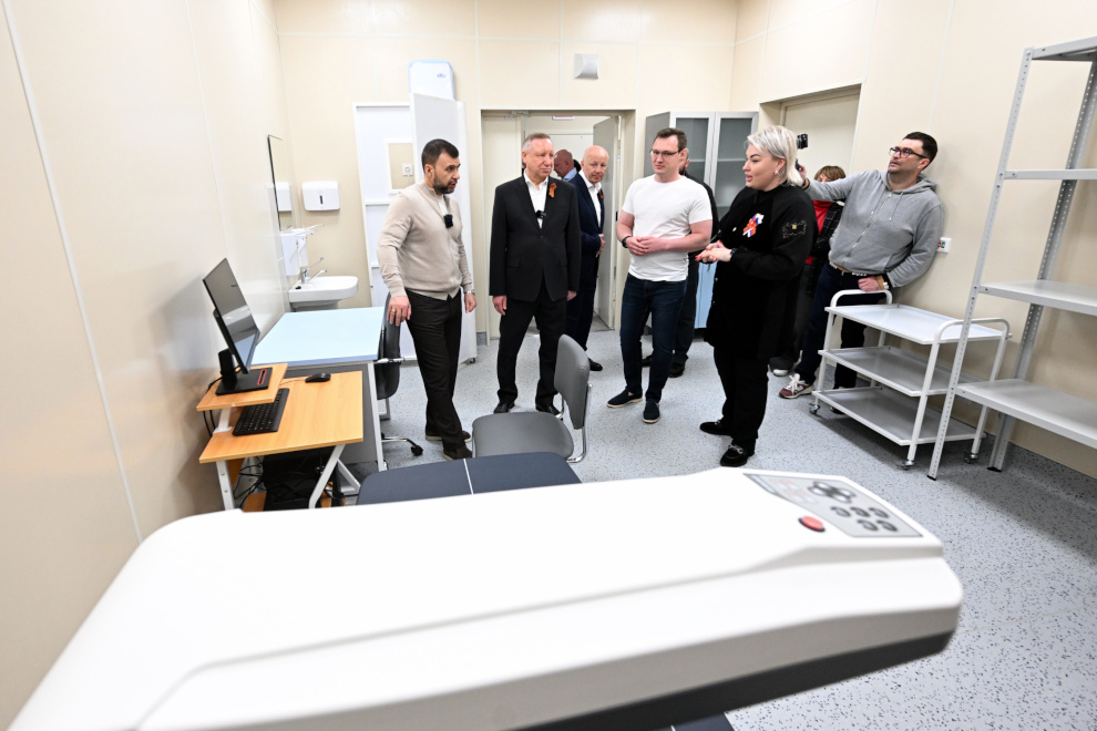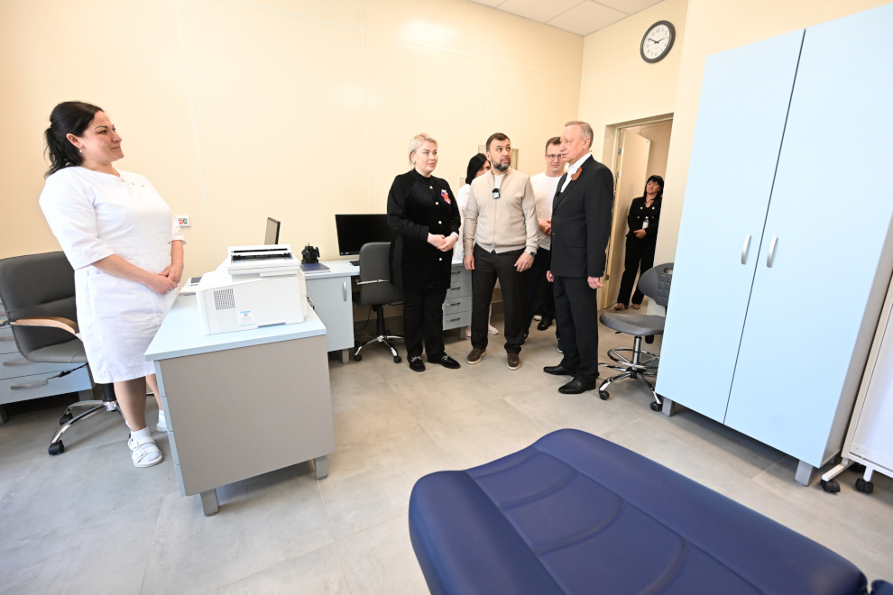 Губернатор Санкт‑Петербурга Александр Беглов, глава Донецкой Народной Республики Денис Пушилин и временно исполняющий полномочия главы Мариуполя Олег Моргун посетили Центр медико-санитарной помощи №3 города Мариуполя, где силами петербургских специалистов построены два корпуса.