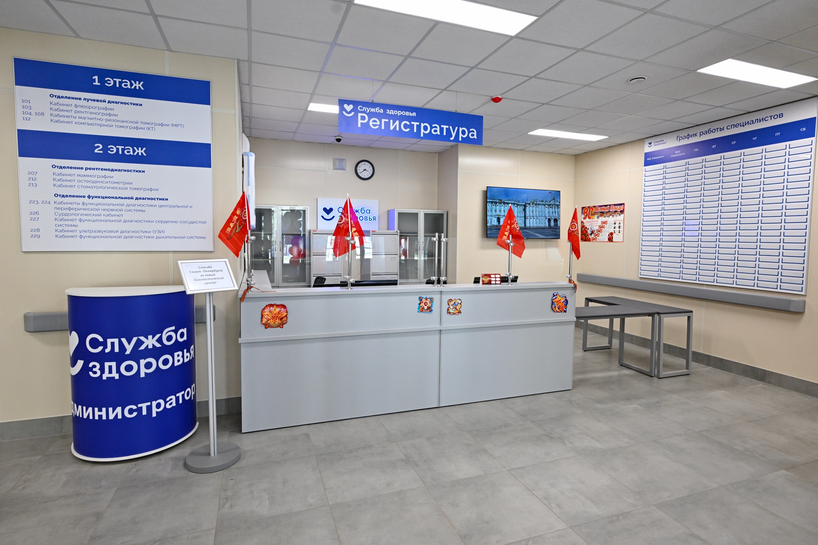 Работы в диагностическом корпусе полностью завершены в марте этого года, а корпус вспомогательных служб планируется ввести к концу мая.