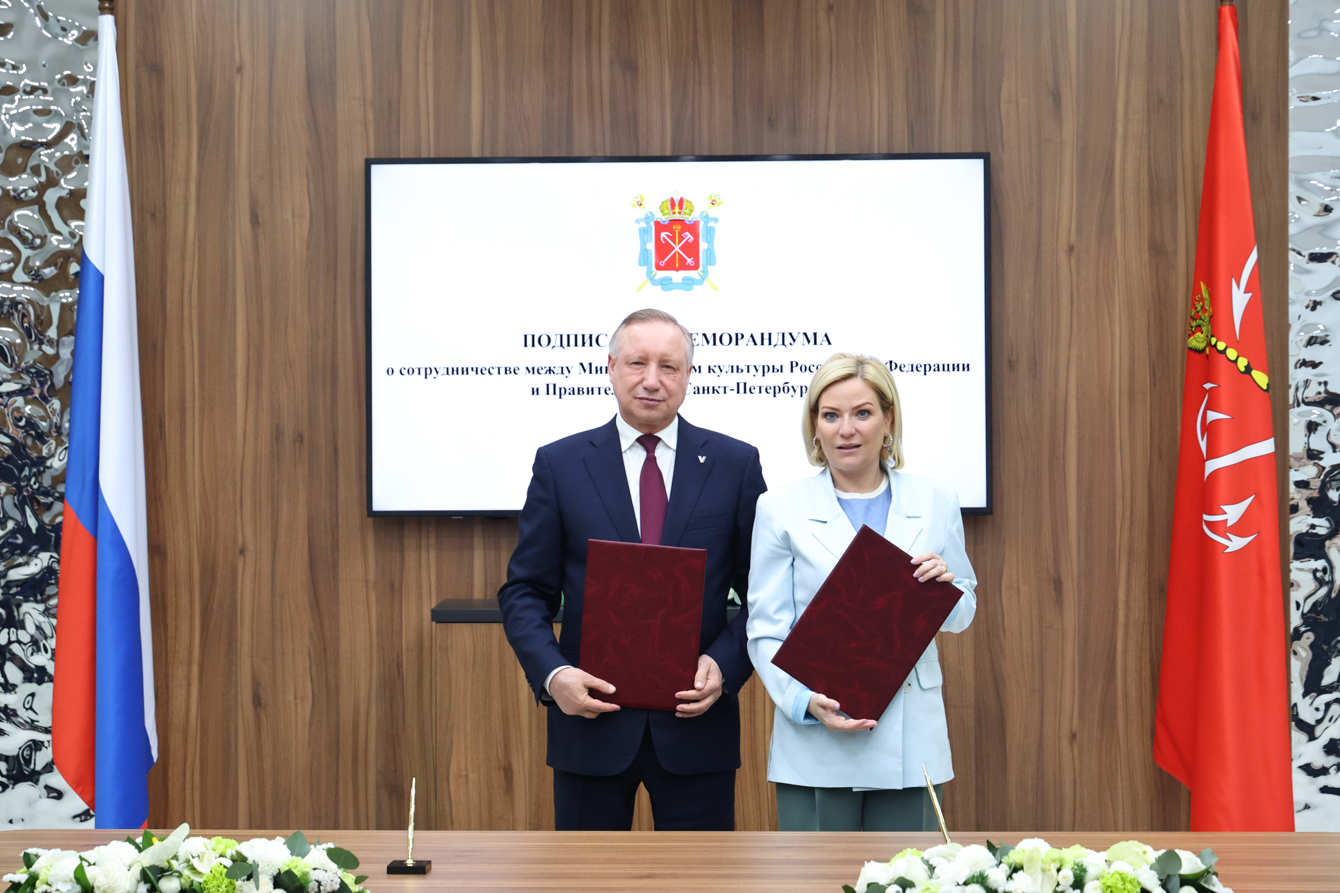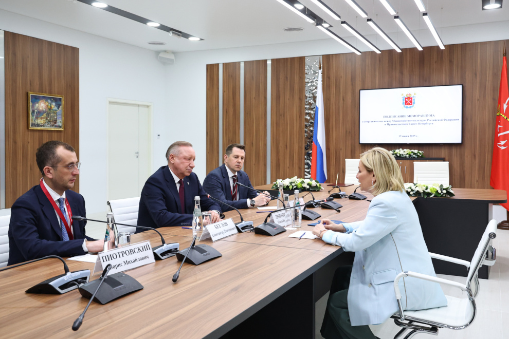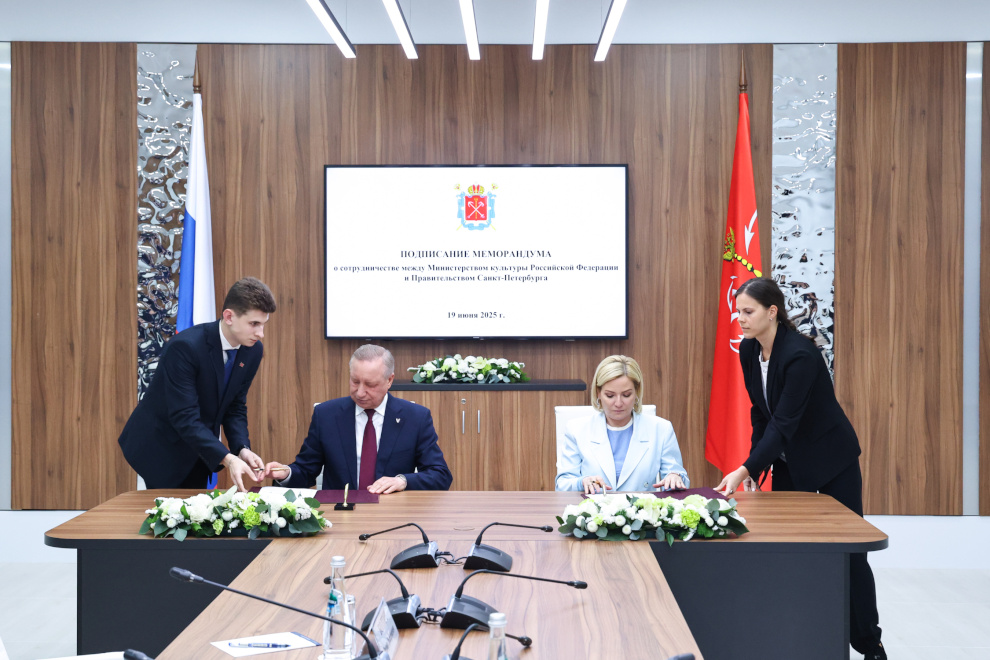 Губернатор Александр Беглов и министр культуры Российской Федерации Ольга Любимова на ПМЭФ-2025 подписали Меморандум о сотрудничестве между Министерством культуры Российской Федерации и Правительством Санкт‑Петербурга.