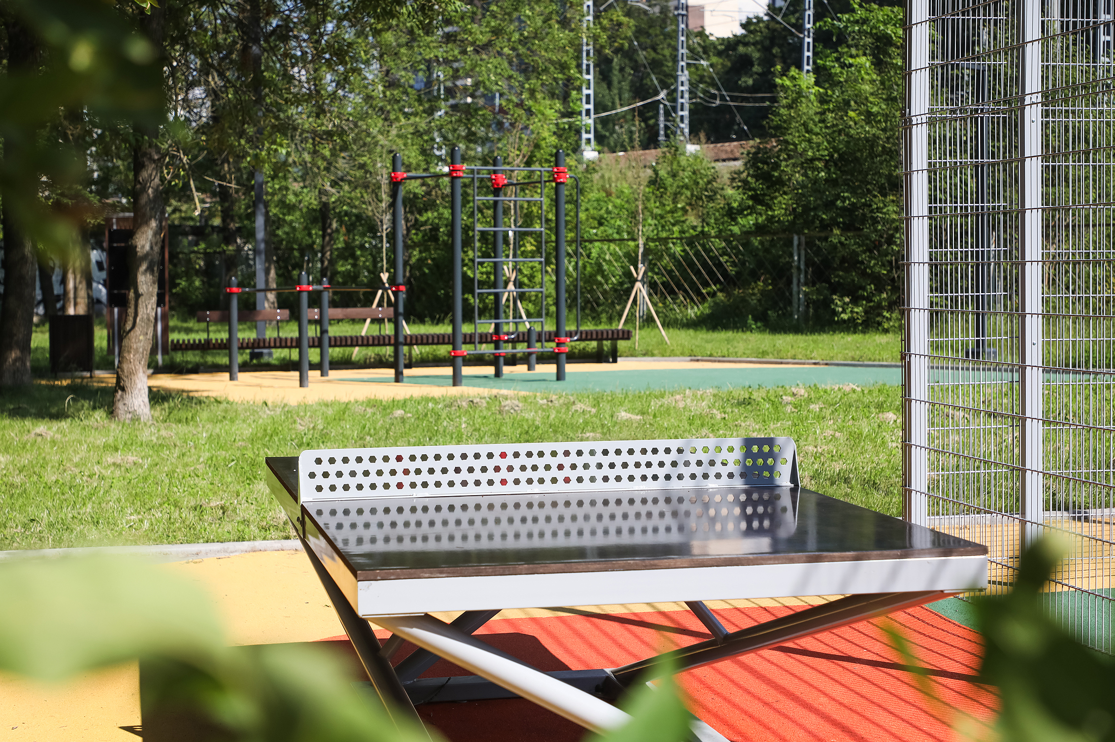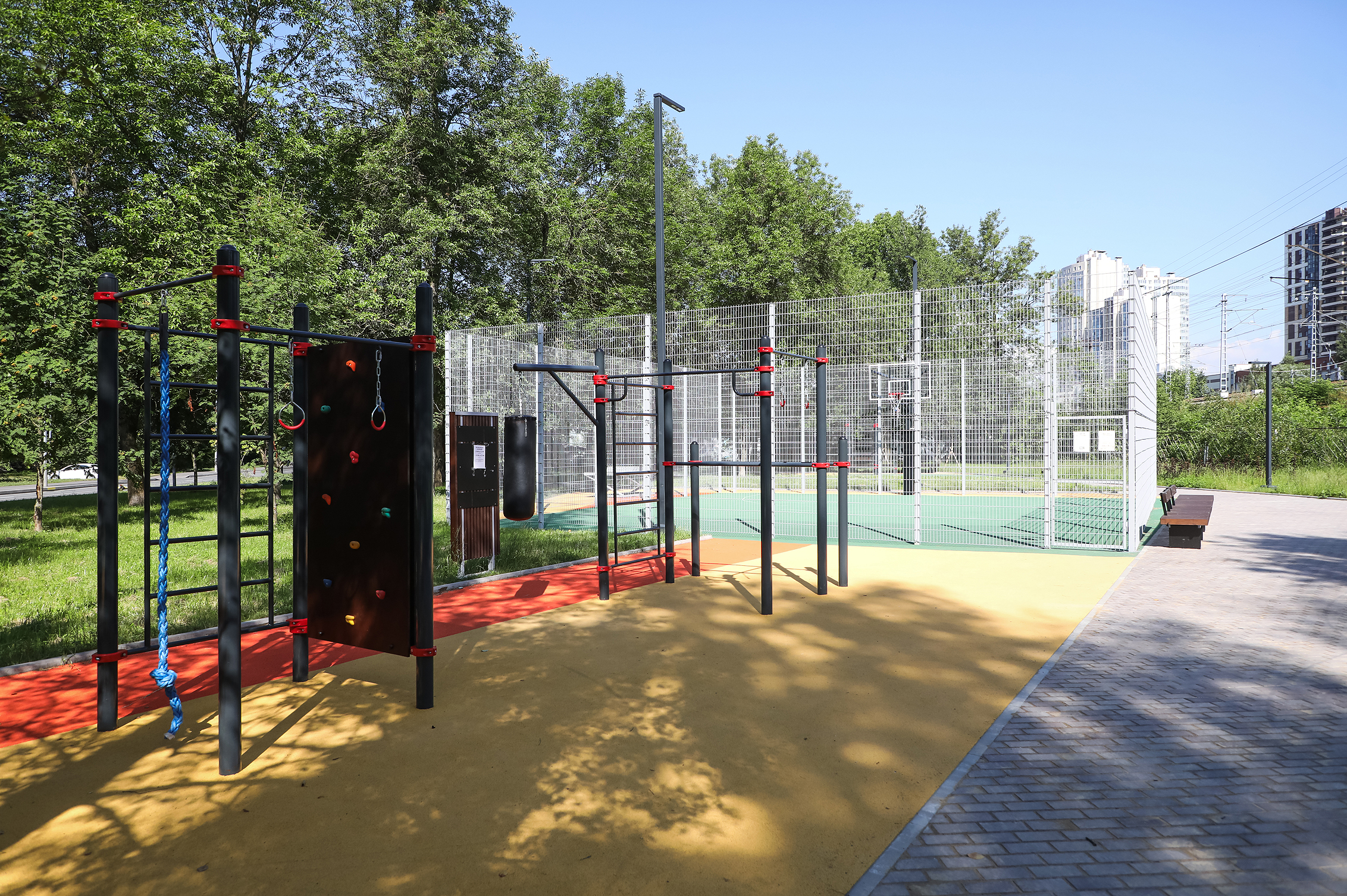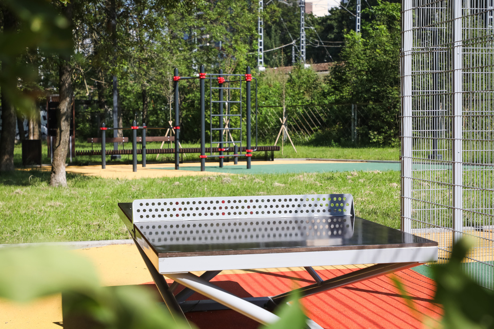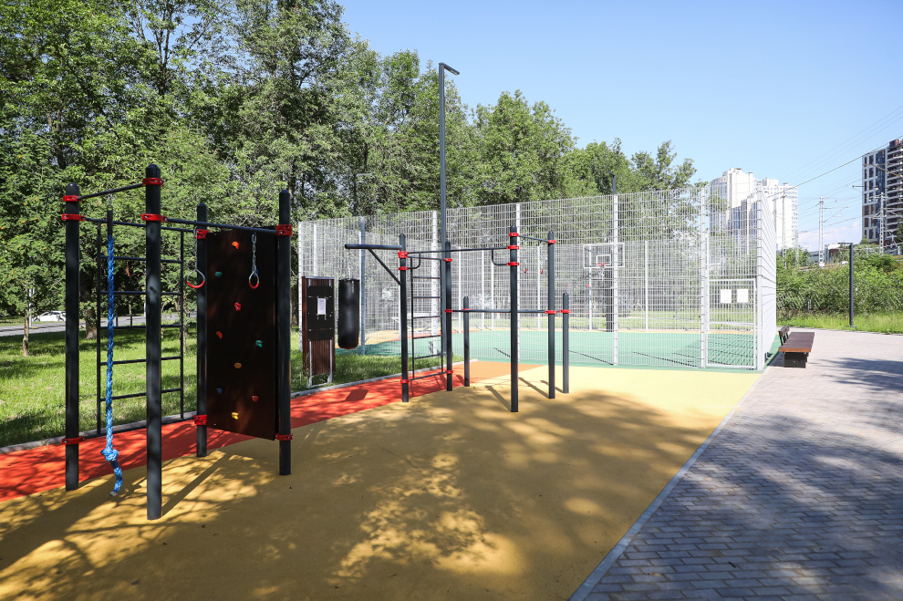 На территории площадью свыше 3600 квадратных метров оборудовали площадку для стритбола, воркаут-зону, установили стену для скалолазания, различные тренажеры. Также появилась зона отдыха со скамейками и малыми архитектурными формами.