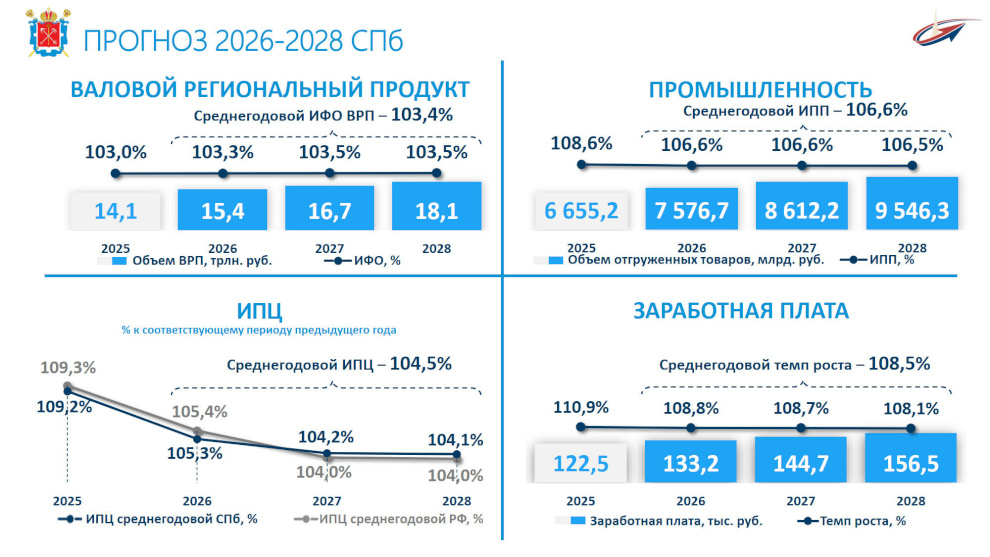 Также участники заседания рассмотрели прогноз на 2026-2028 годы. Как подчеркнул губернатор, перед городским правительством стоит задача сохранить положительные тенденции, опираясь на надёжный фундамент – диверсифицированную экономику и всестороннюю государственную поддержку. Благодаря устойчивому бюджету Петербург выполняет все социальные обязательства. Это позволяет прогнозировать высокий уровень инвестиционной активности, загруженности промышленных предприятий и заработной платы. Её темпы роста составят 8,5% в год.