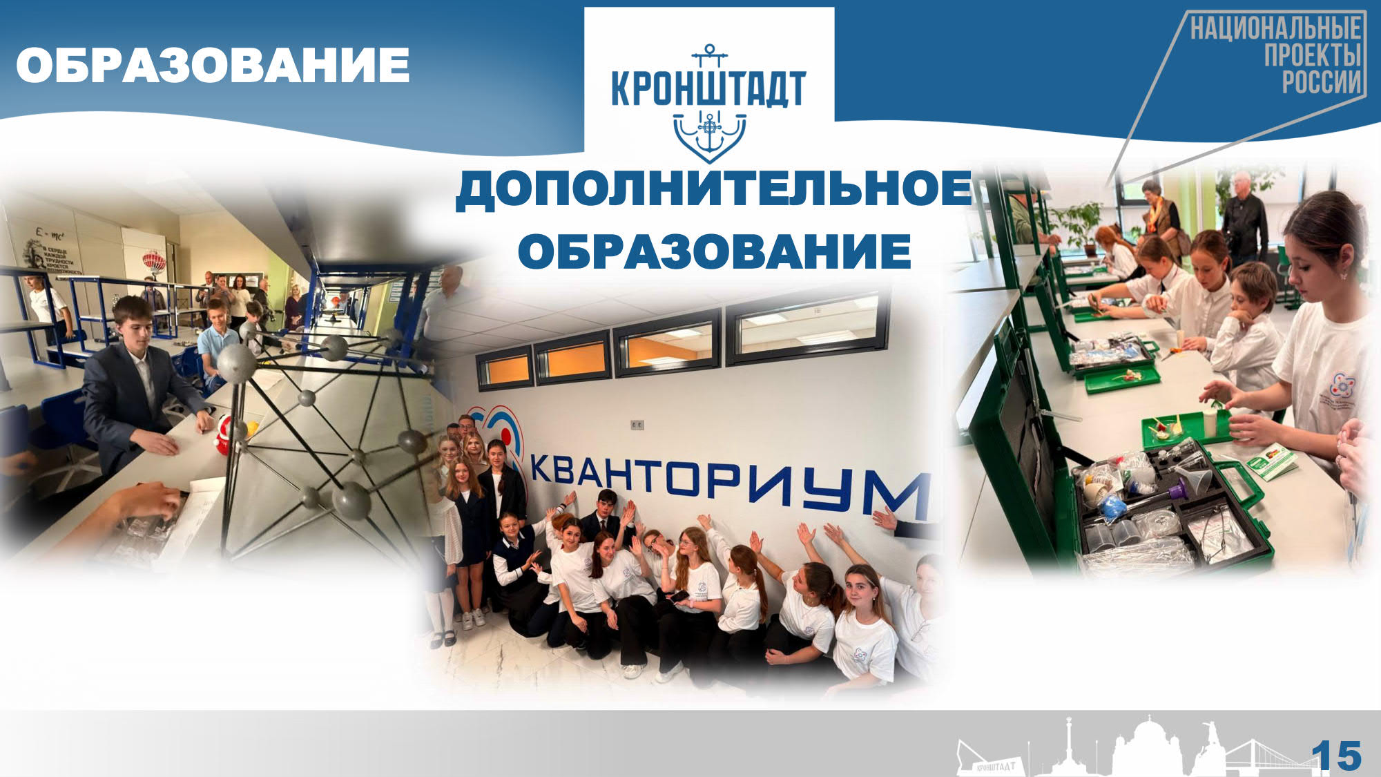 К значимым достижениям района относится активная профориентационная работа среди школьников, создание инженерных классов. Кронштадтские школы и Инжиниринговый центр «Кронштадт» заключили соглашение о подготовке будущих инженеров.