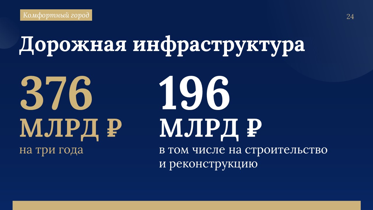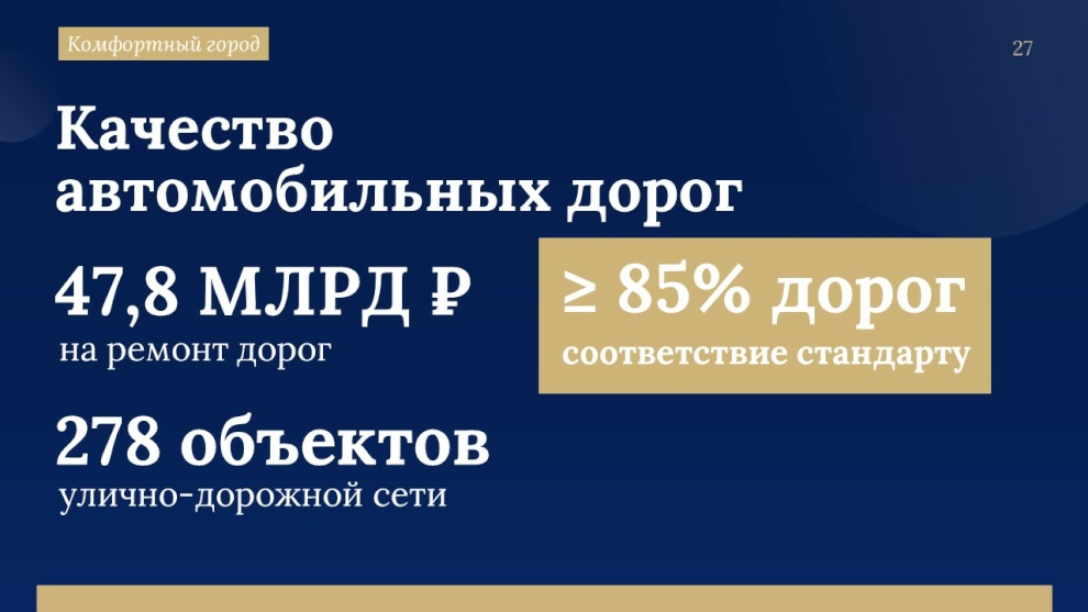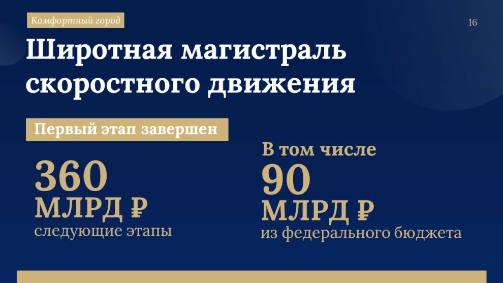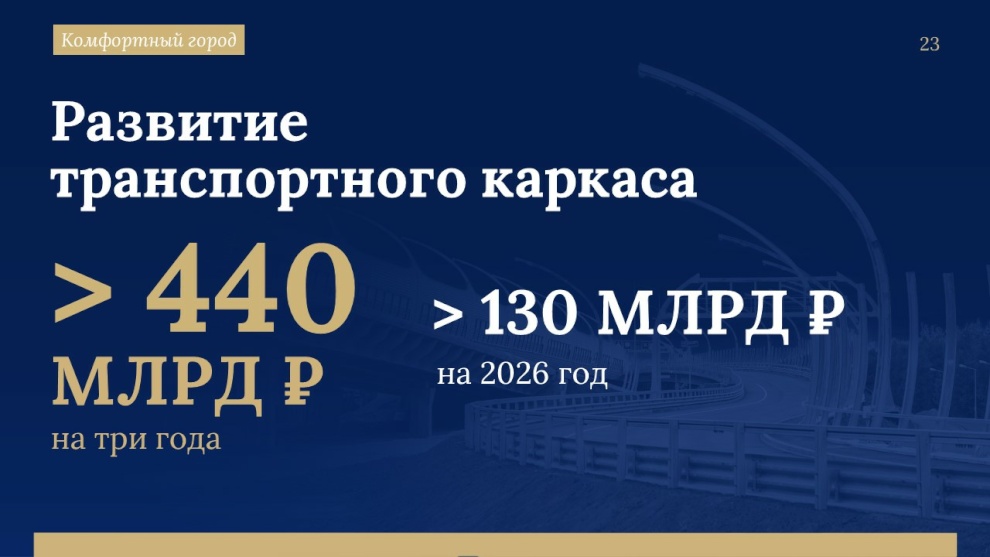 С реализацией мегапроектов увязано обновление всей системы внутригородских дорог. На её развитие в трёхлетней Адресной инвестиционной программой зарезервировано 440 миллиардов рублей. «Это больше половины общего объема АИП», - подчеркнул губернатор.