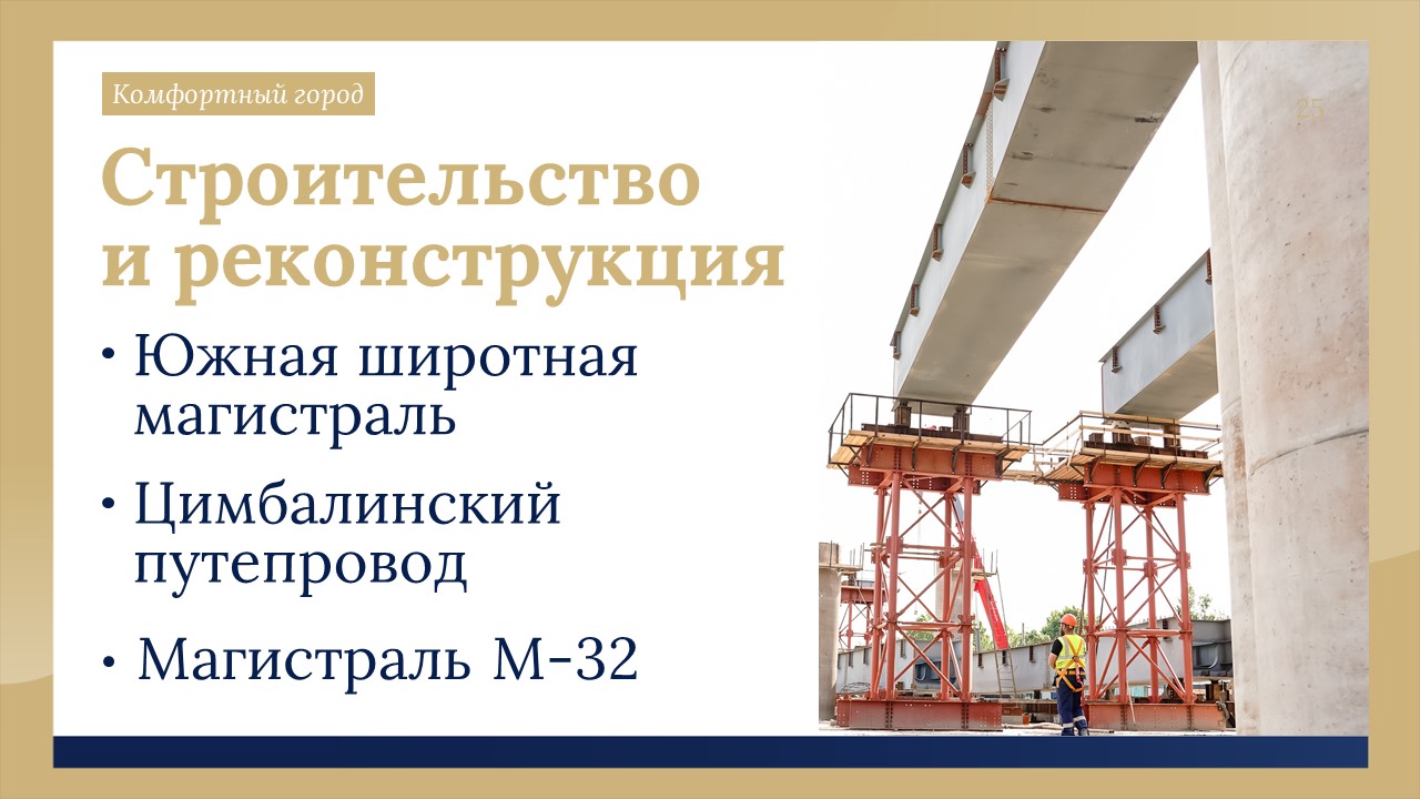 Он сообщил, что 196 миллиардов рублей пойдёт на строительство и реконструкцию таких объектов как Южная широтная магистраль, Цимбалинский путепровод, магистраль М-32.