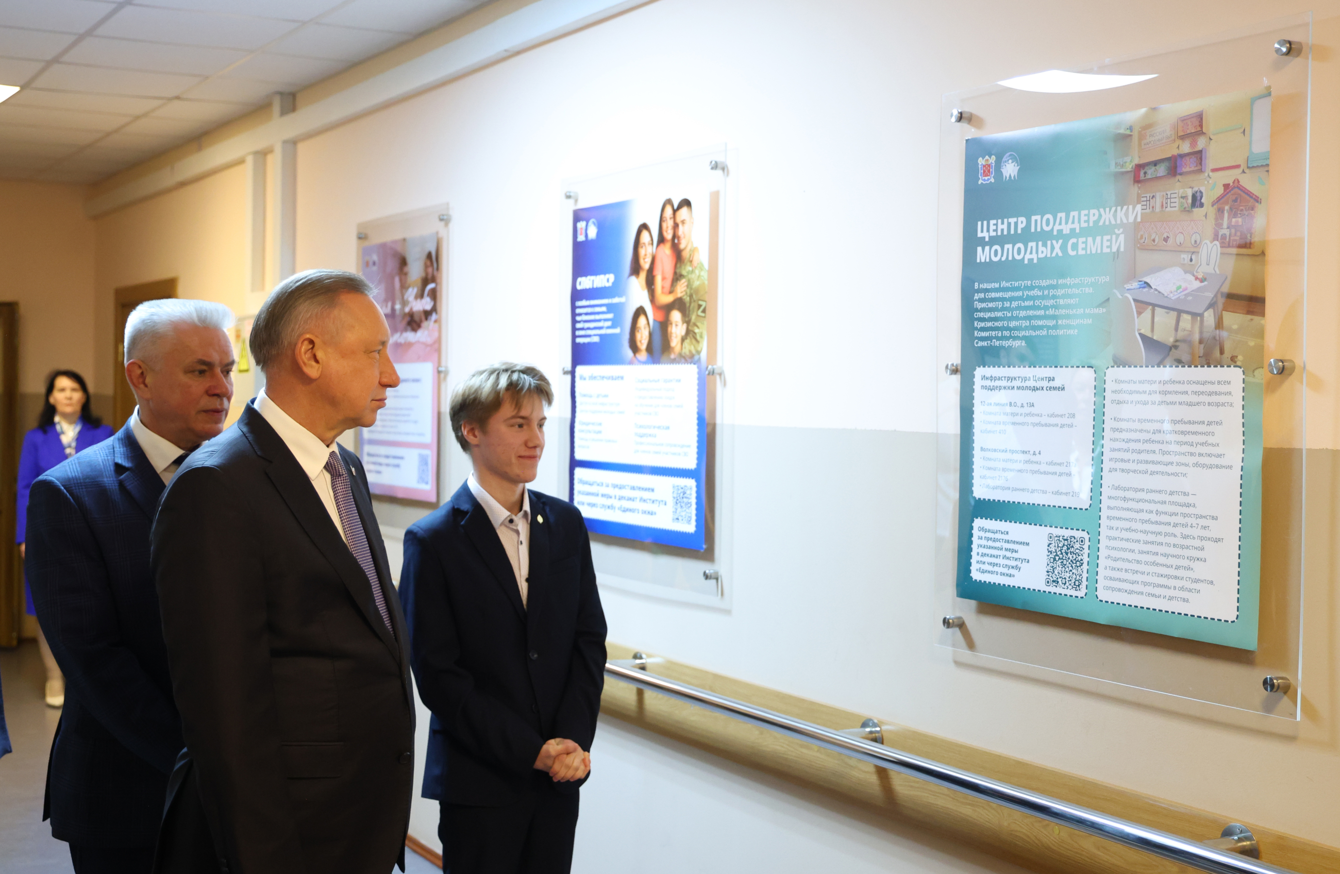 «По инициативе Президента России в этом году дан старт новому национальному проекту «Семья». Особое внимание в нём уделяется многодетным и молодым семьям. Важно, чтобы в нашем городе росли крепкие, дружные семьи. А для этого нужно создавать им условия, в том числе и в высшей школе. Ваш институт – первый, где мы начали работу по созданию детских комнат в вузах. Мы считаем, что создание семьи и образование не должны противоречить друг другу, и делаем всё возможное, чтобы студенты заводили семьи уже во время учёбы», – сказал Александр Беглов.