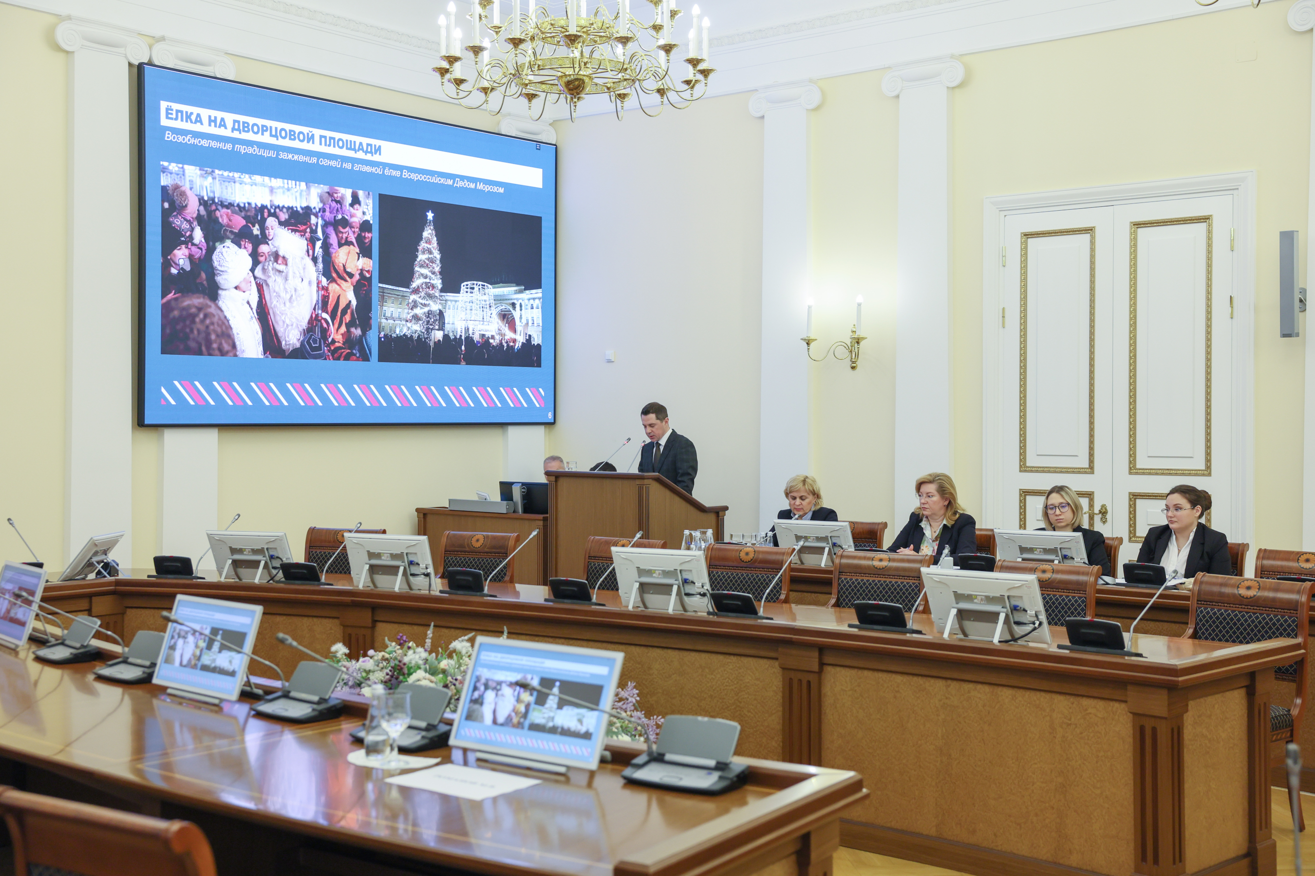 «Новый год — это праздник, прежде всего, для детей. В Ледовом дворце ребят ждет масштабное представление с участием звёзд фигурного катания. Его посетят более 255 тысяч ребят. Мы — единственный регион, который устраивает такой праздник для младших школьников. Наши учреждения культуры подготовили свои праздничные программы для детей. Особое внимание прошу уделить ребятам, которые находятся в детских социальных учреждениях. Все дети должны почувствовать заботу города и получить подарки»,— подчеркнул Александр Беглов.