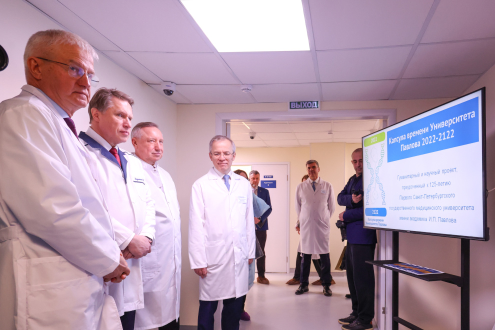 Александр Беглов и Михаил Мурашко также осмотрели Капсулу времени Университета Павлова 2022-2122. Масштабная гуманитарная и научная инициатива, приуроченная к 125-летию Университета, призвана сохранить наследие нашей эпохи для будущих поколений врачей, учёных и исследователей.