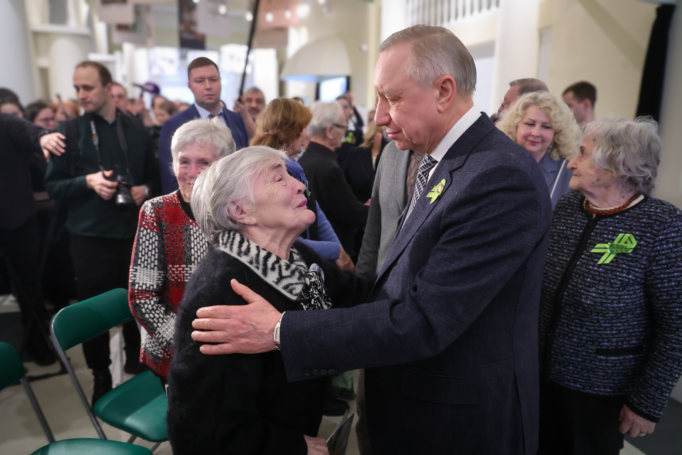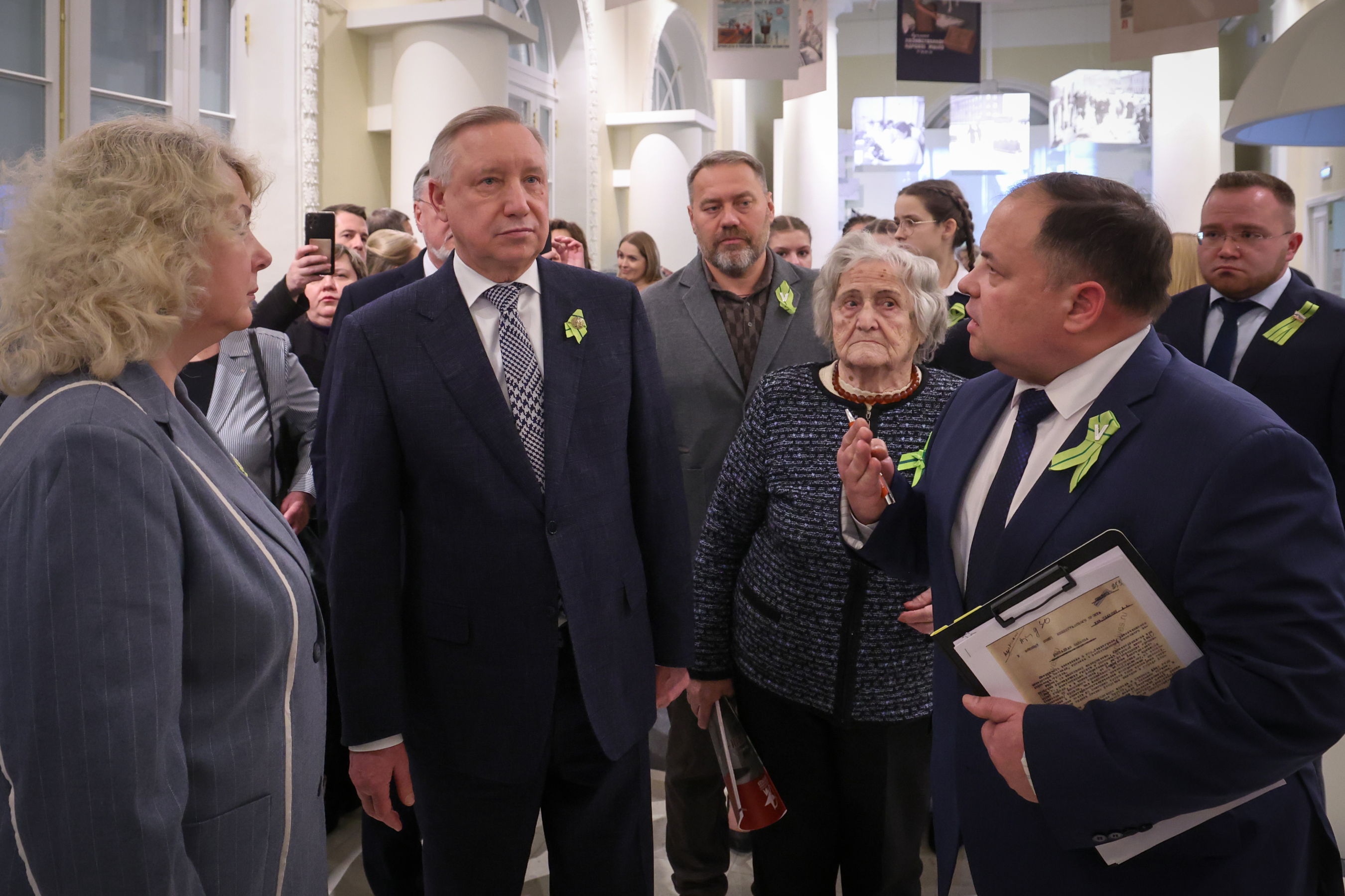 Директор Государственного мемориального музея обороны и блокады Ленинграда Елена Лезик провела для первых посетителей экскурсию по выставке. Она поблагодарила губернатора за поддержку в развитии музея.