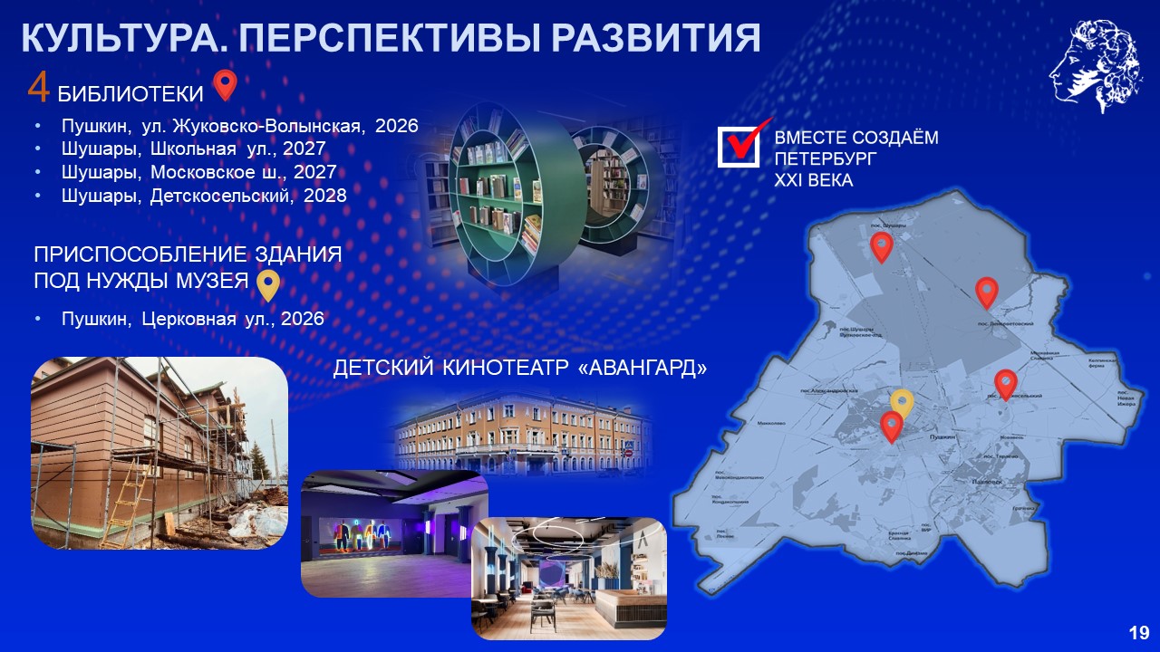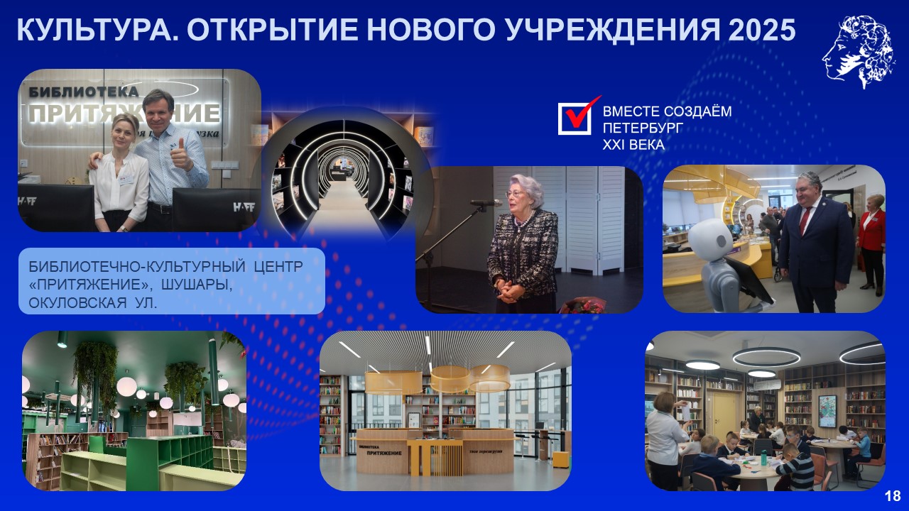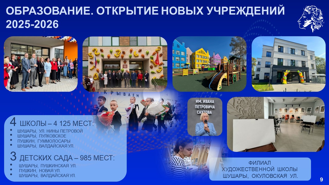 «Как и в других районах Петербурга, мы предприняли максимум усилий, чтобы достроить брошенные объекты и построить новые. Переломили ситуацию, с 2018 года ввели в Пушкинском районе 61 социальный объект, в том числе 21 детский сад, 13 школ, 12 медицинских учреждений, 5 спортивных объектов. Сейчас работаем на опережение», – сказал Александр Беглов.