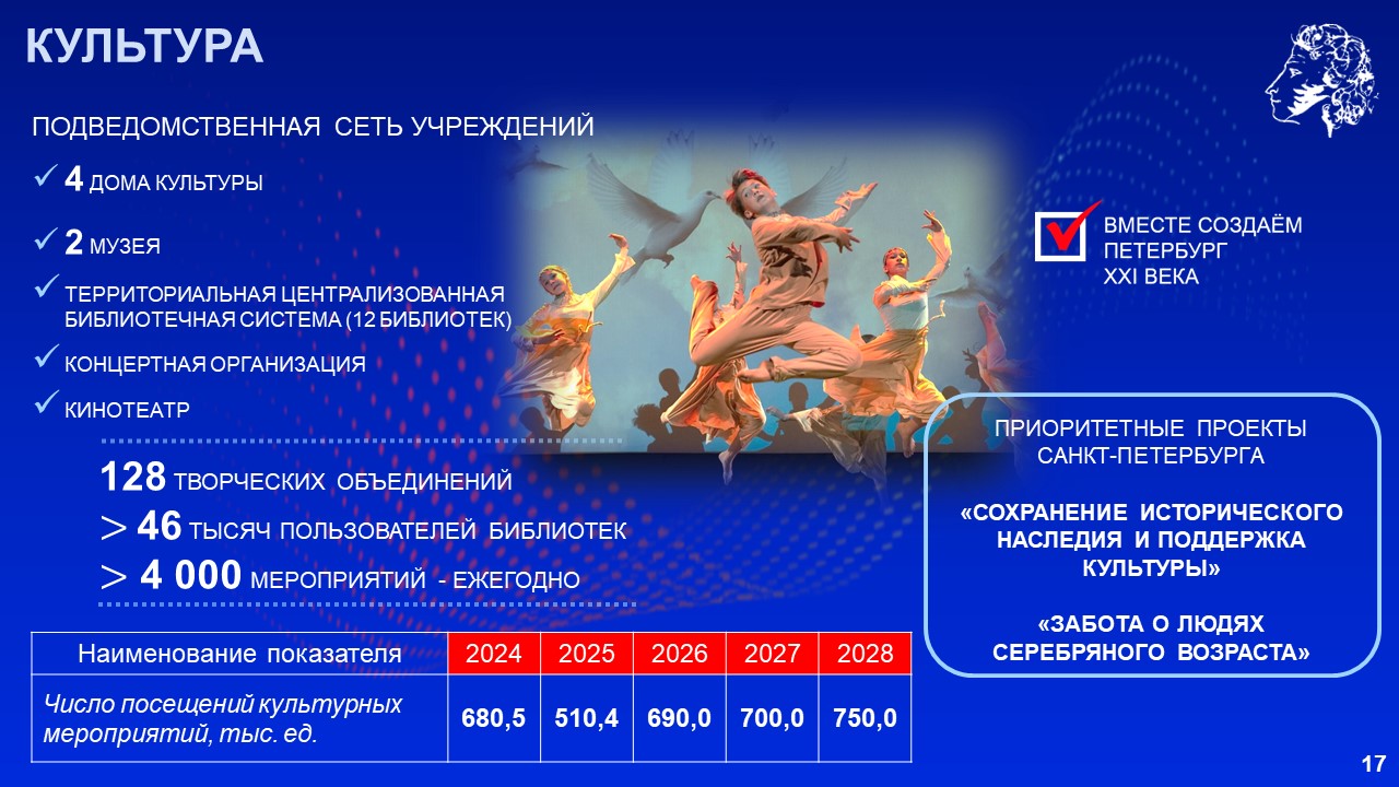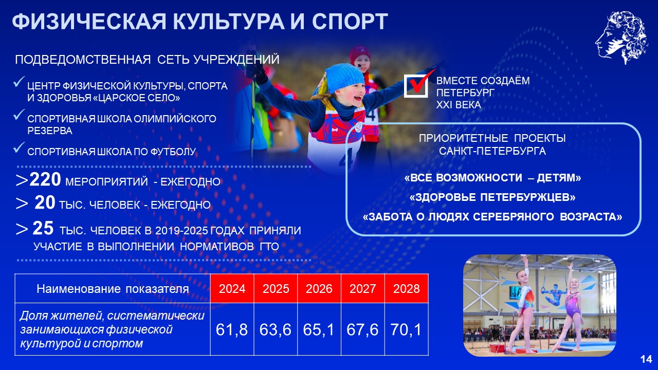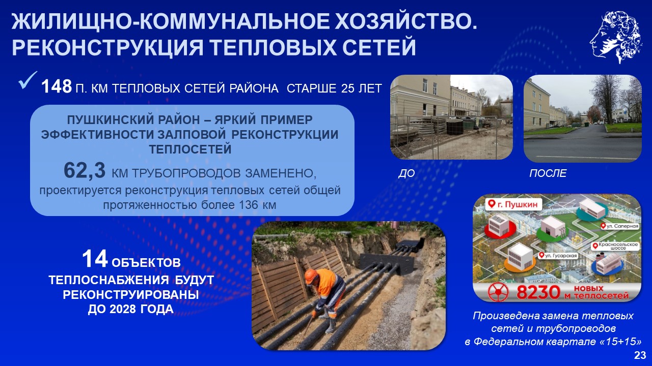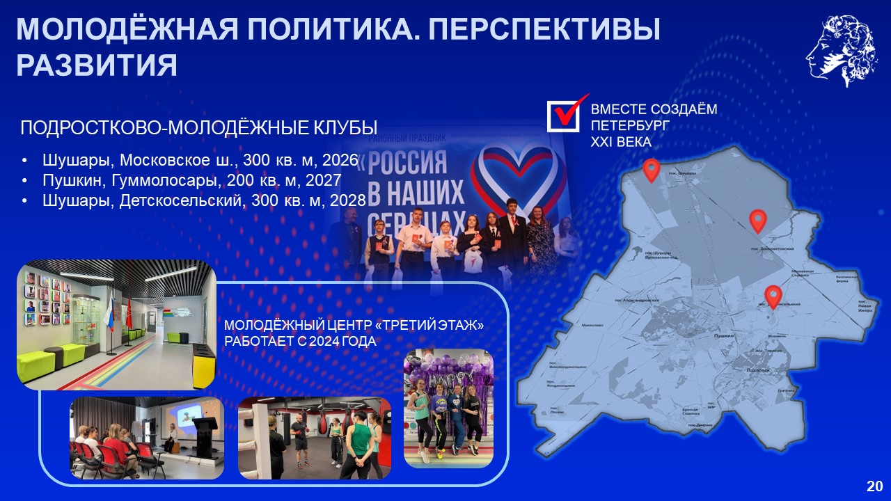 «Как и в других районах Петербурга, мы предприняли максимум усилий, чтобы достроить брошенные объекты и построить новые. Переломили ситуацию, с 2018 года ввели в Пушкинском районе 61 социальный объект, в том числе 21 детский сад, 13 школ, 12 медицинских учреждений, 5 спортивных объектов. Сейчас работаем на опережение», – сказал Александр Беглов.