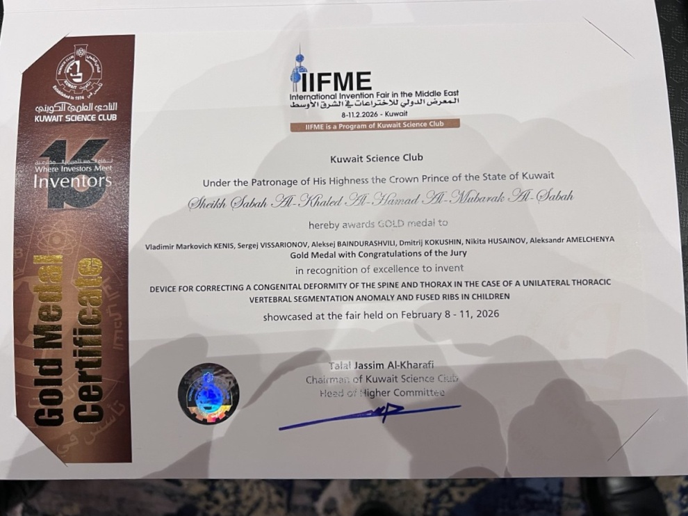 Учёные Национального медицинского исследовательского центра детской травматологии и ортопедии им. Г.И.Турнера Минздрава России с триумфом представили Россию и Петербург на 16-й Международной выставке изобретений на Ближнем Востоке (16th International Invention Fair in the Middle East — IIFME 2026), которая проходила с 8 по 11 февраля 2026 года в Кувейте.