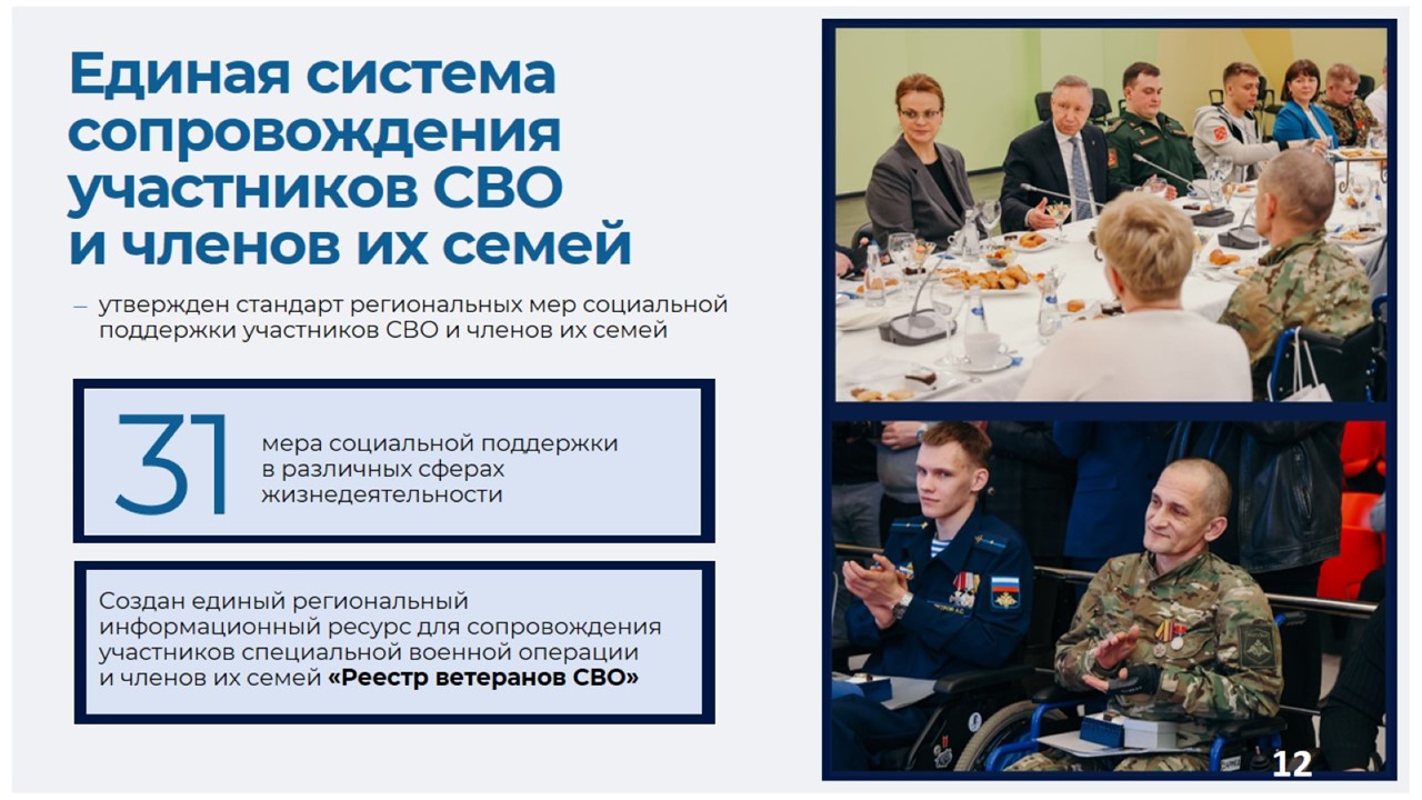 «Город продолжает расширять поддержку участников СВО и членов их семей. У нас создана одна из лучших систем социального сопровождения наших героев. Это целая сеть медицинских и реабилитационных учреждений», – подчеркнул Александр Беглов.
