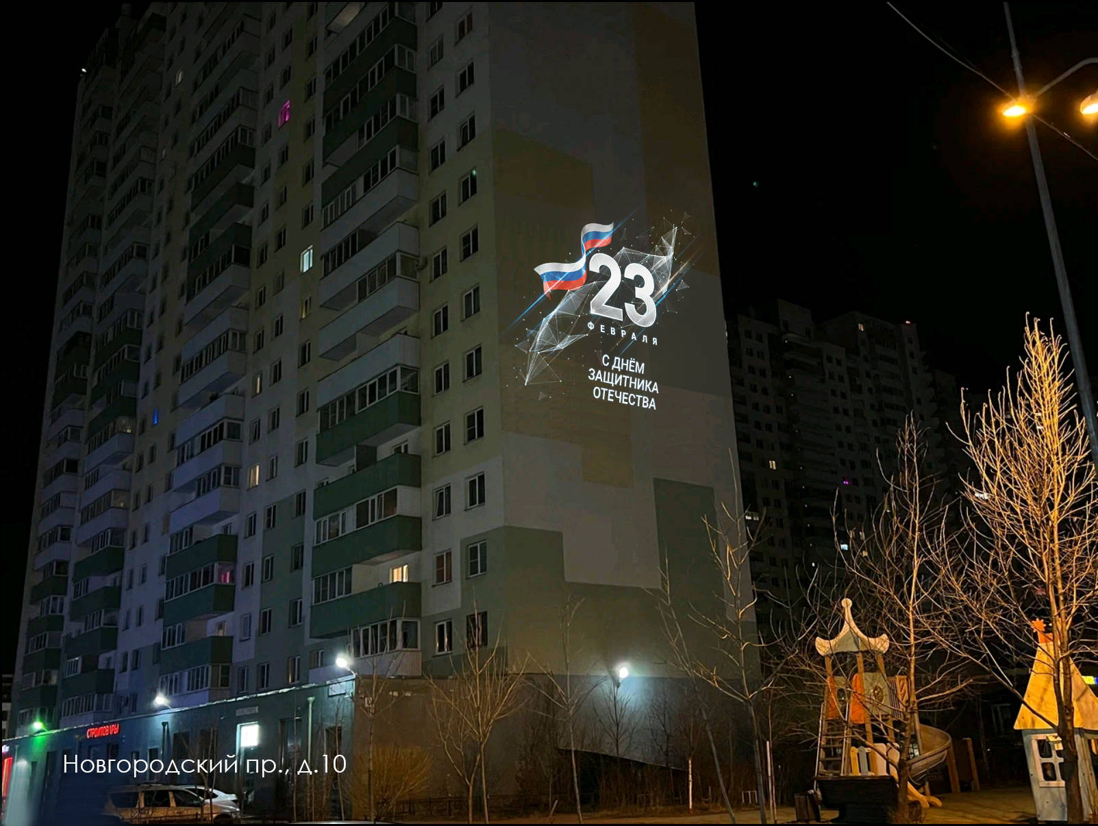 Световые инсталляции стали традицией и частью праздничного оформления города к памятным датам. К 23 февраля подготовлены проекции-открытки, выполненные в современном и динамичном стиле. Их дизайн призван подчеркнуть особую значимость праздника для нашей страны.