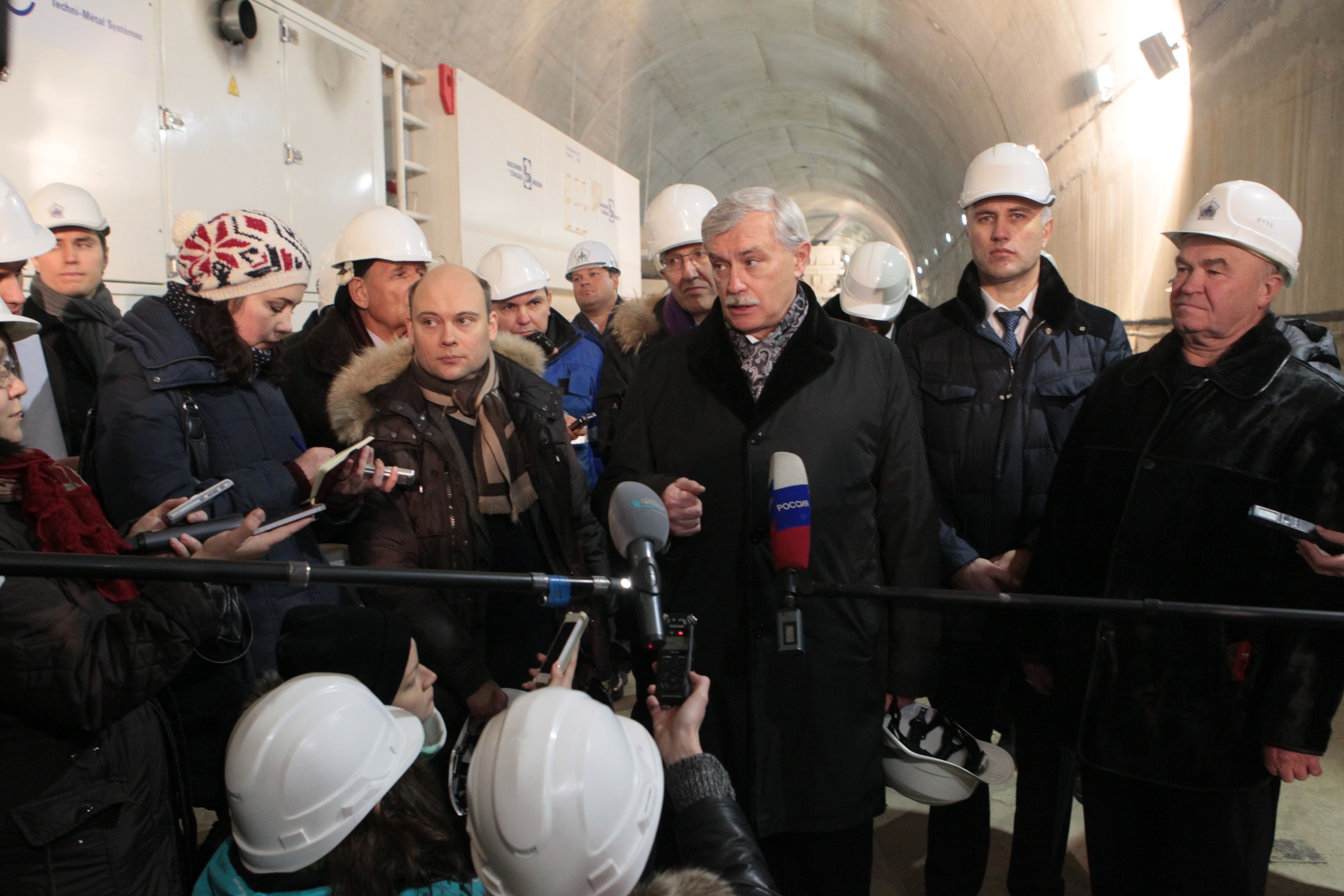Сегодня в поселке Шушары на площадке ОАО «Метрострой» был дан старт уникальному тоннелепроходческому комплексу, с помощью которого будет построен первый в России двухпутный тоннель метрополитена. В церемонии запуска комплекса приняли участие губернатор Георгий Полтавченко, генеральный директор ОАО «Метрострой» Вадим Александров, вице-губернаторы Санкт‑Петербурга Сергей Вязалов и Марат Оганесян, метростроевцы.