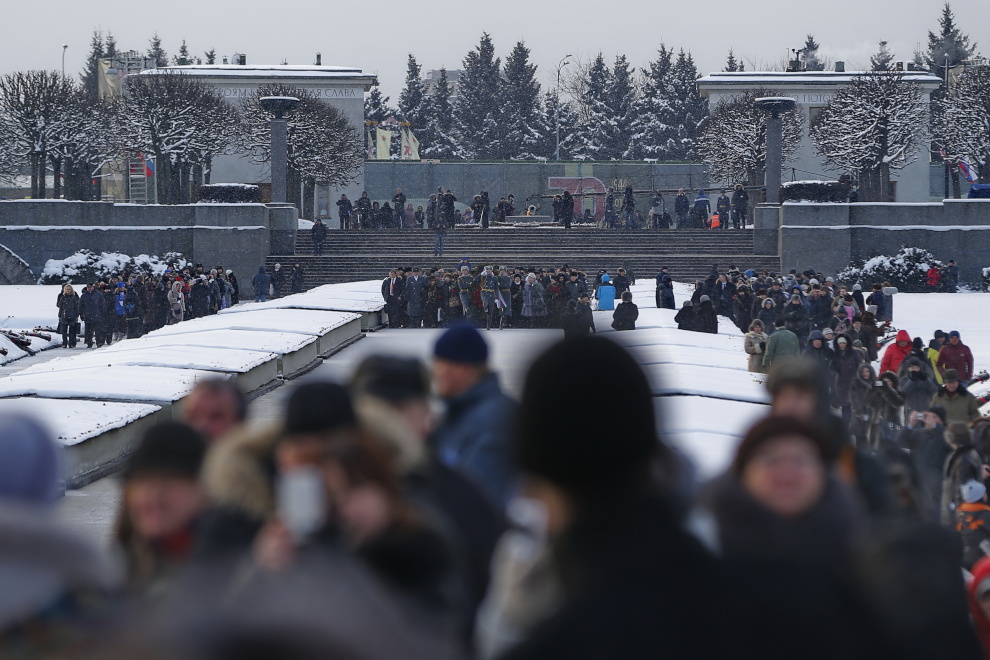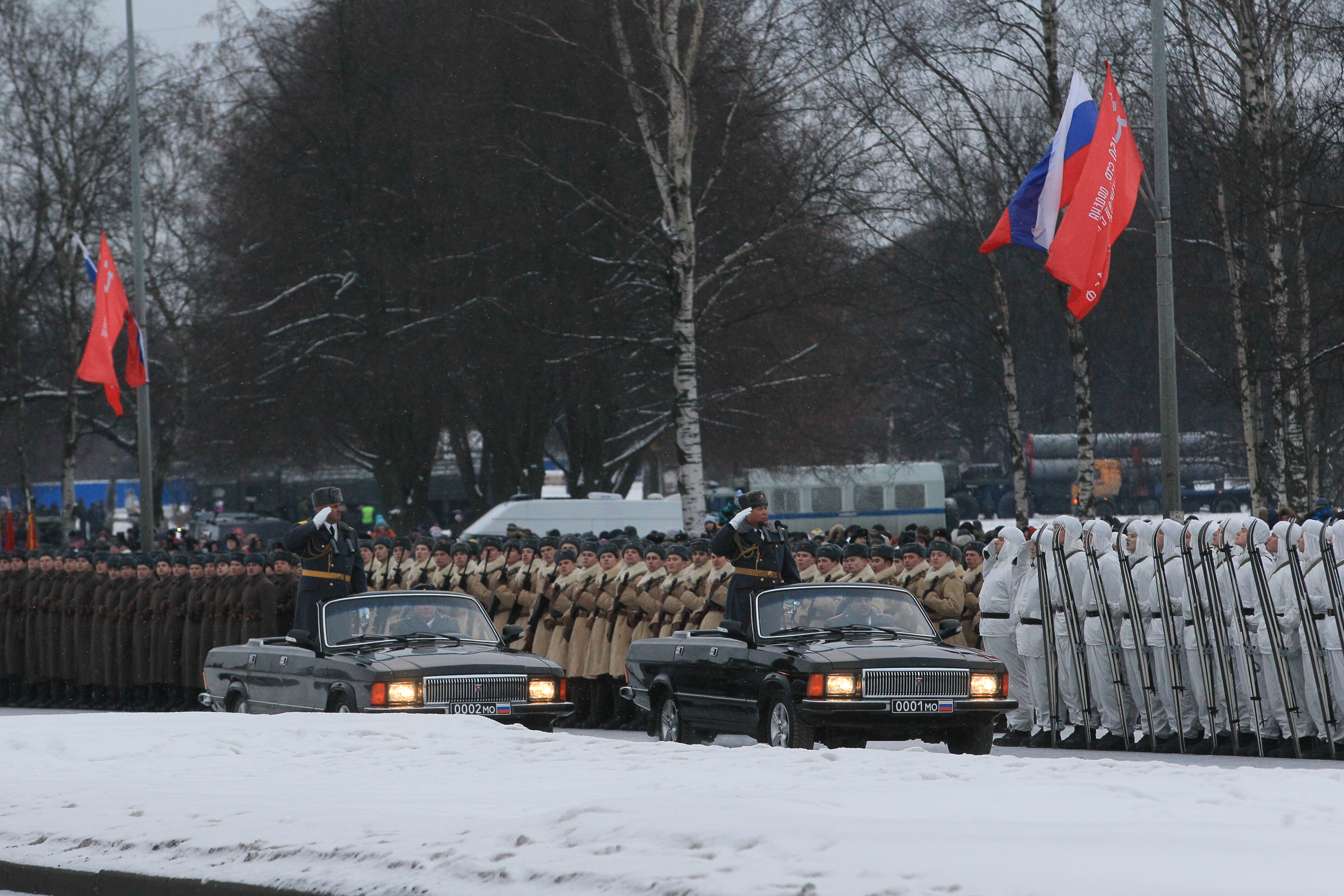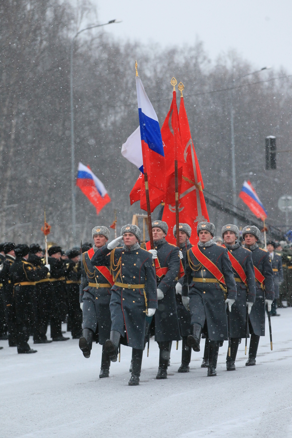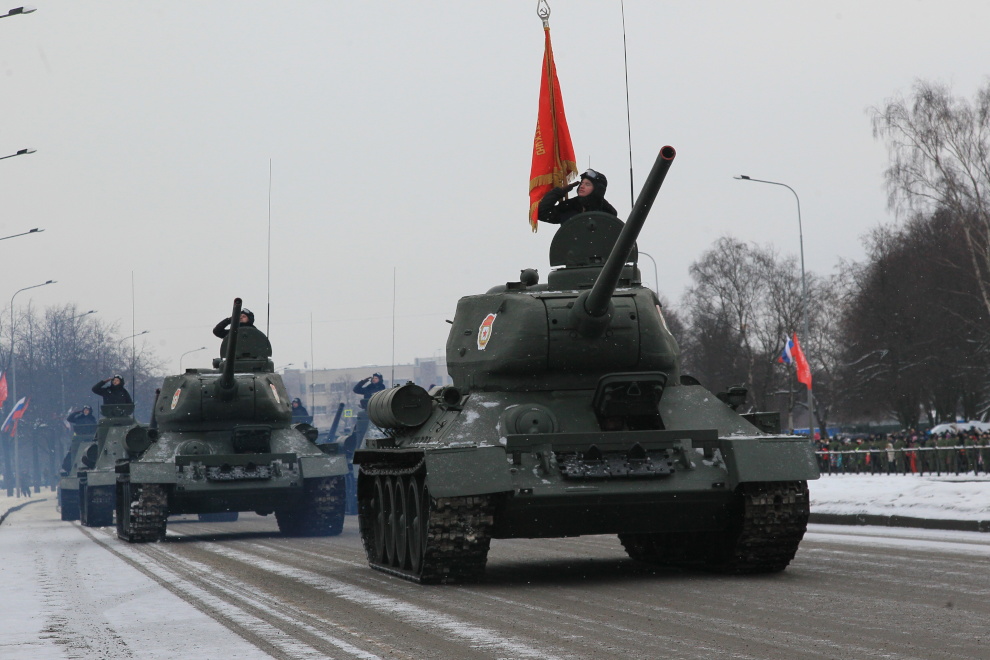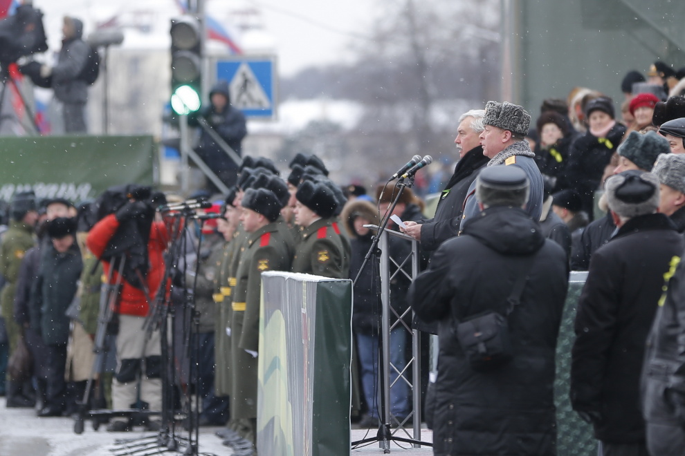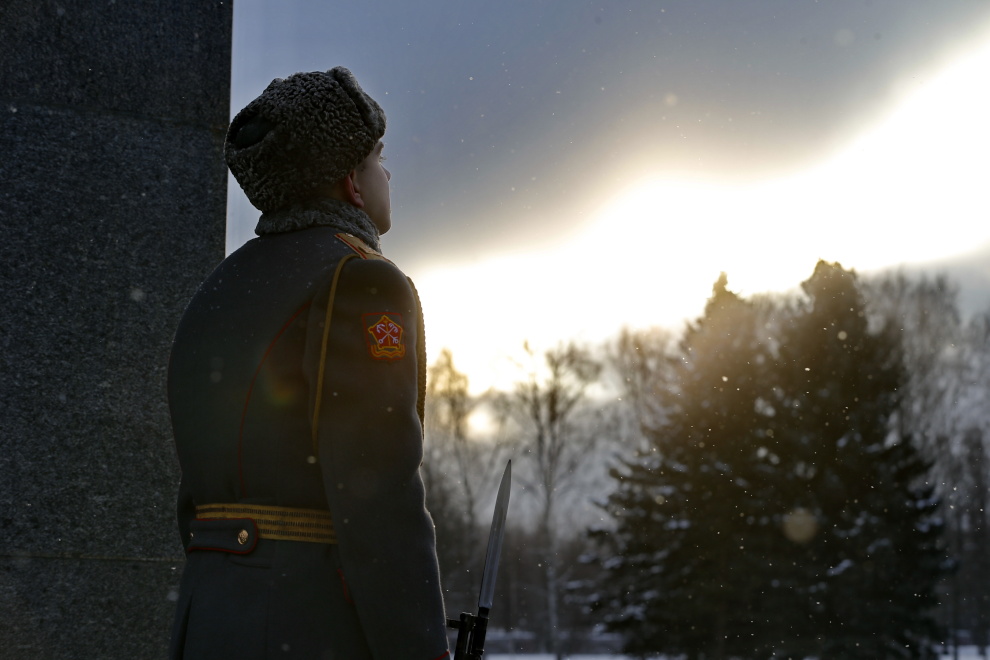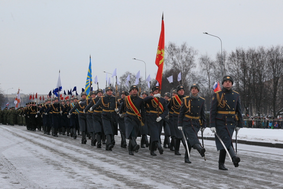 Сегодня впервые на проспекте Непокоренных, перед Пискаревским мемориальным кладбищем, состоялся парад войск Санкт‑Петербургского гарнизона, посвященный 70-летию полного освобождения Ленинграда от фашистской блокады.