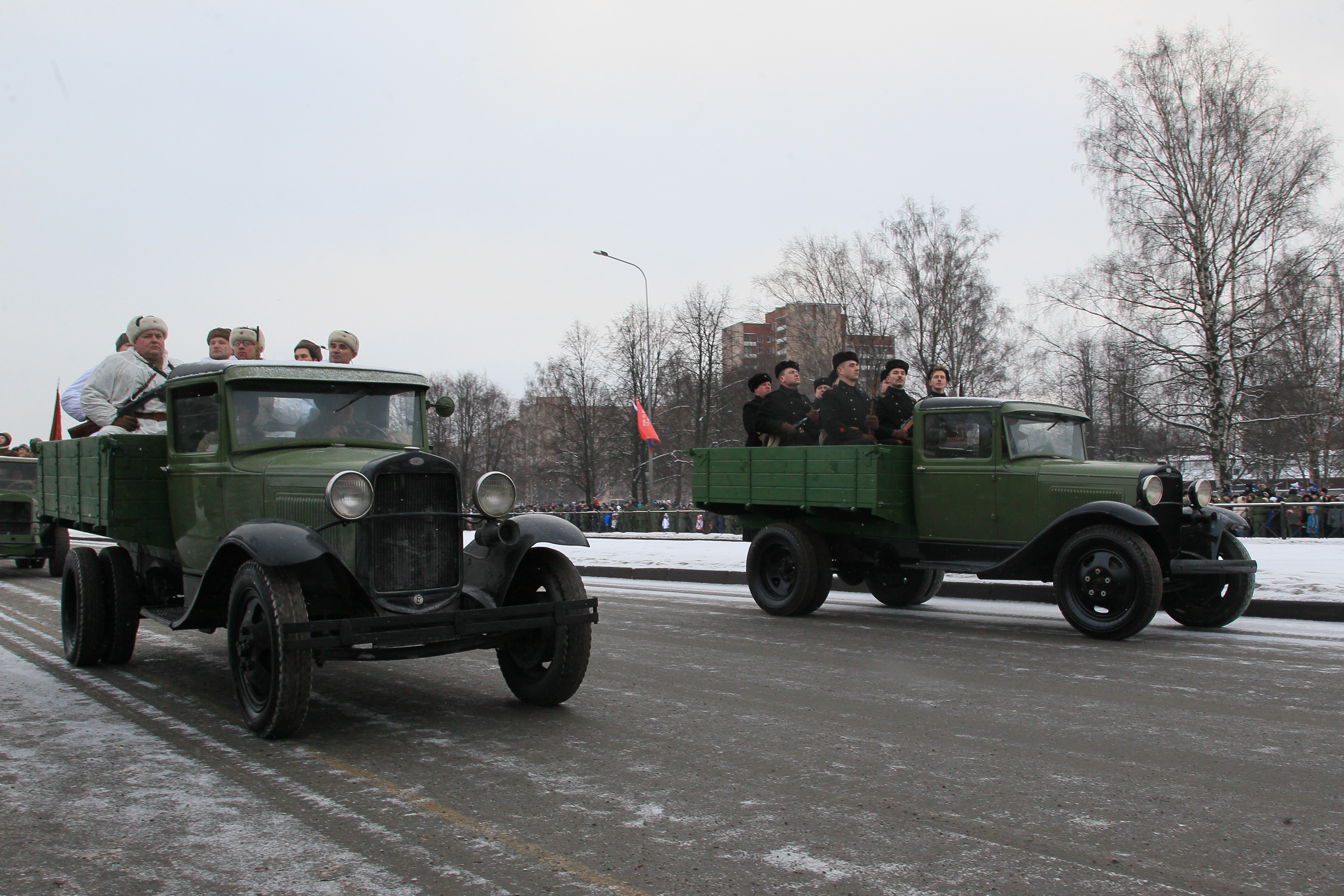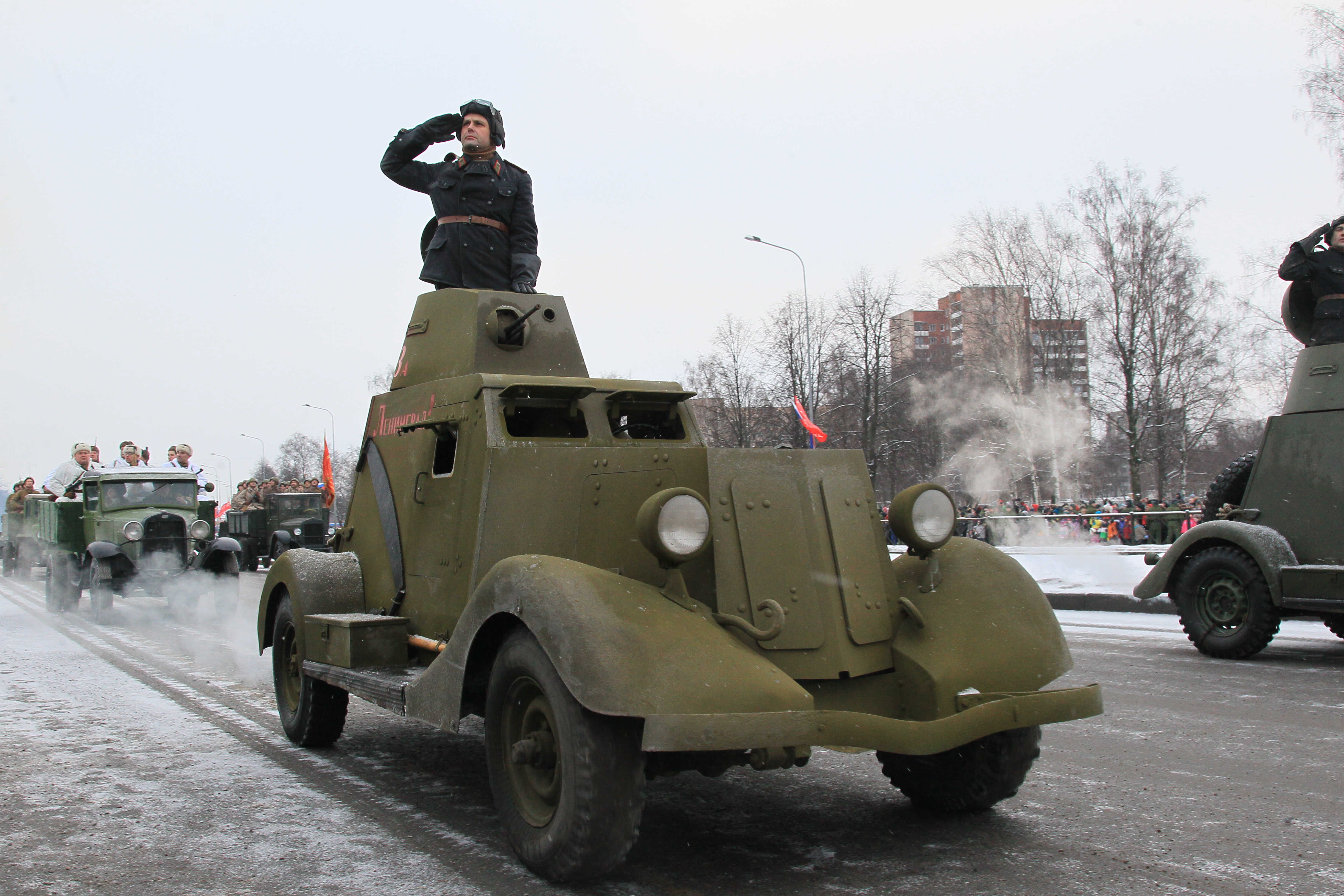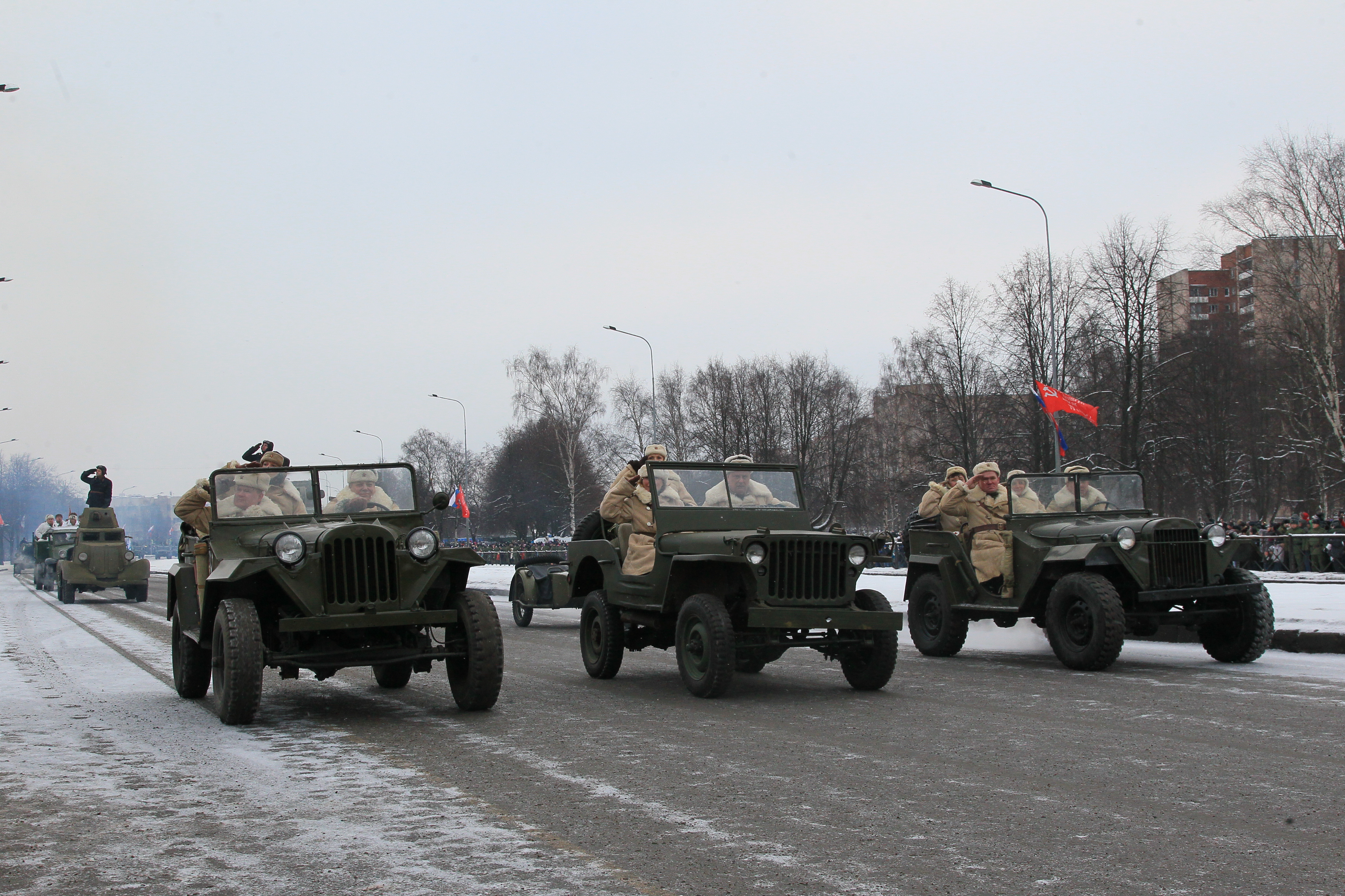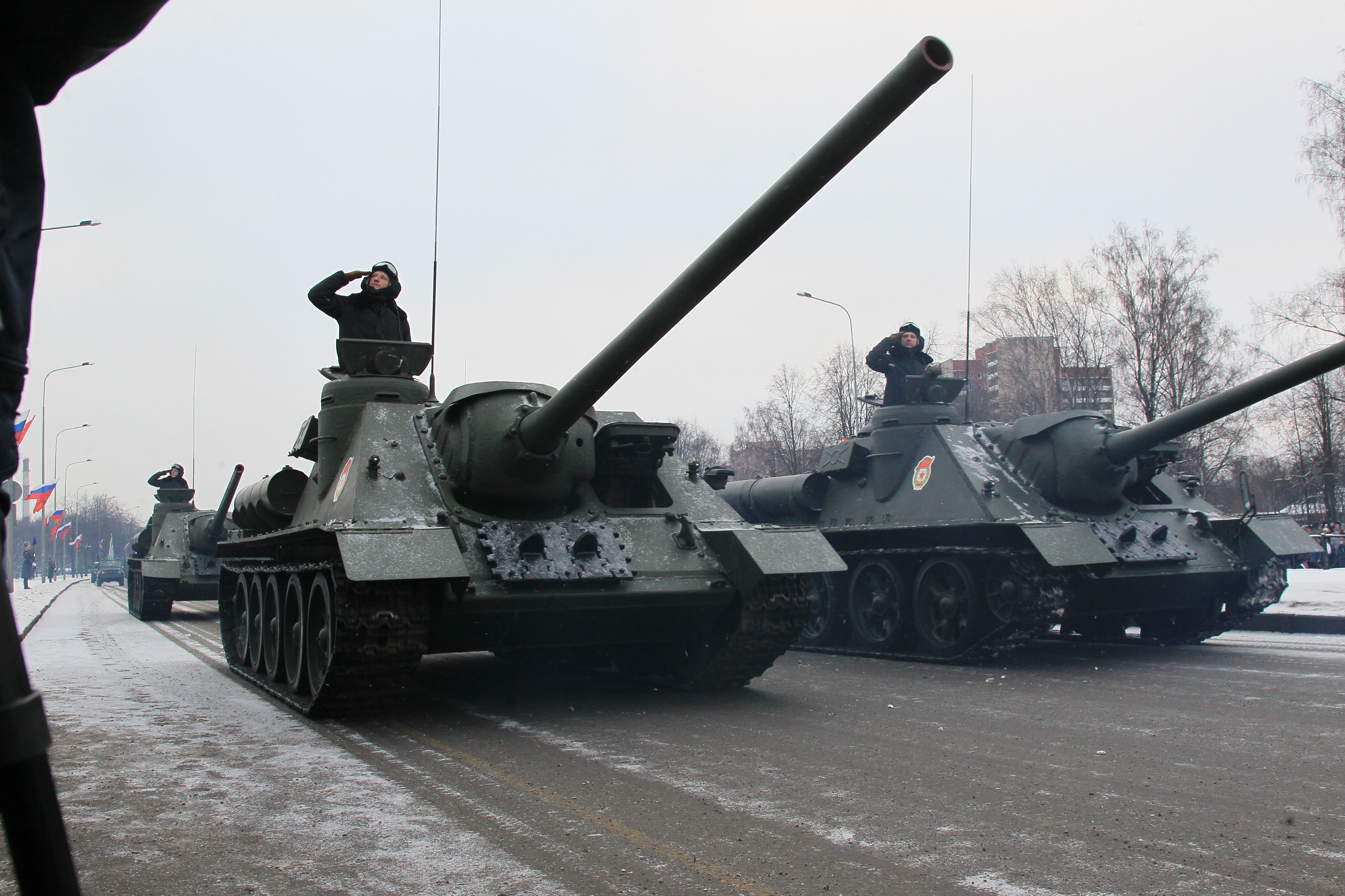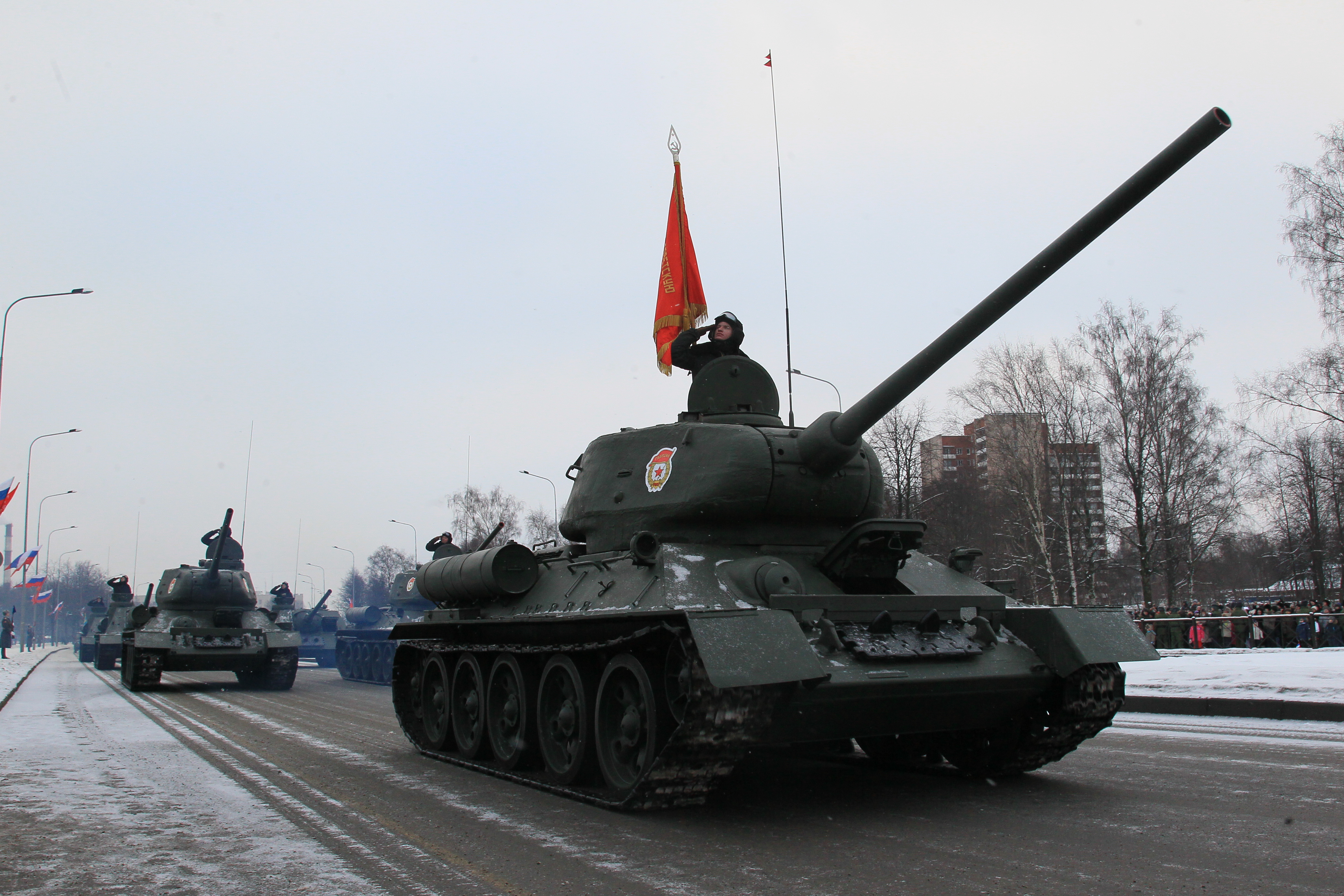 Сегодня впервые на проспекте Непокоренных, перед Пискаревским мемориальным кладбищем, состоялся парад войск Санкт‑Петербургского гарнизона, посвященный 70-летию полного освобождения Ленинграда от фашистской блокады.