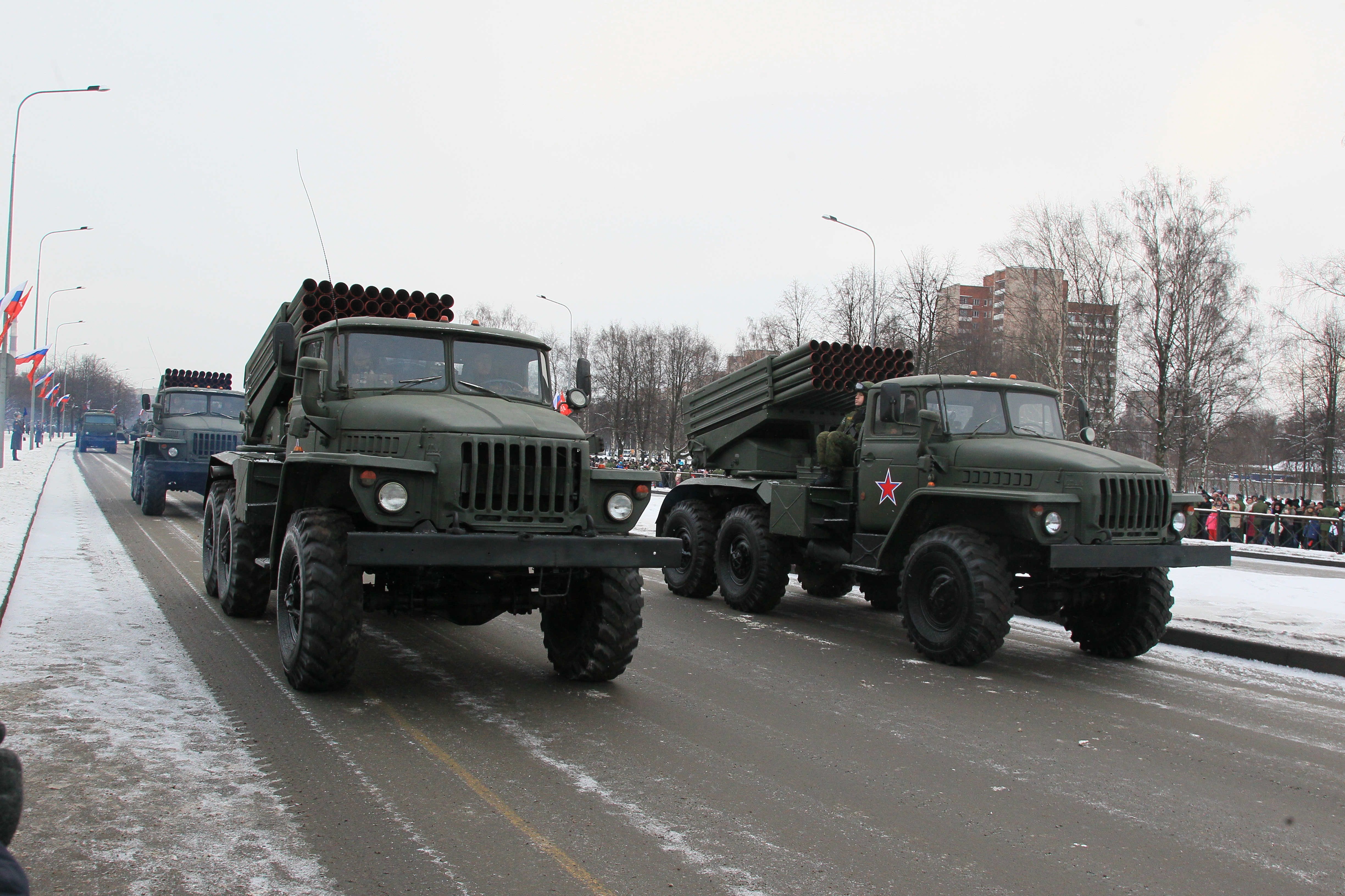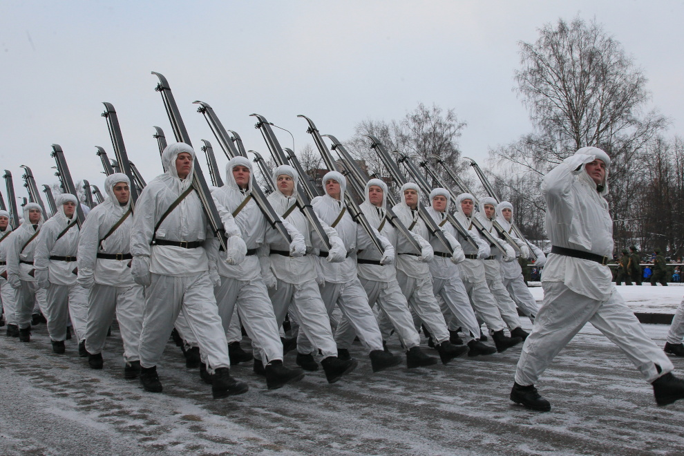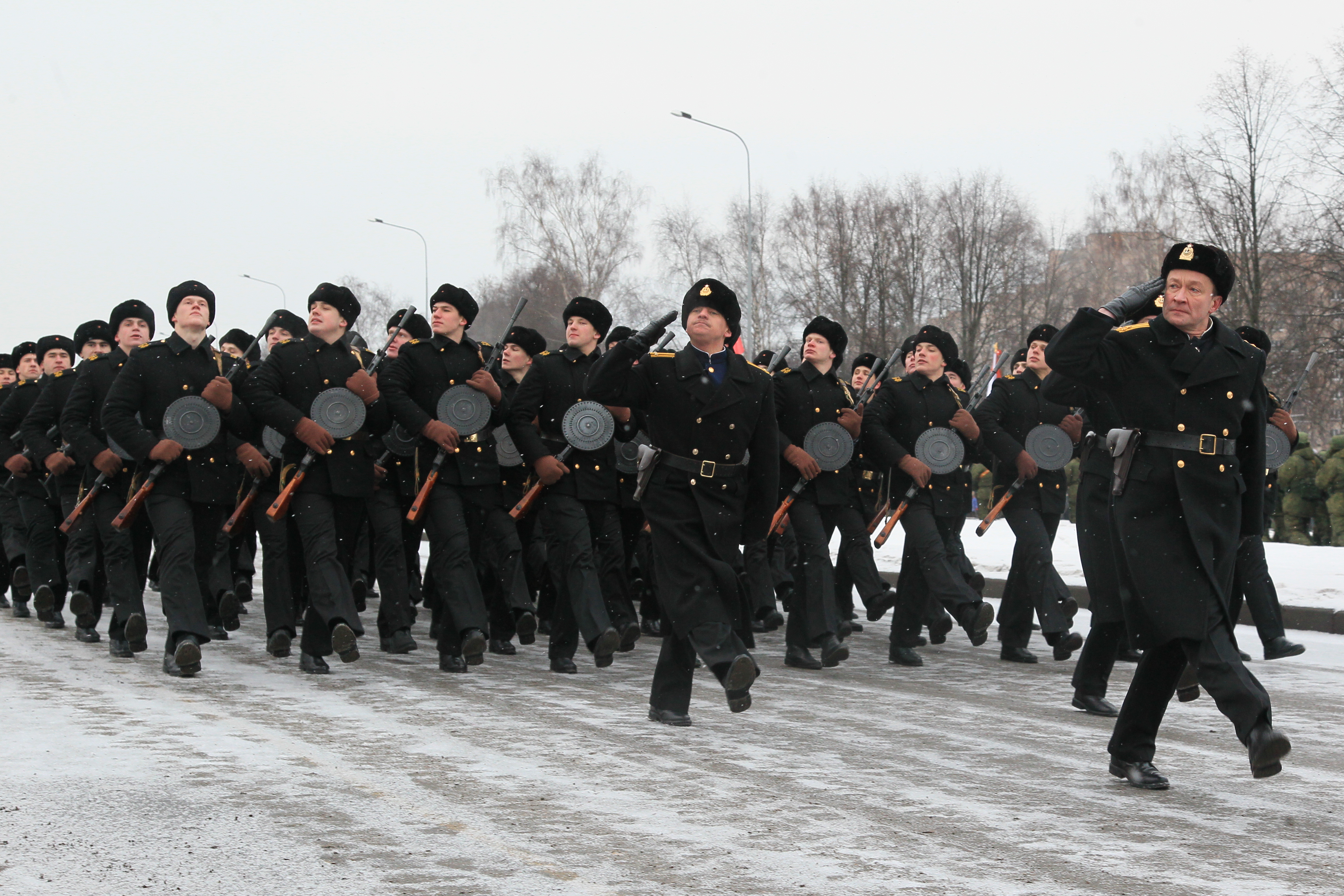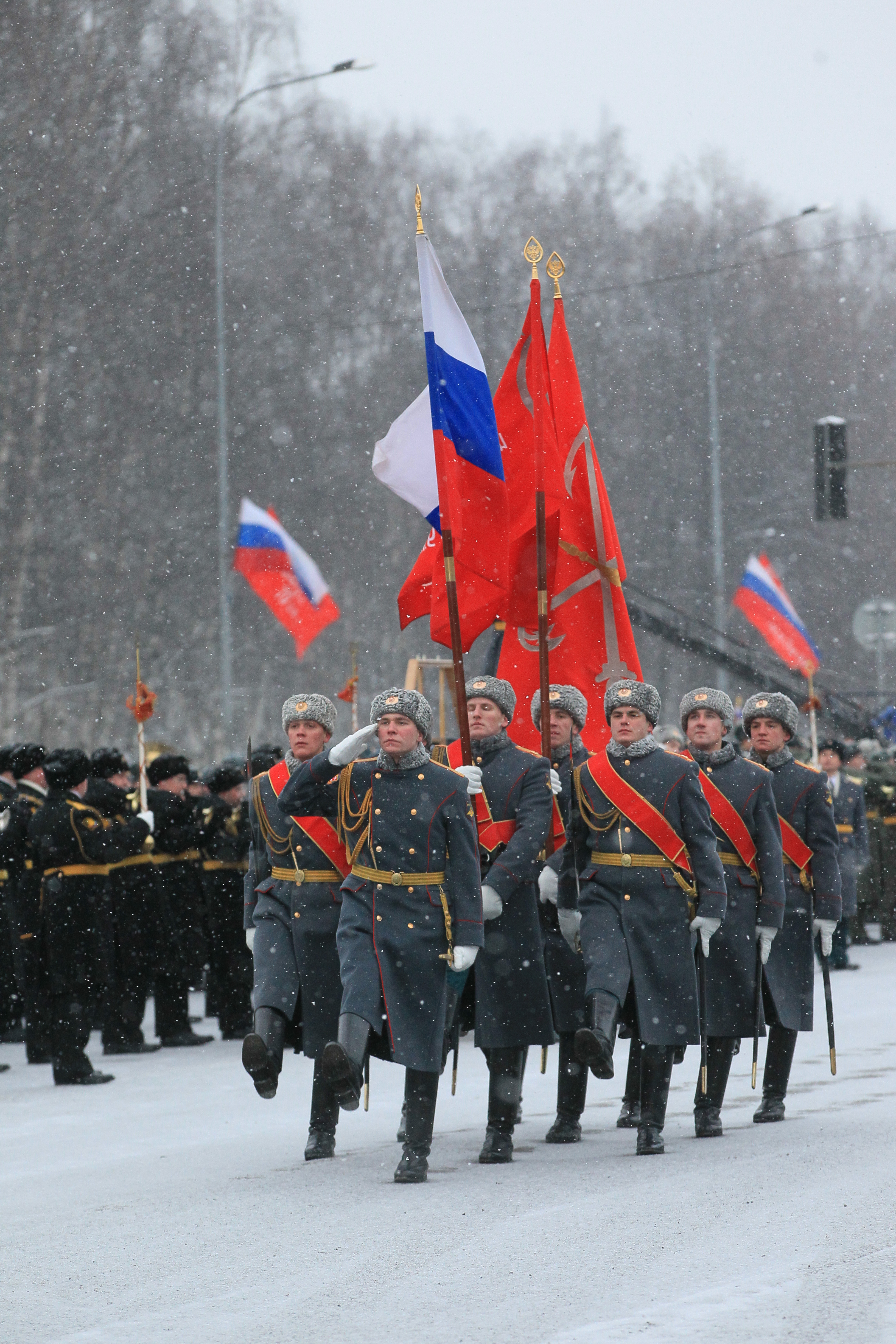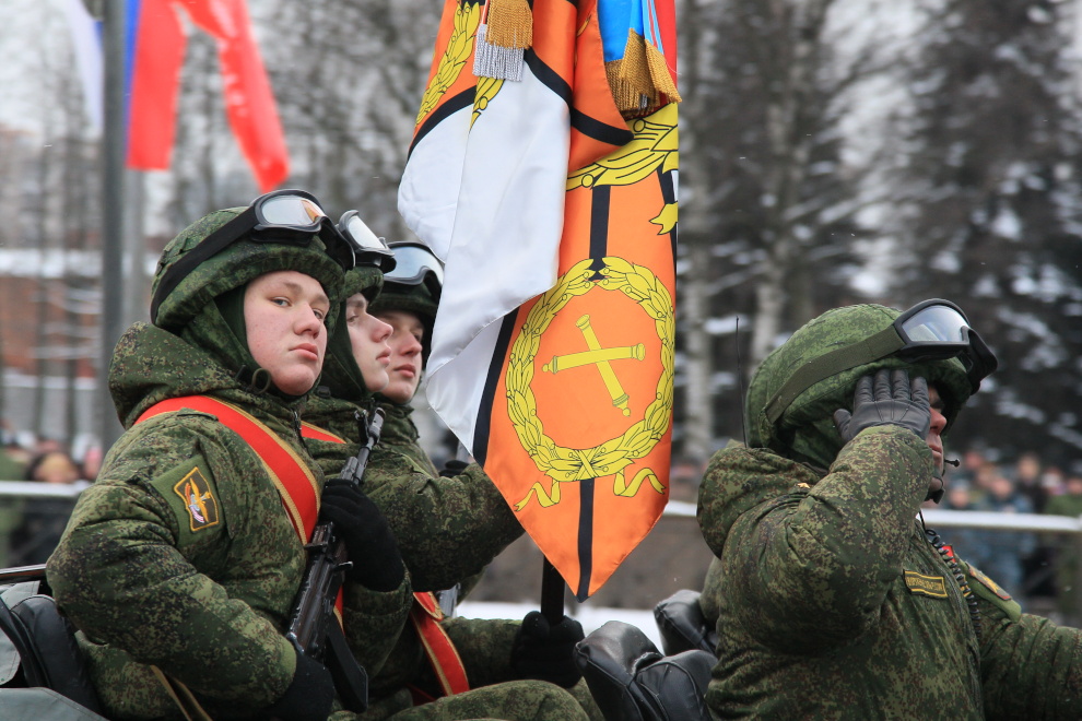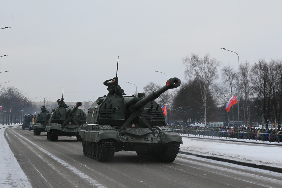 Парад войск Санкт‑Петербургского территориального гарнизона Западного военного округа на проспекте Непокоренных