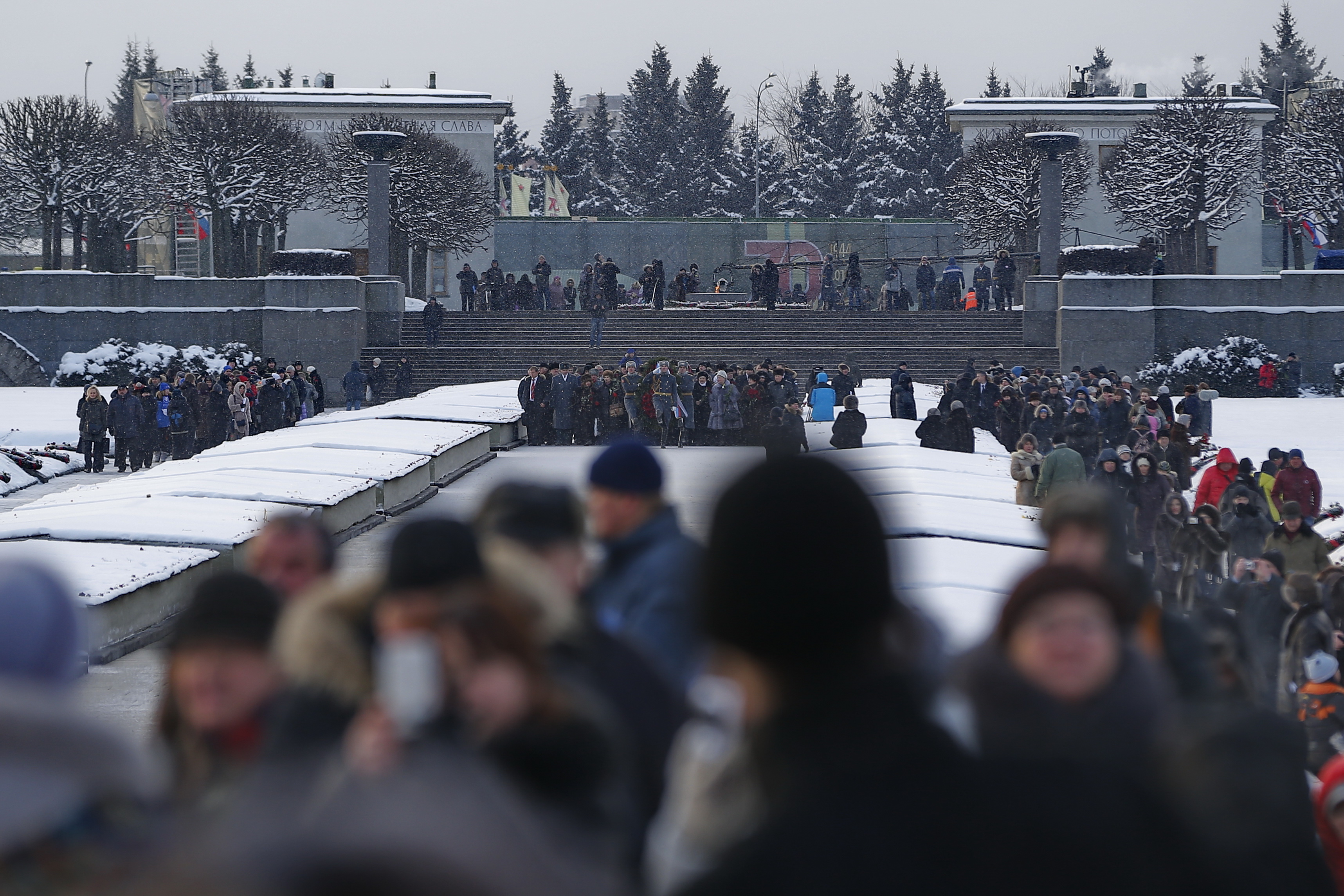 В торжественном мероприятии приняли участие губернатор Санкт‑Петербурга Георгий Полтавченко, председатель Совета Федерации Валентина Матвиенко, полномочный представитель Президента России в Северо-Западном федеральном округе Владимир Булавин, председатель Законодательного Собрания Санкт‑Петербурга Вячеслав Макаров, представители общественных организаций ветеранов, блокадников.