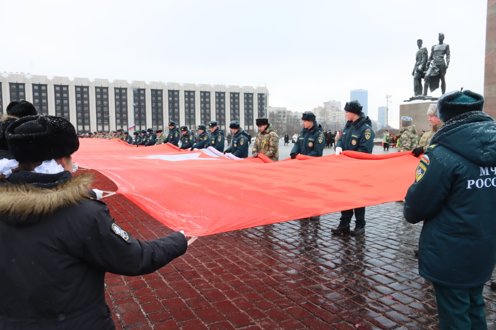 В Санкт‑Петербурге развернули копию Знамени Победы в честь 82-й годовщины снятия блокады