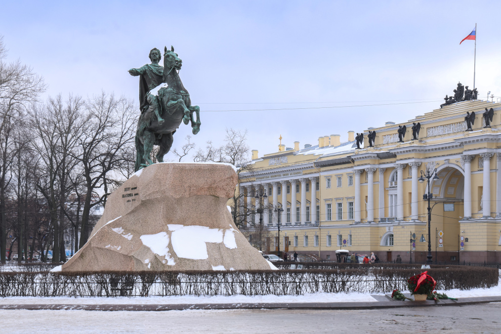 Александр Беглов возложил цветы к памятнику Петру Первому «Медный всадник»