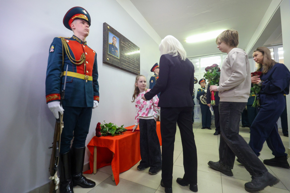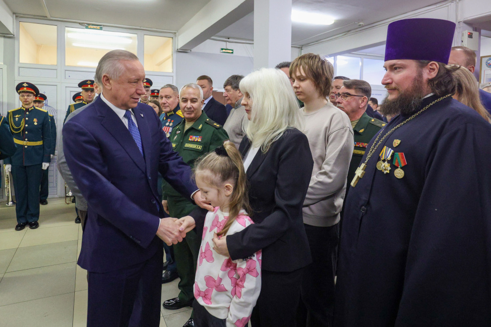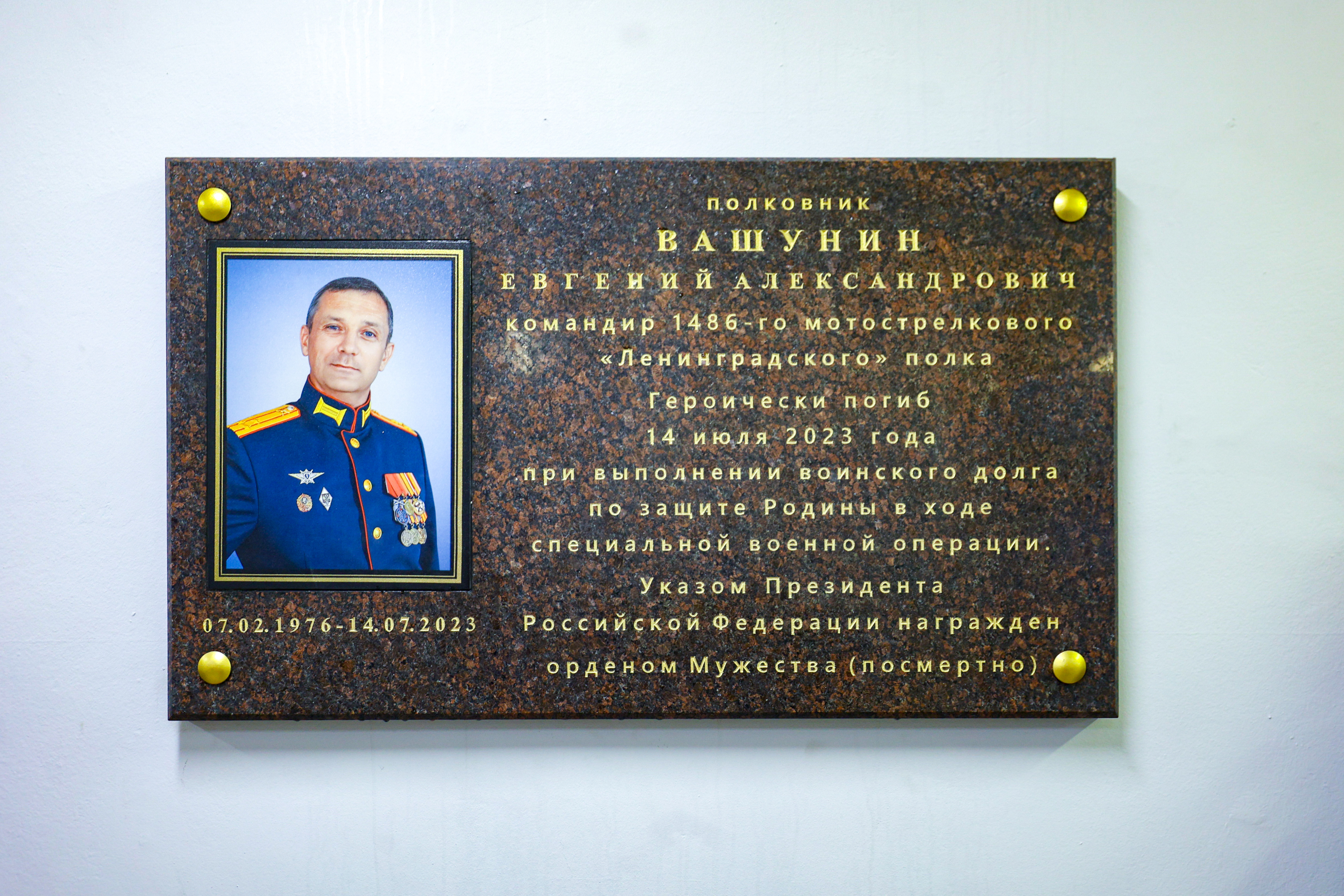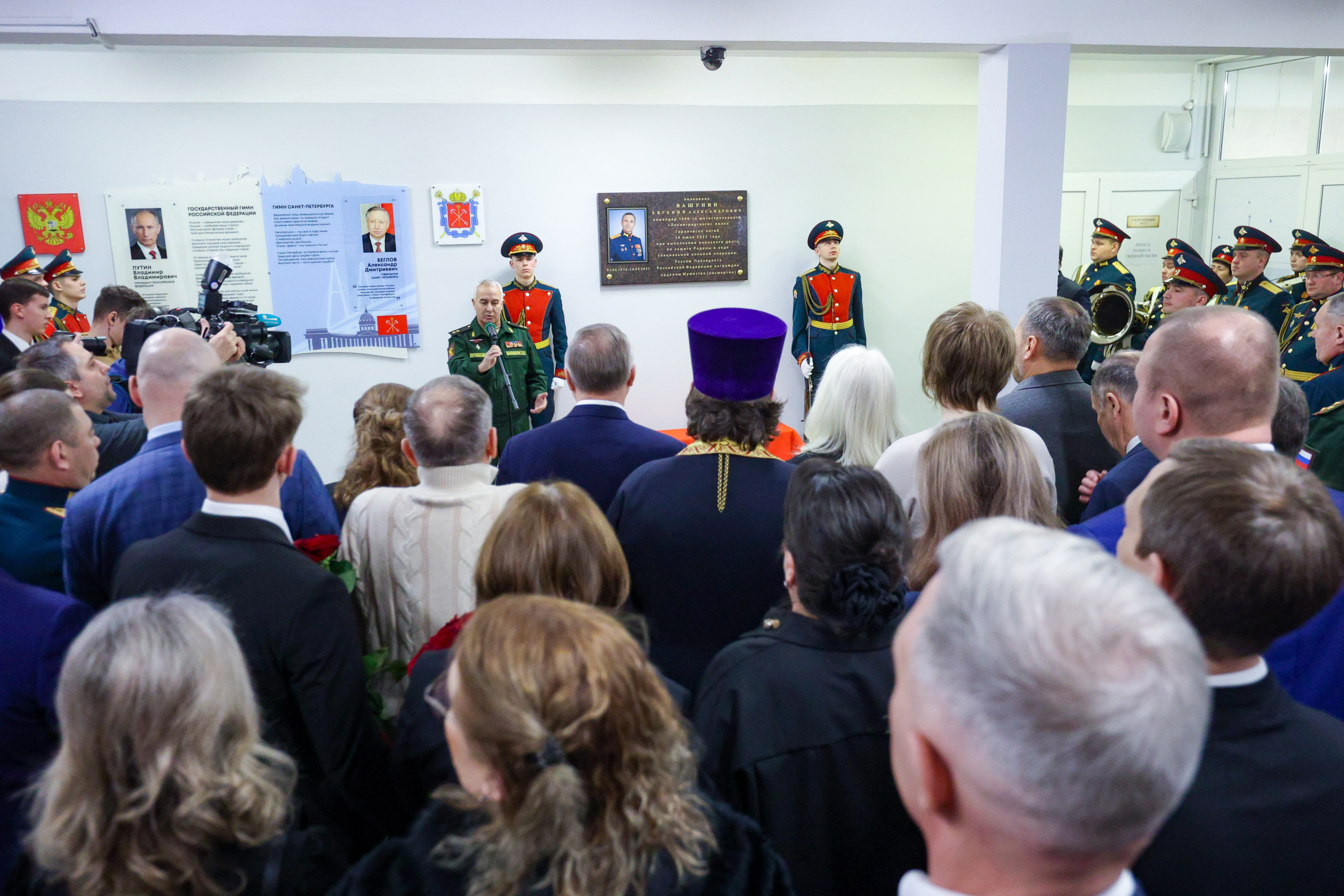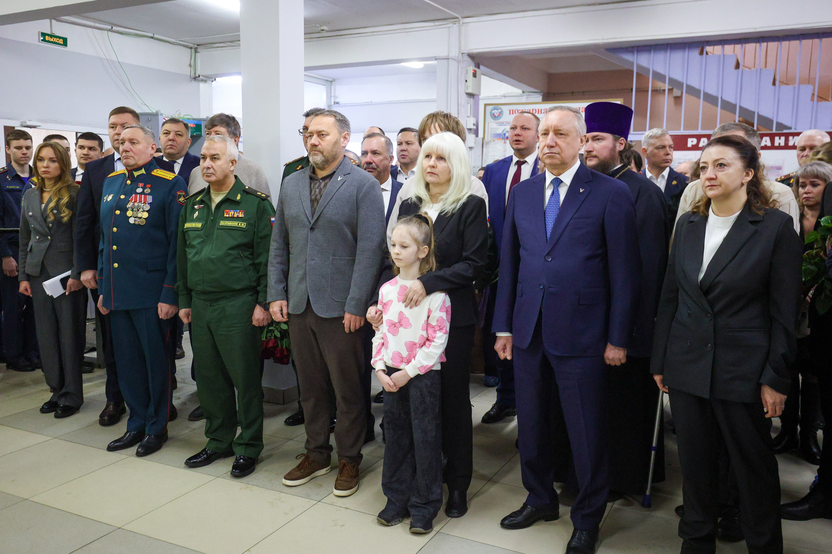Александр Беглов принял участие в торжественной церемонии открытия памятной доски первому командиру Ленинградского полка полковнику Евгению Александровичу Вашунину в школе № 16