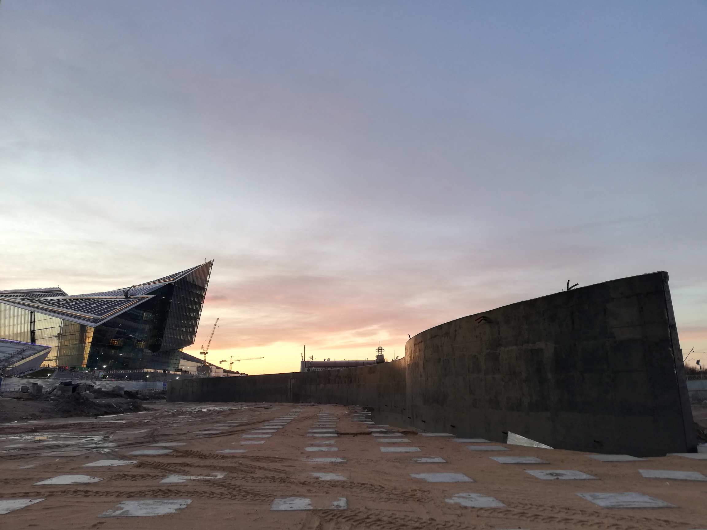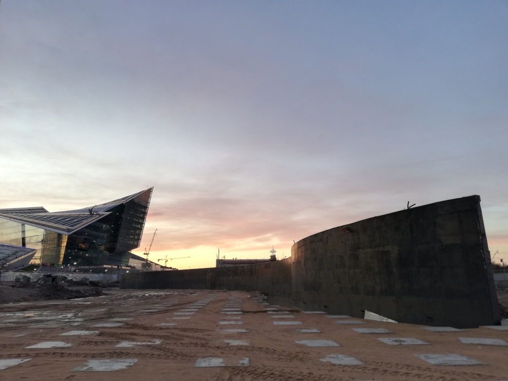 Завершились работы по устройству монолитной подпорной стенки и монтажу монолитных оголовков для строительства подъездных дорог к «Лахта-центру»