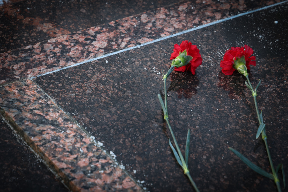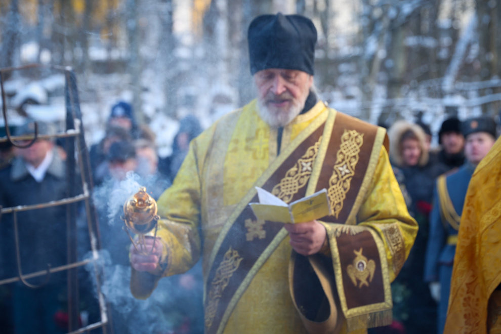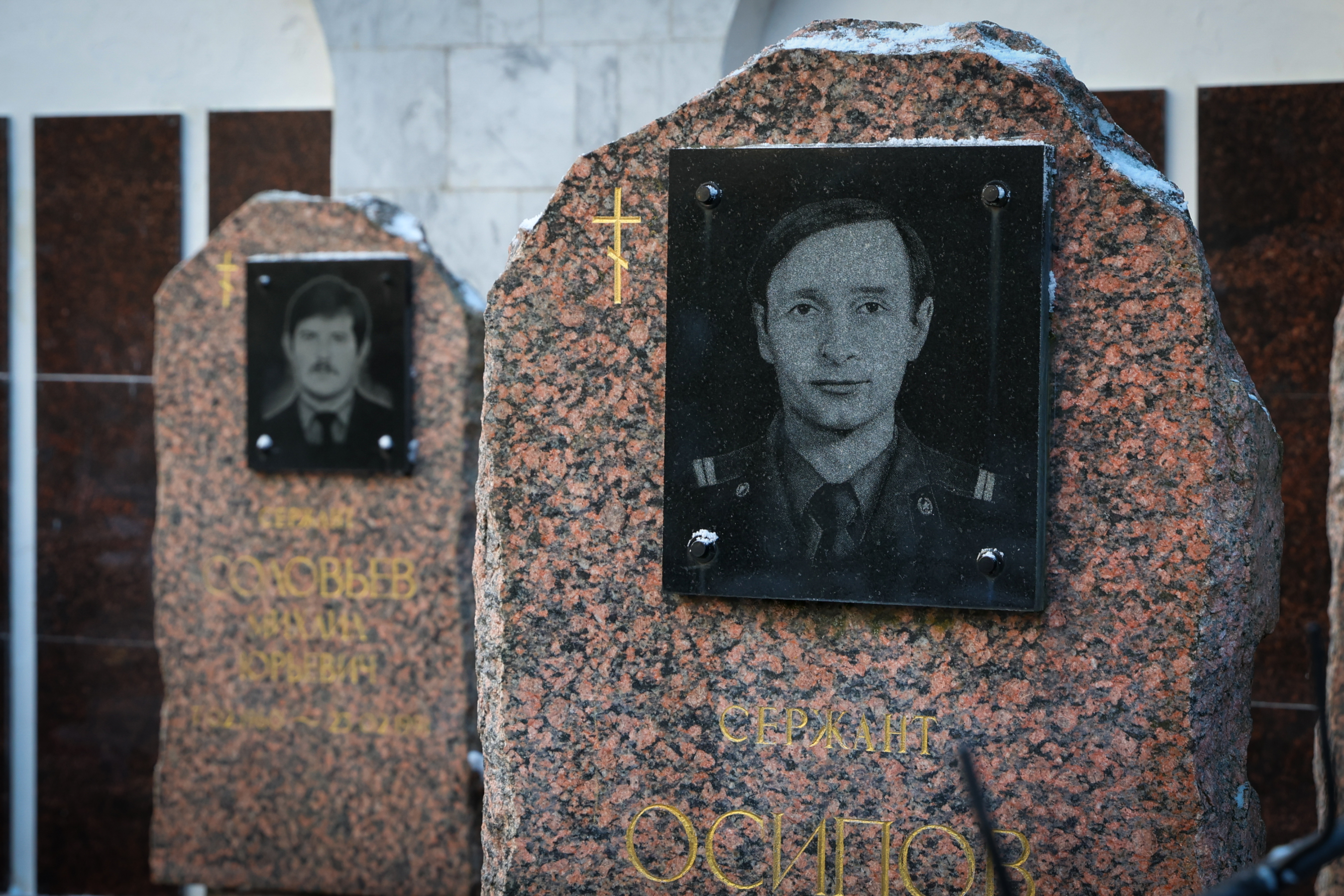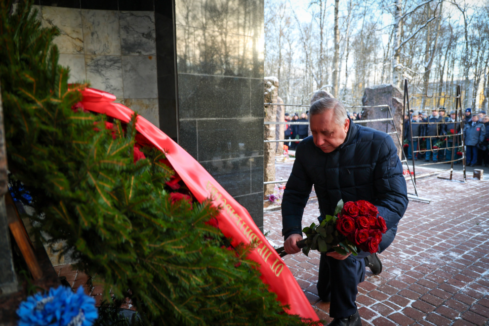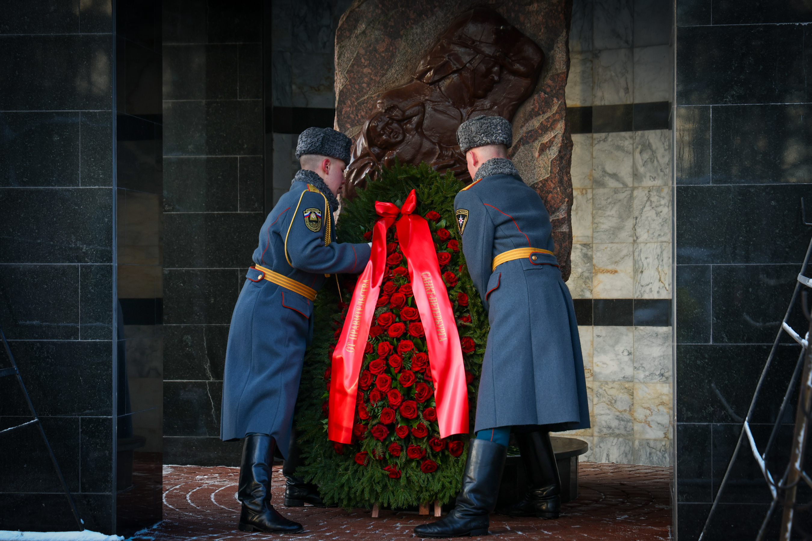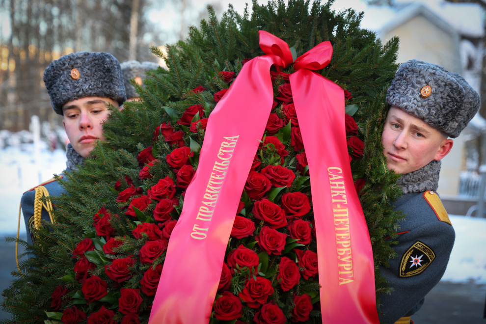 Торжественно-траурная церемония на Серафимовском кладбище в 35-ю годовщину со дня гибели девяти ленинградских пожарных при тушении огня в гостинице «Ленинград»